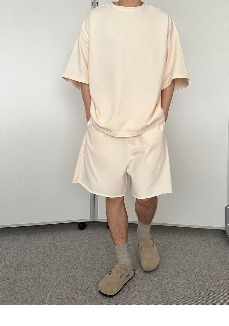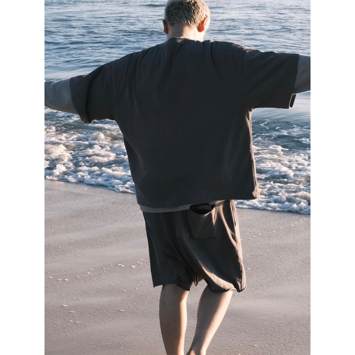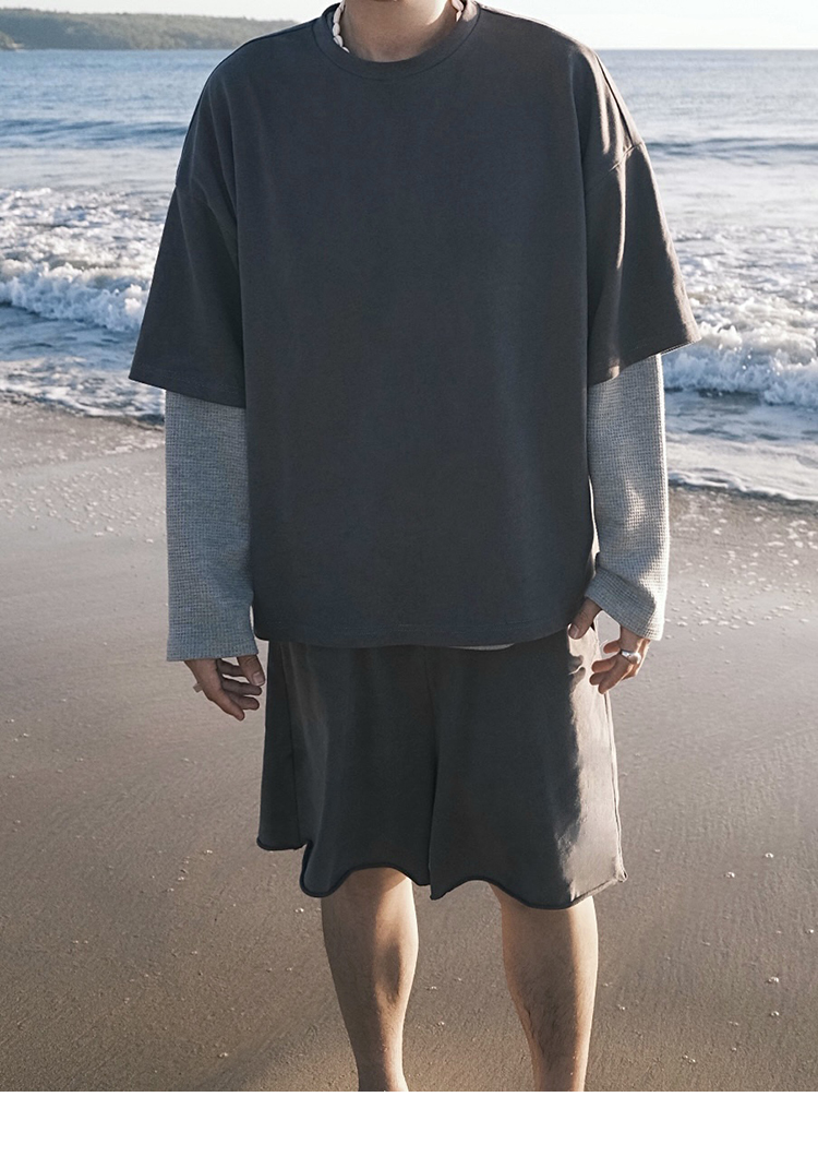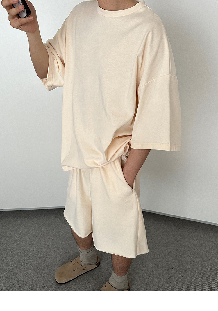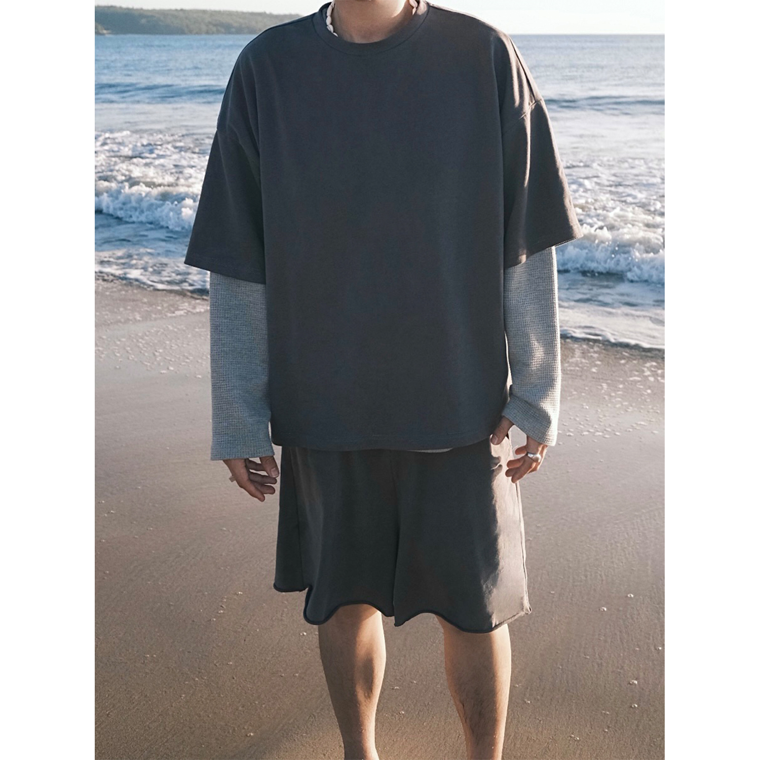 Babesochill-夏日舒適感寬鬆素灰色寬鬆短袖短褲休閒套裝
