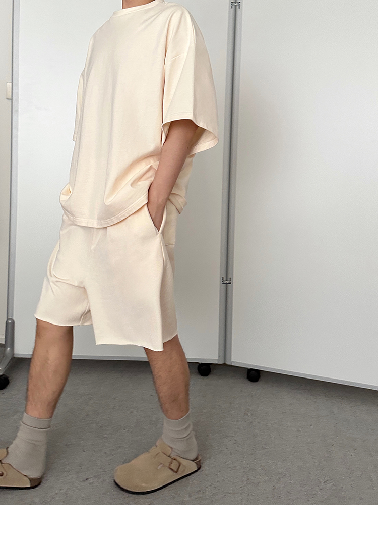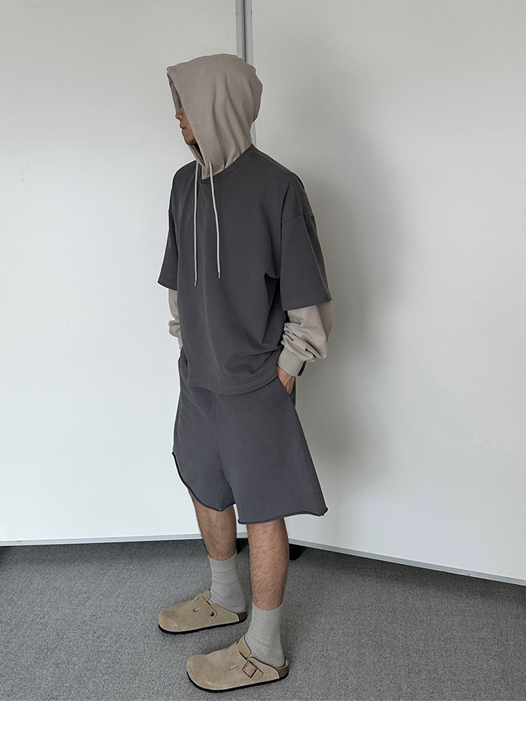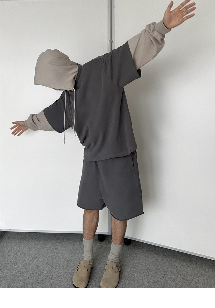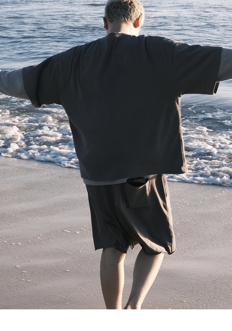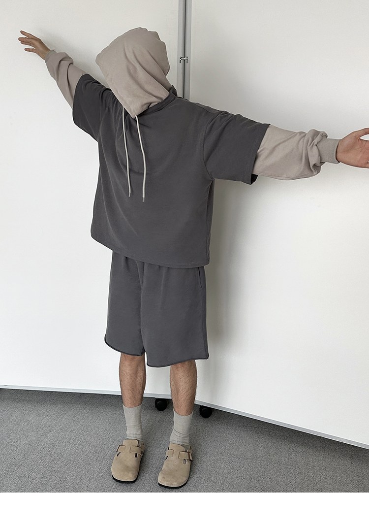 Babesochill-夏日舒適感寬鬆素灰色寬鬆短袖短褲休閒套裝
