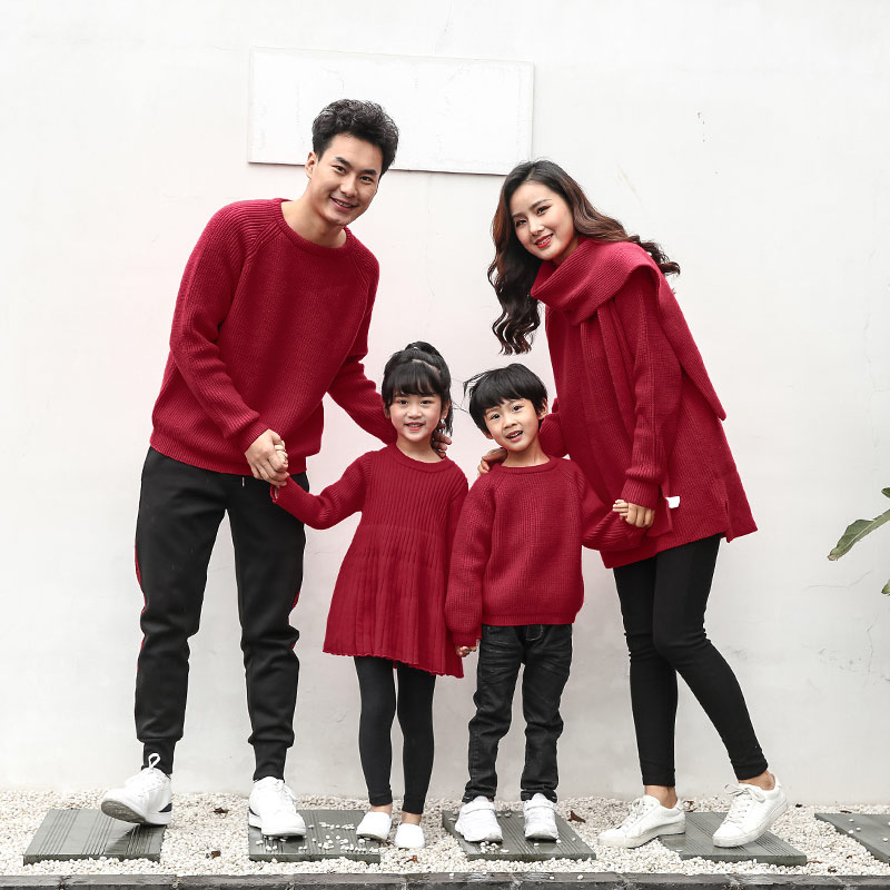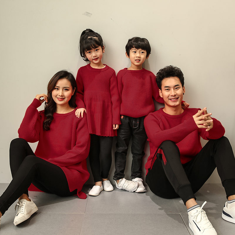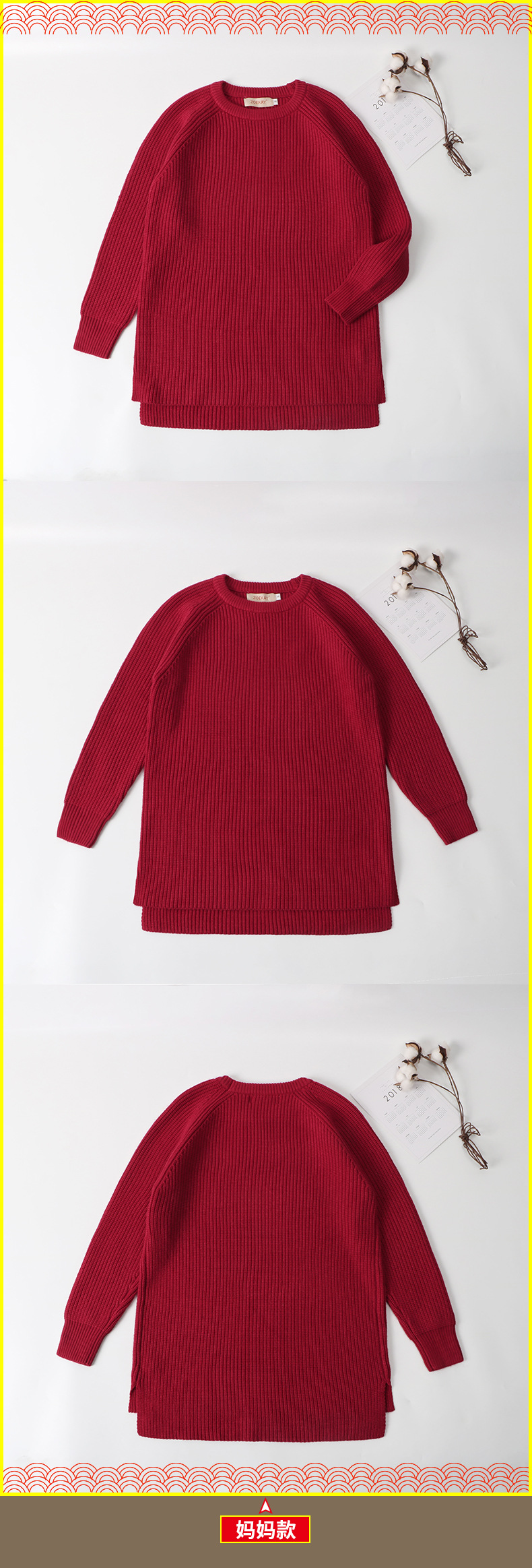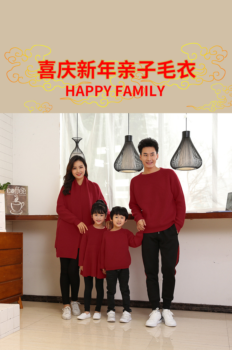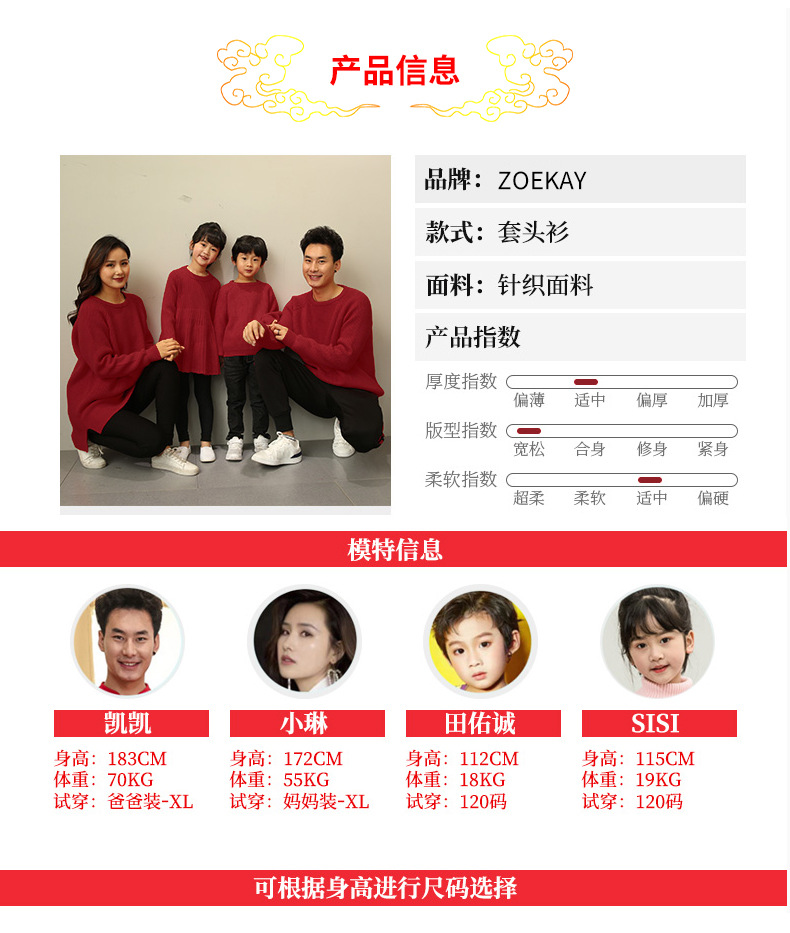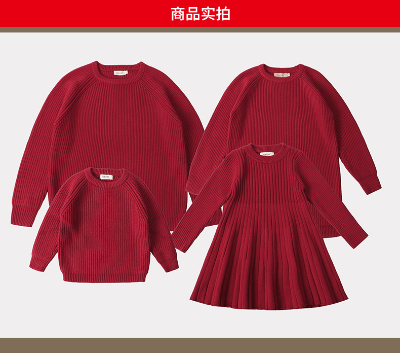 一家三四口亲子装全家装四喜亲子装母女母子父子装红色亲子毛衣