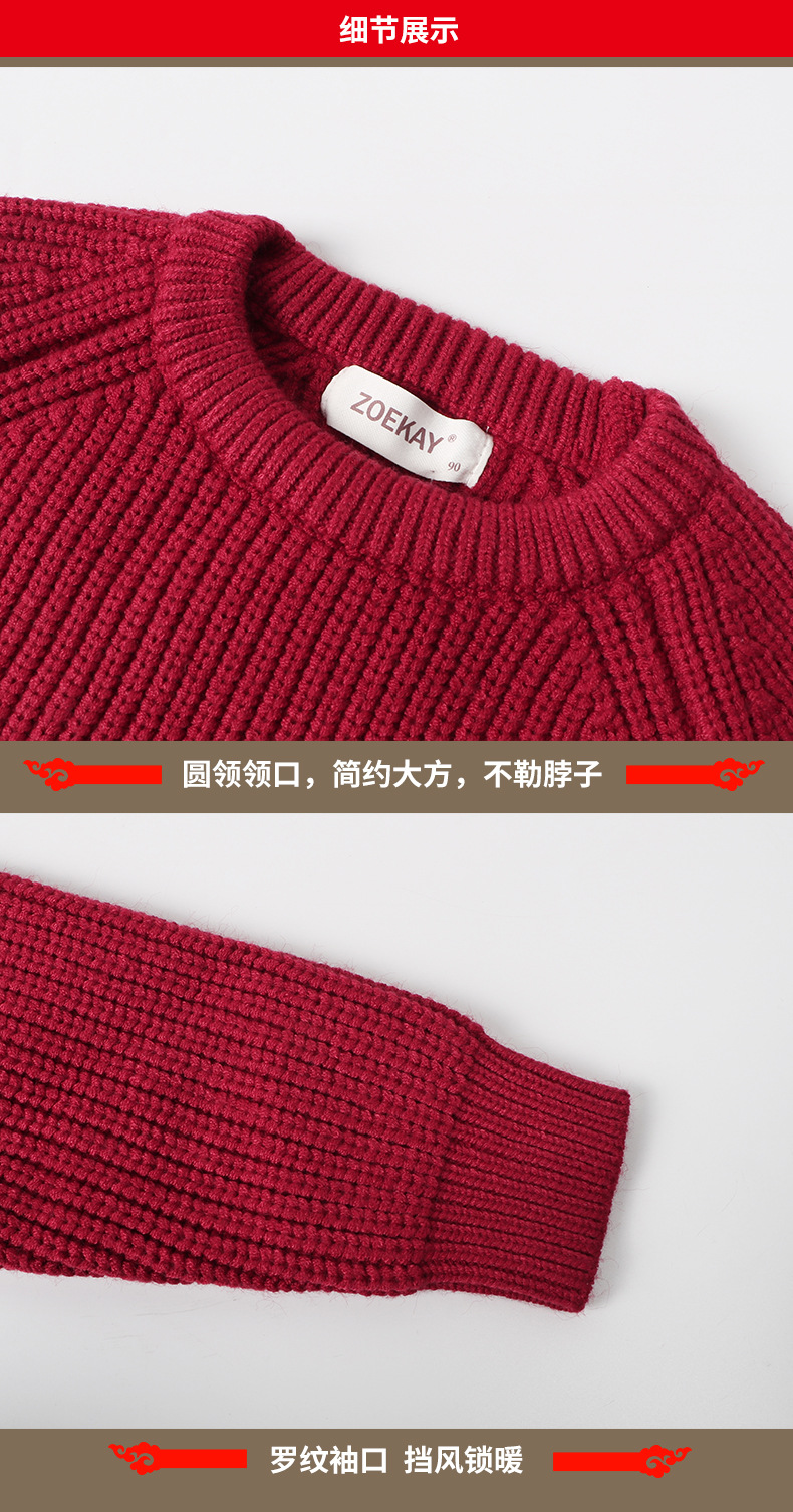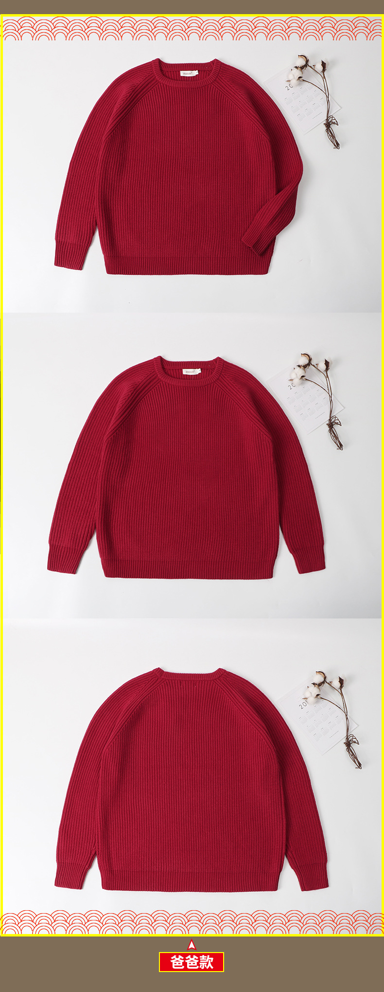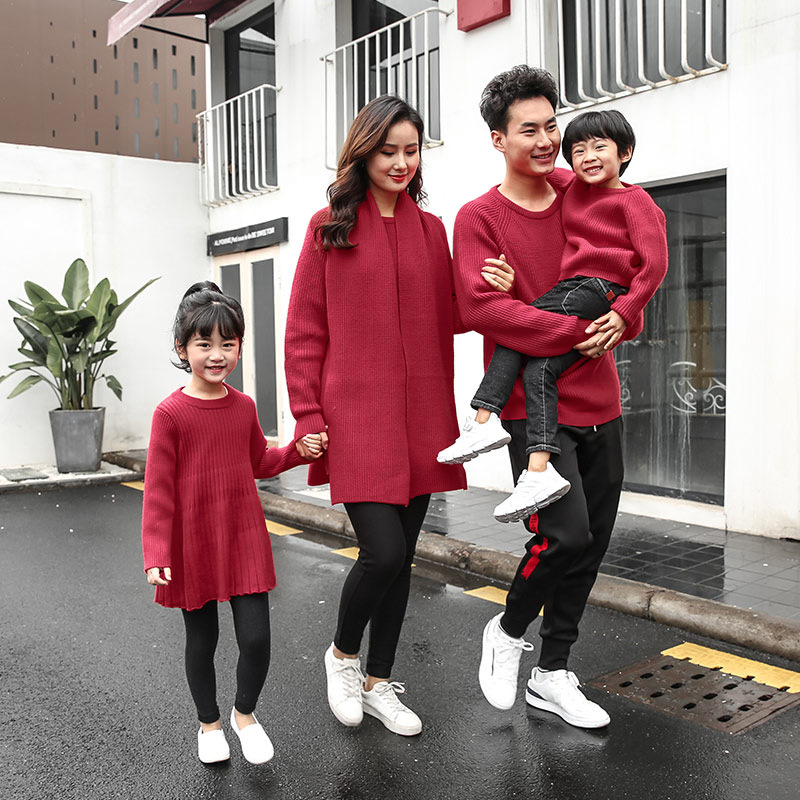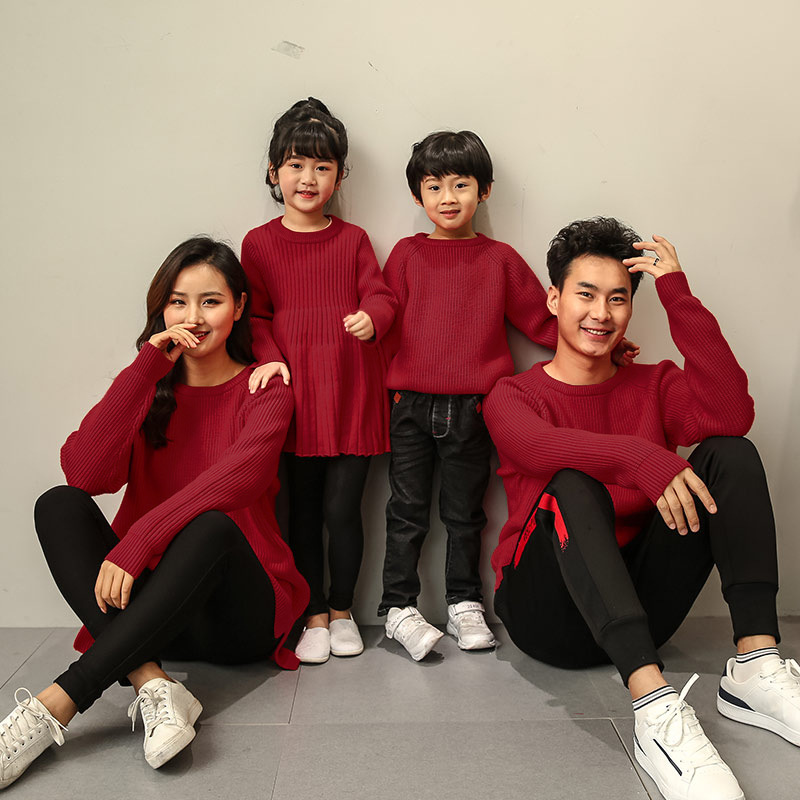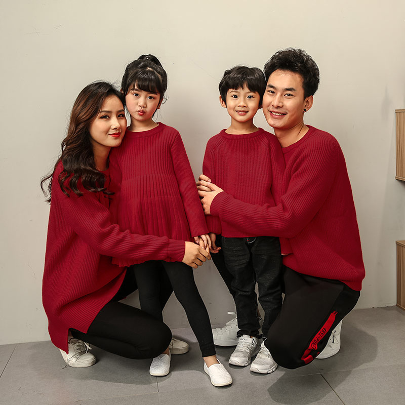一家三四口亲子装全家装四喜亲子装母女母子父子装红色亲子毛衣