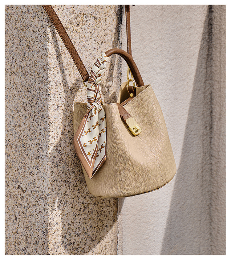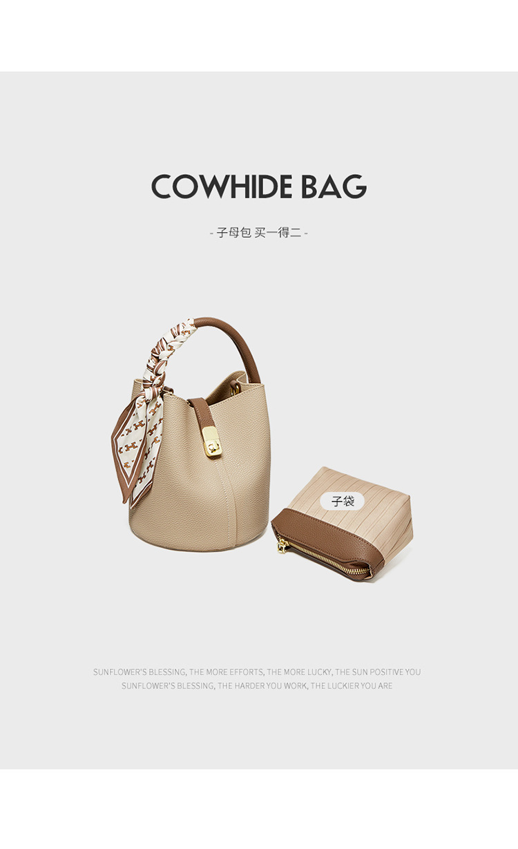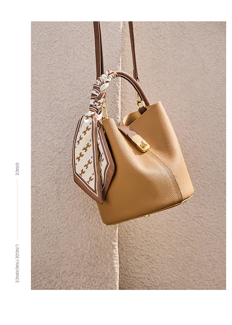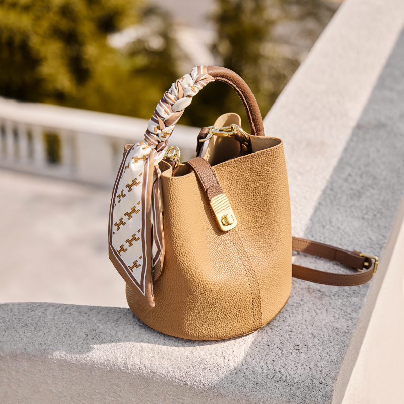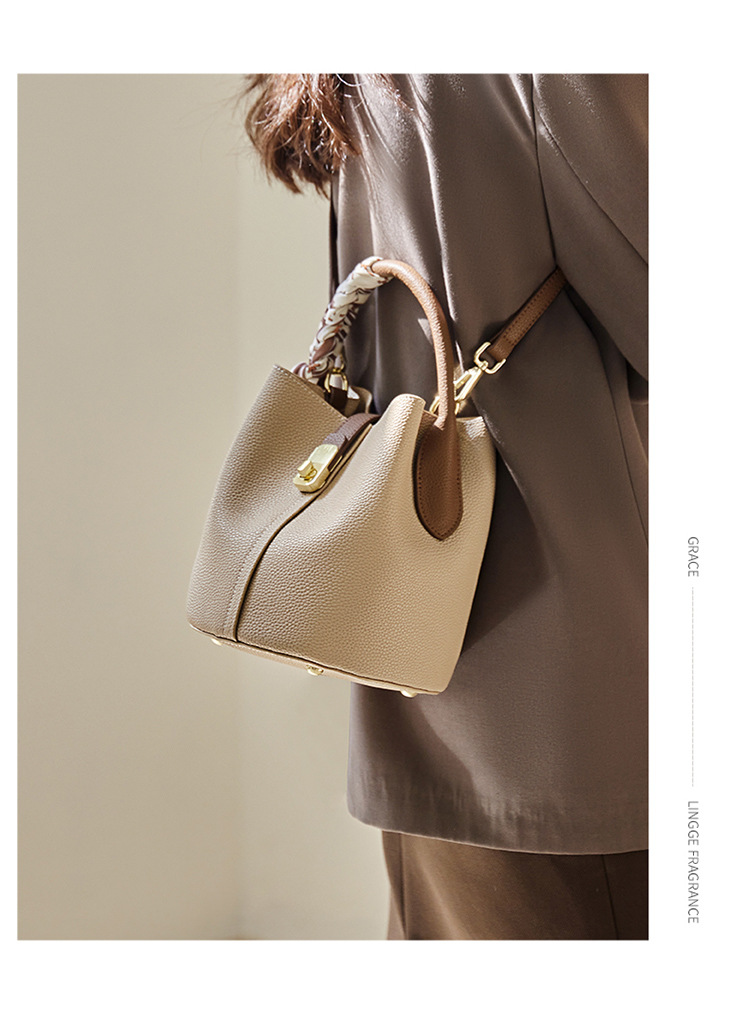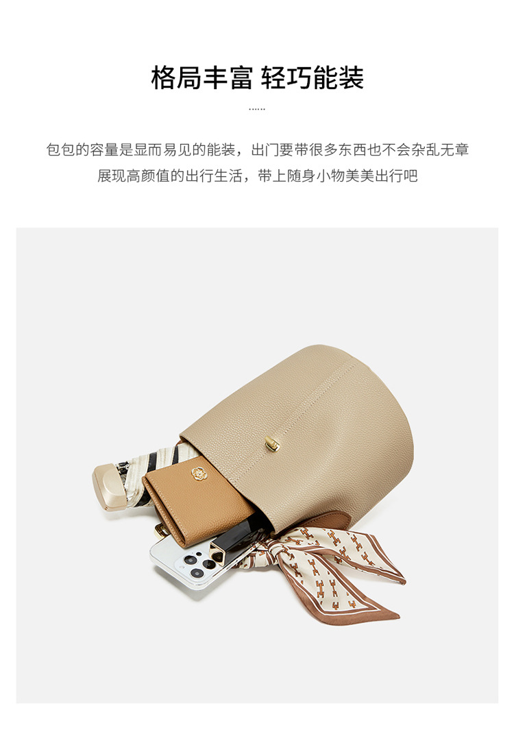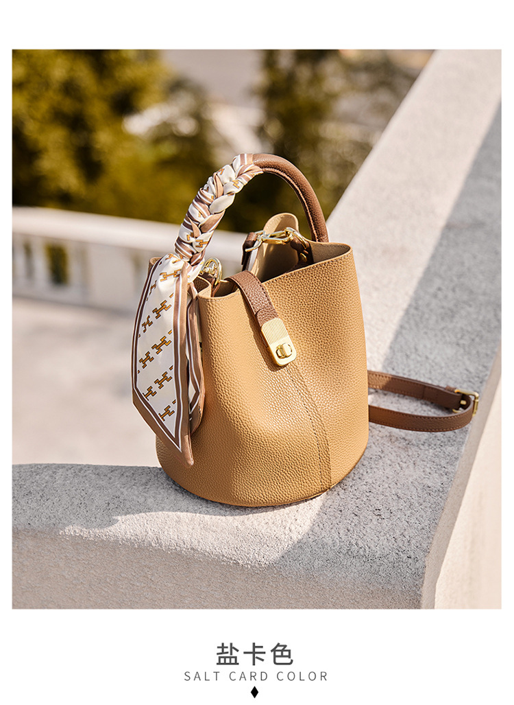 纳兰杜包包女2024新款女士斜挎水桶包高级感手提包单肩包真皮女包