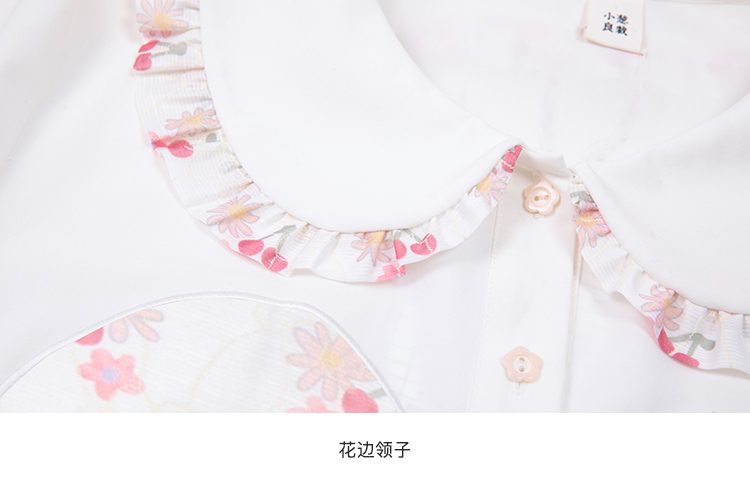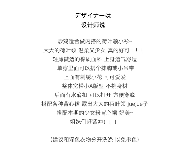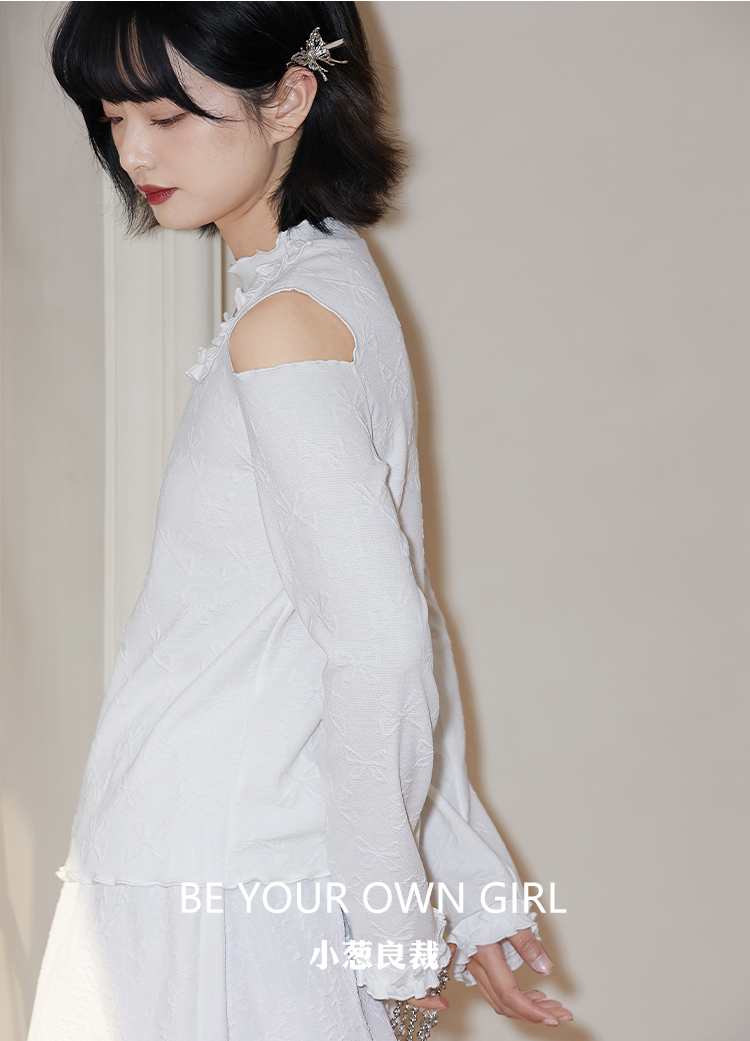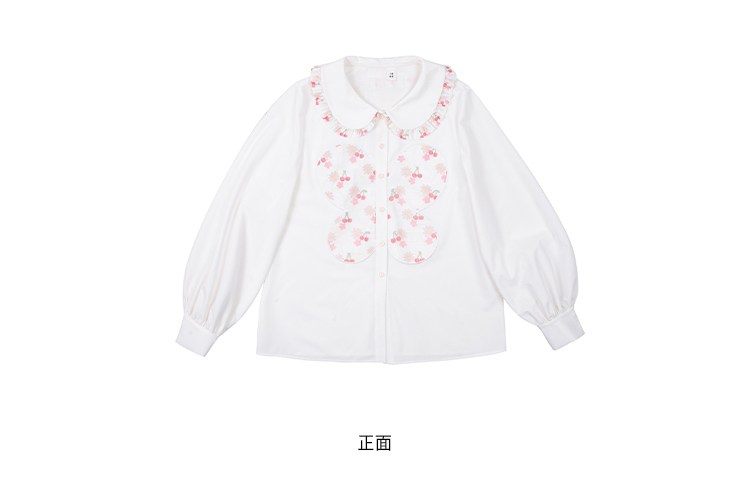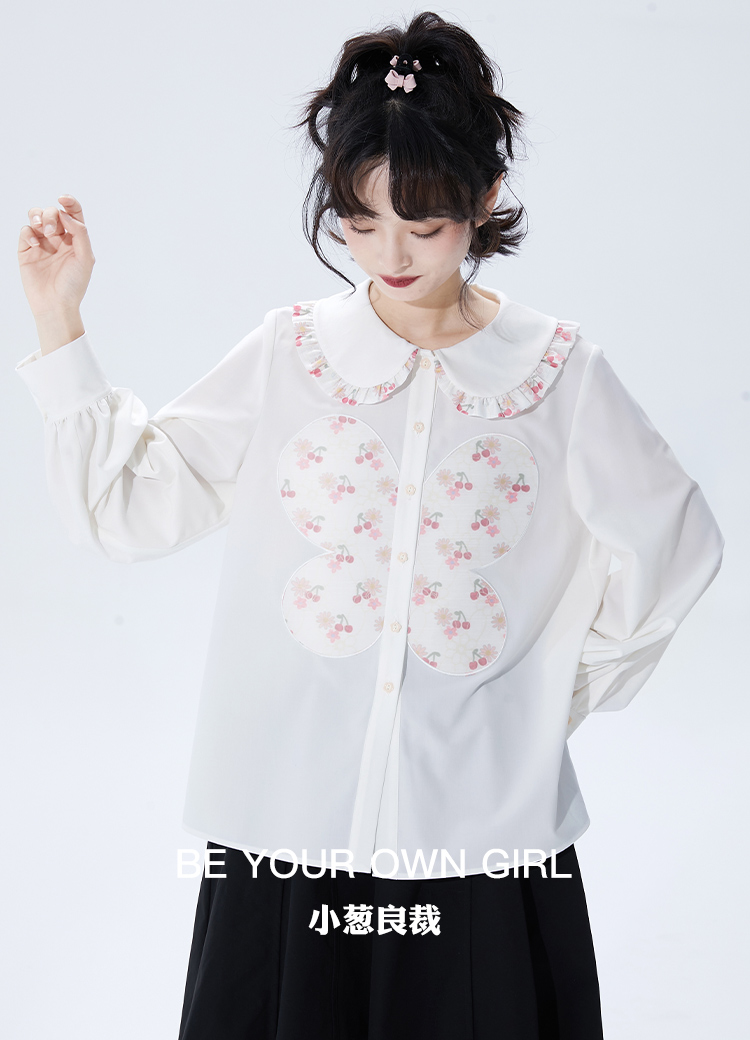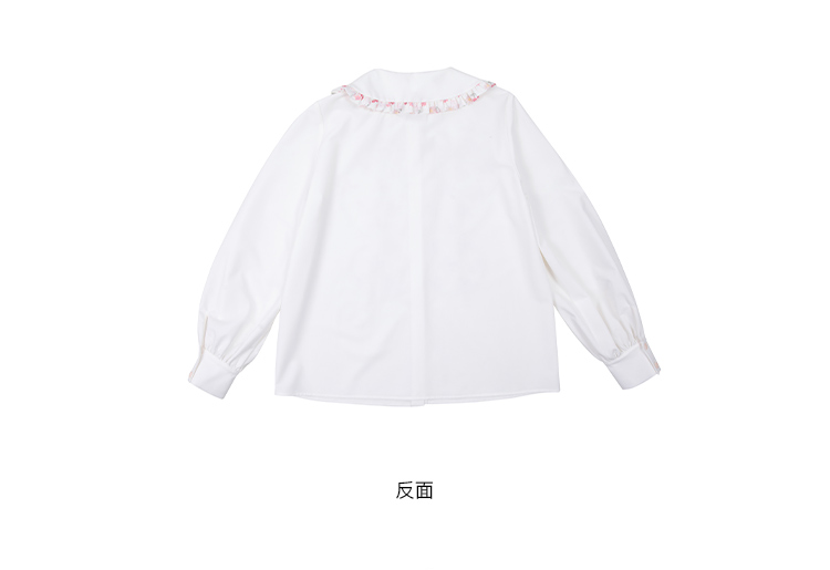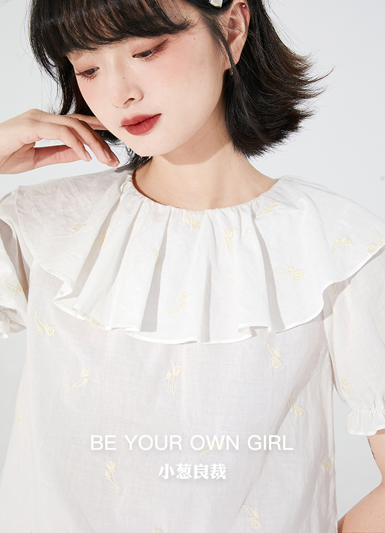 奶白色荷叶领刺绣衬衫