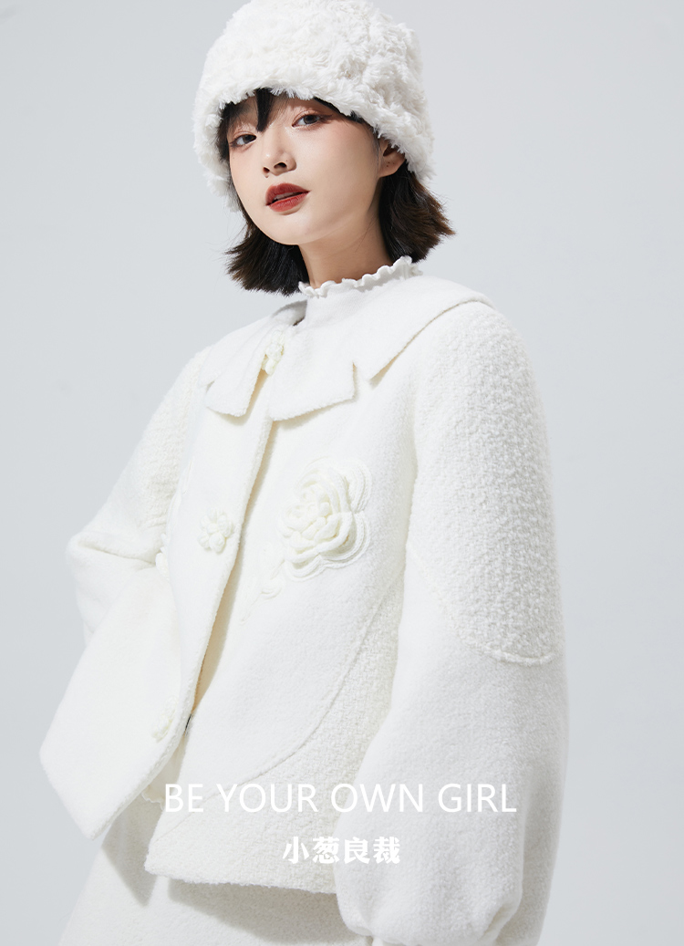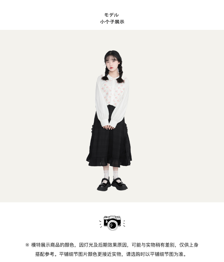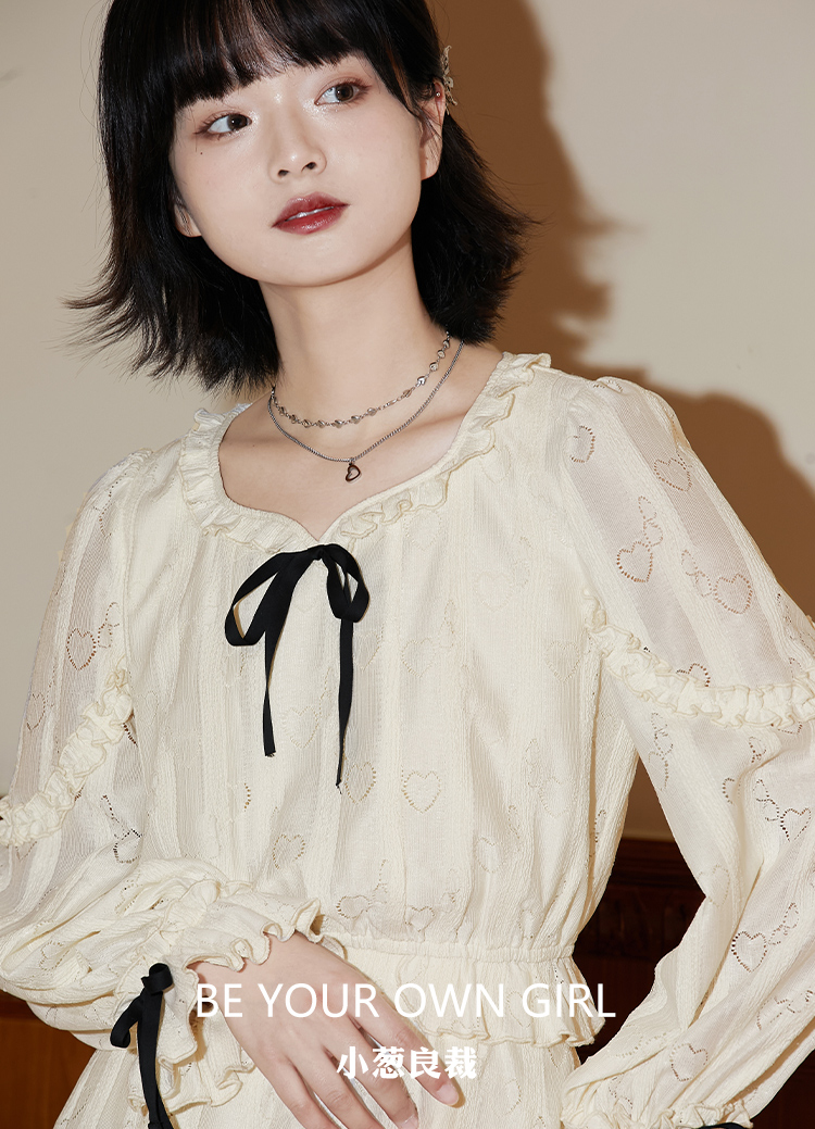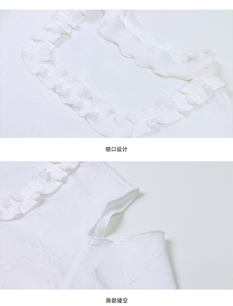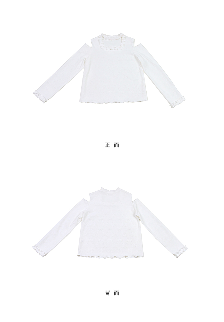 奶白色荷叶领刺绣衬衫