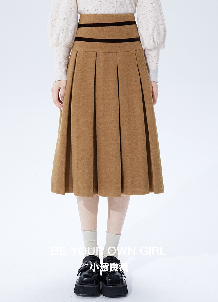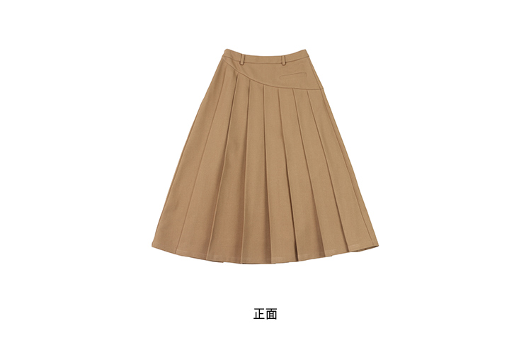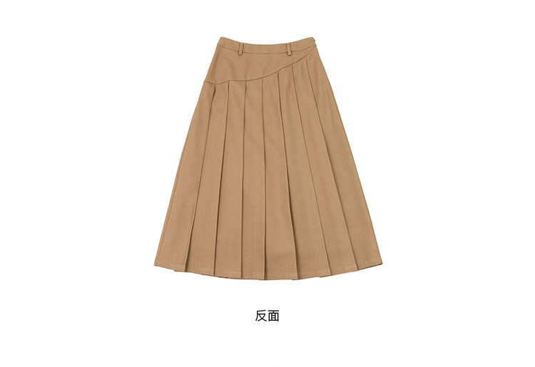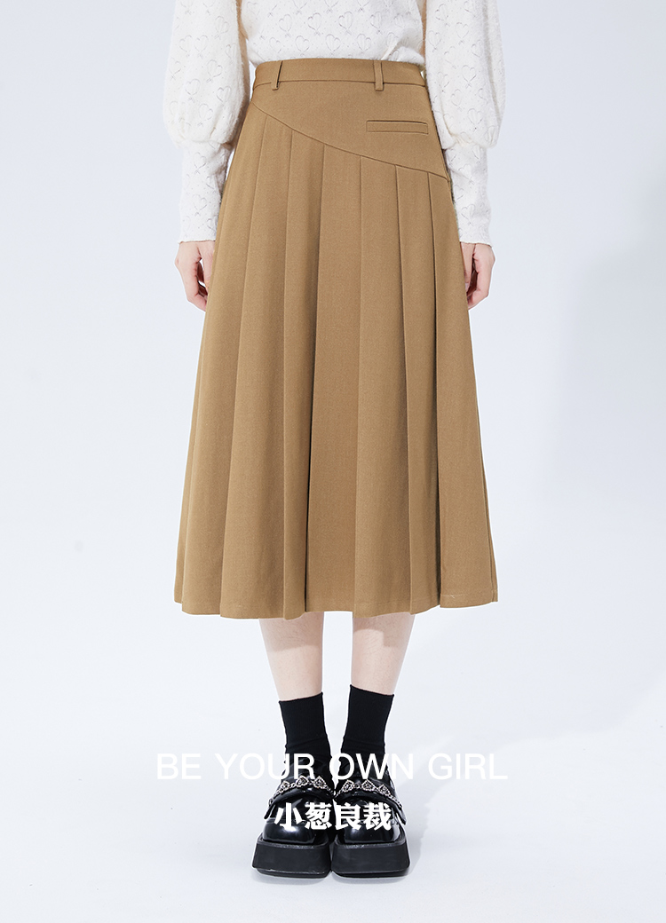 浅米黄压褶半身裙