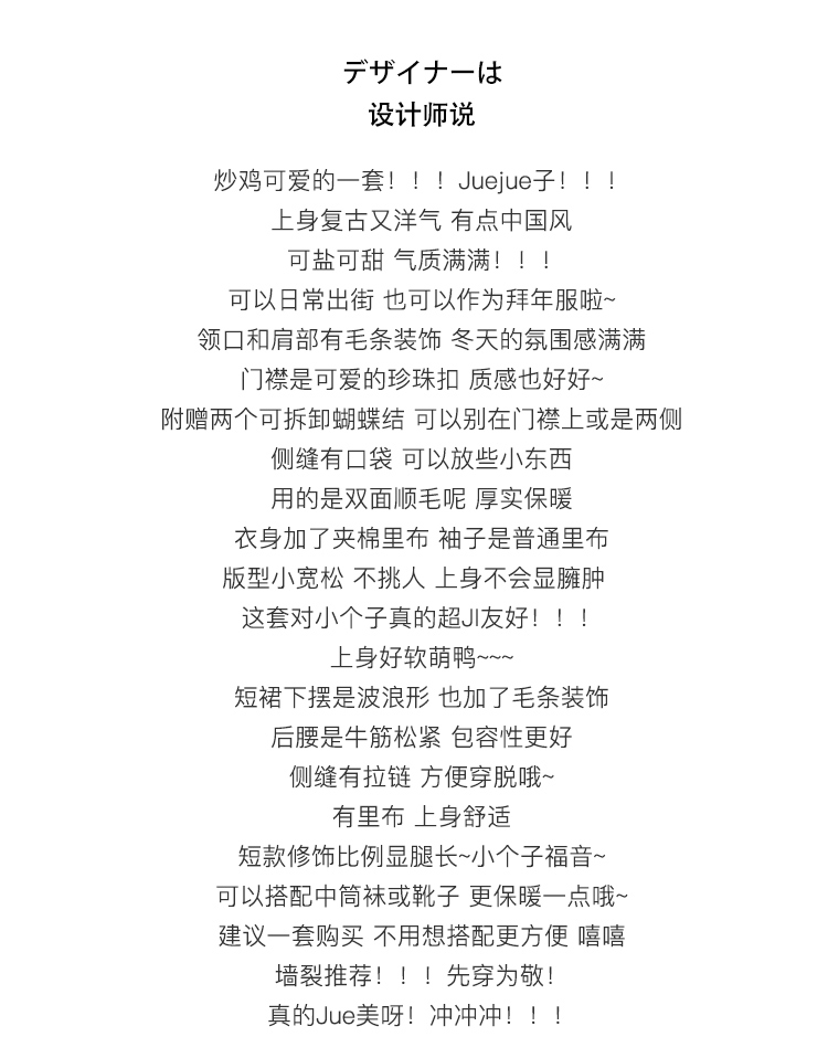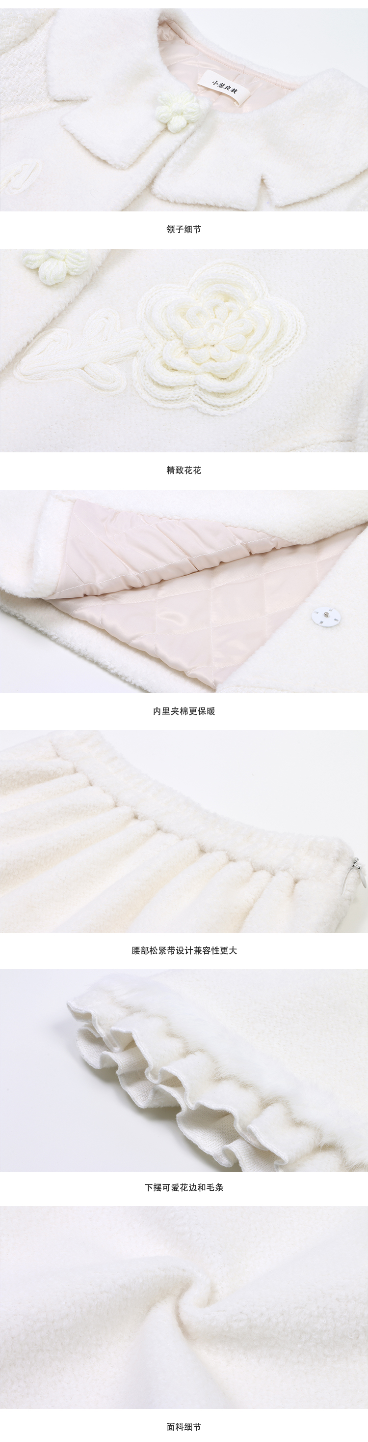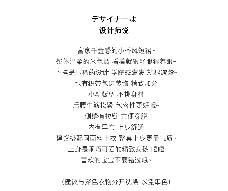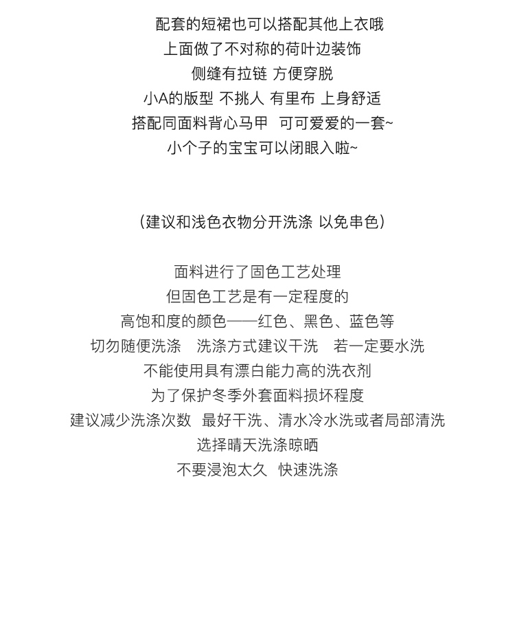顏色分類 灰色織帶百褶半裙,米色盤扣半身裙,霧粉色洋裝,米杏色百褶半身裙,米色蝴蝶結半身裙,刺繡蝴蝶結黑白洋裝,米咖條半裙,奶白色荷葉領刺繡襯衫,白色格子吊帶裙,杏色網紗半身裙,藍色毛邊牛仔半身裙,黑色小熊毛呢半身裙,灰色壓褶長裙,灰色壓褶短裙,黑色中式兔子毛衣,淺奶藍提花旗袍裙,黑色可拆卸背心裙,黑色壓褶半身裙,灰色壓褶半身裙,灰色蝴蝶結背心裙,淺米黃壓褶半身裙,黑色海軍領毛呢大衣,灰色牛角扣毛呢大衣,花灰色短款毛呢外套,花灰色短款毛呢半裙,淺米色愛心絎線棉服,粉色白鴨絨短版羽絨衣,黑色短款海軍領羽絨服,白色粗花呢半裙,奶黃色毛呢半裙,駝色百褶半身裙,藍白色泡泡袖t襯衫,橘紅色磨毛半身裙,粉色燈籠袖襯衫,灰色毛呢半身裙,紅色連帽運動衫,黑色羊毛針織馬甲,米咖色兔子針織開衫,耶誕紅蝴蝶結毛衣,小雞黃蝴蝶結毛衣,白色長袖針織衫,蝴蝶白色長袖襯衫,黑色不規則半身裙,黃棕色毛呢半身裙,黑色外穿吊帶