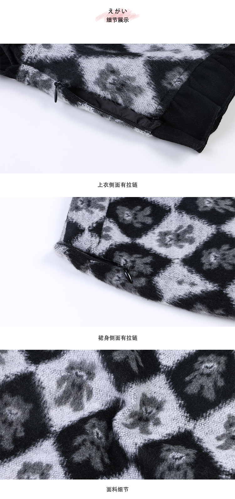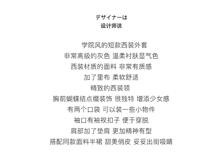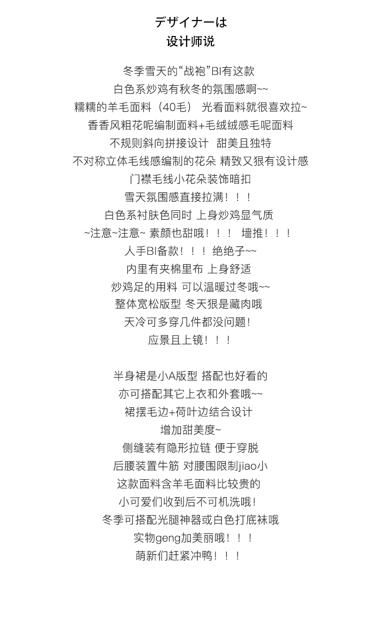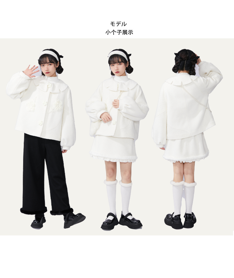顏色分類 灰色織帶百褶半裙,米色盤扣半身裙,霧粉色洋裝,米杏色百褶半身裙,米色蝴蝶結半身裙,刺繡蝴蝶結黑白洋裝,米咖條半裙,奶白色荷葉領刺繡襯衫,白色格子吊帶裙,杏色網紗半身裙,藍色毛邊牛仔半身裙,黑色小熊毛呢半身裙,灰色壓褶長裙,灰色壓褶短裙,黑色中式兔子毛衣,淺奶藍提花旗袍裙,黑色可拆卸背心裙,黑色壓褶半身裙,灰色壓褶半身裙,灰色蝴蝶結背心裙,淺米黃壓褶半身裙,黑色海軍領毛呢大衣,灰色牛角扣毛呢大衣,花灰色短款毛呢外套,花灰色短款毛呢半裙,淺米色愛心絎線棉服,粉色白鴨絨短版羽絨衣,黑色短款海軍領羽絨服,白色粗花呢半裙,奶黃色毛呢半裙,駝色百褶半身裙,藍白色泡泡袖t襯衫,橘紅色磨毛半身裙,粉色燈籠袖襯衫,灰色毛呢半身裙,紅色連帽運動衫,黑色羊毛針織馬甲,米咖色兔子針織開衫,耶誕紅蝴蝶結毛衣,小雞黃蝴蝶結毛衣,白色長袖針織衫,蝴蝶白色長袖襯衫,黑色不規則半身裙,黃棕色毛呢半身裙,黑色外穿吊帶