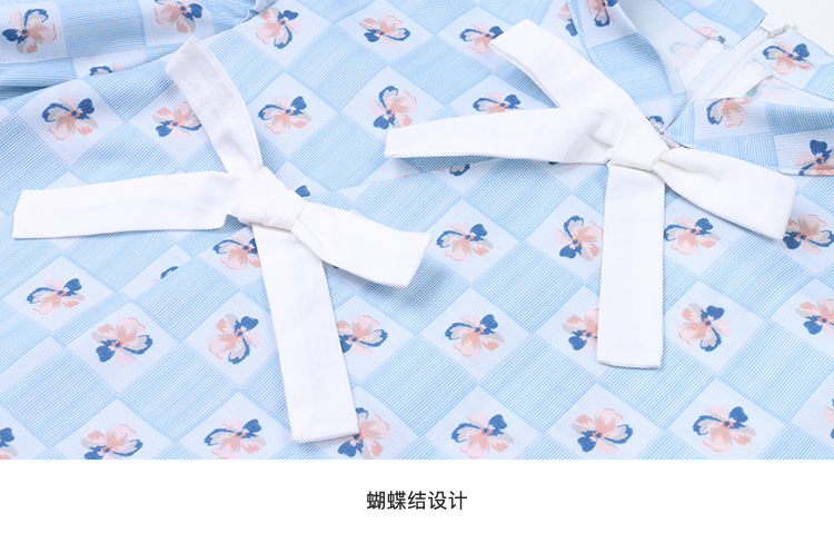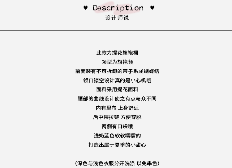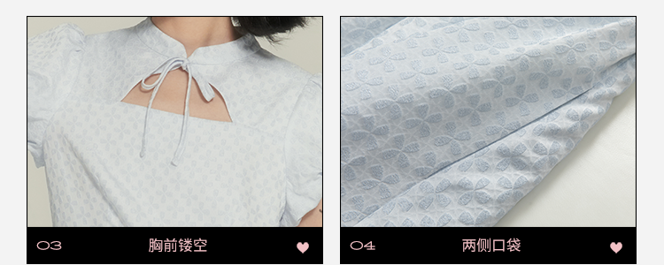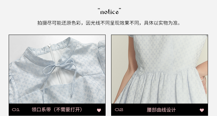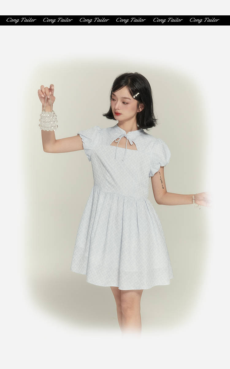 浅奶蓝提花旗袍裙