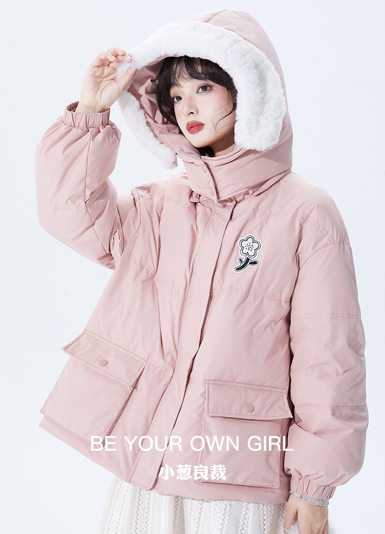 粉色白鸭绒短款羽绒服