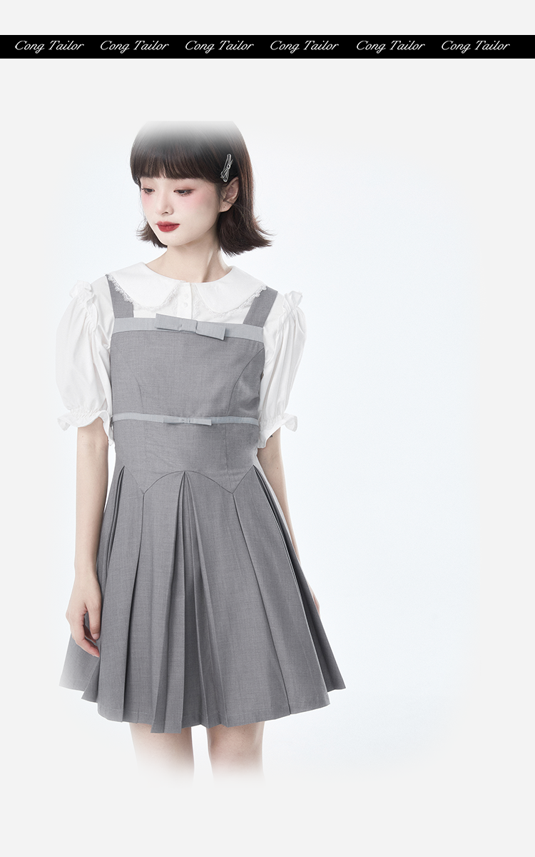 灰色蝴蝶结背心裙