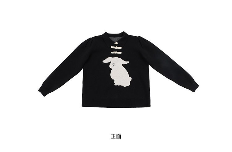 黑色中式兔子毛衣