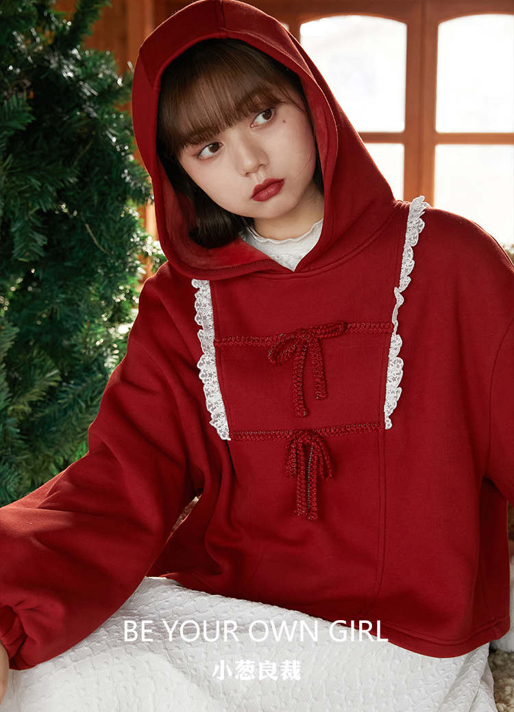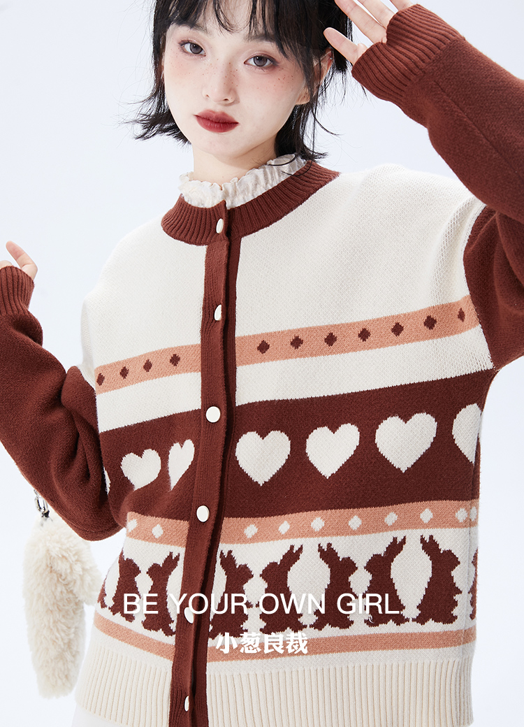 红色连帽卫衣黑色羊毛针织马甲米咖色兔子针织开衫
