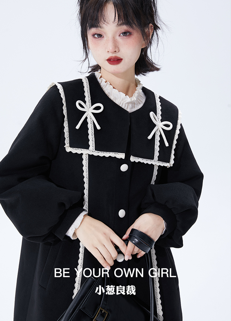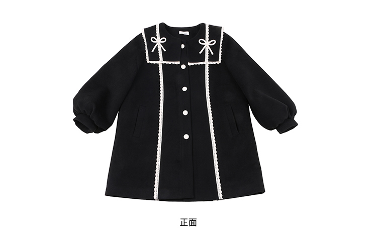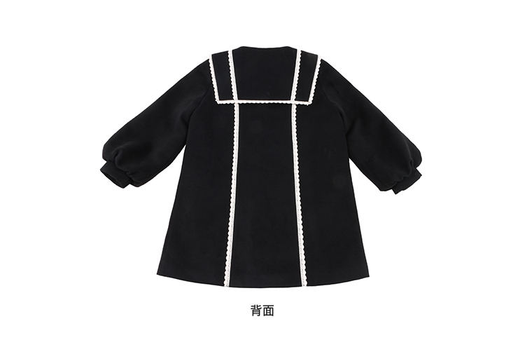 黑色海军领毛呢大衣
