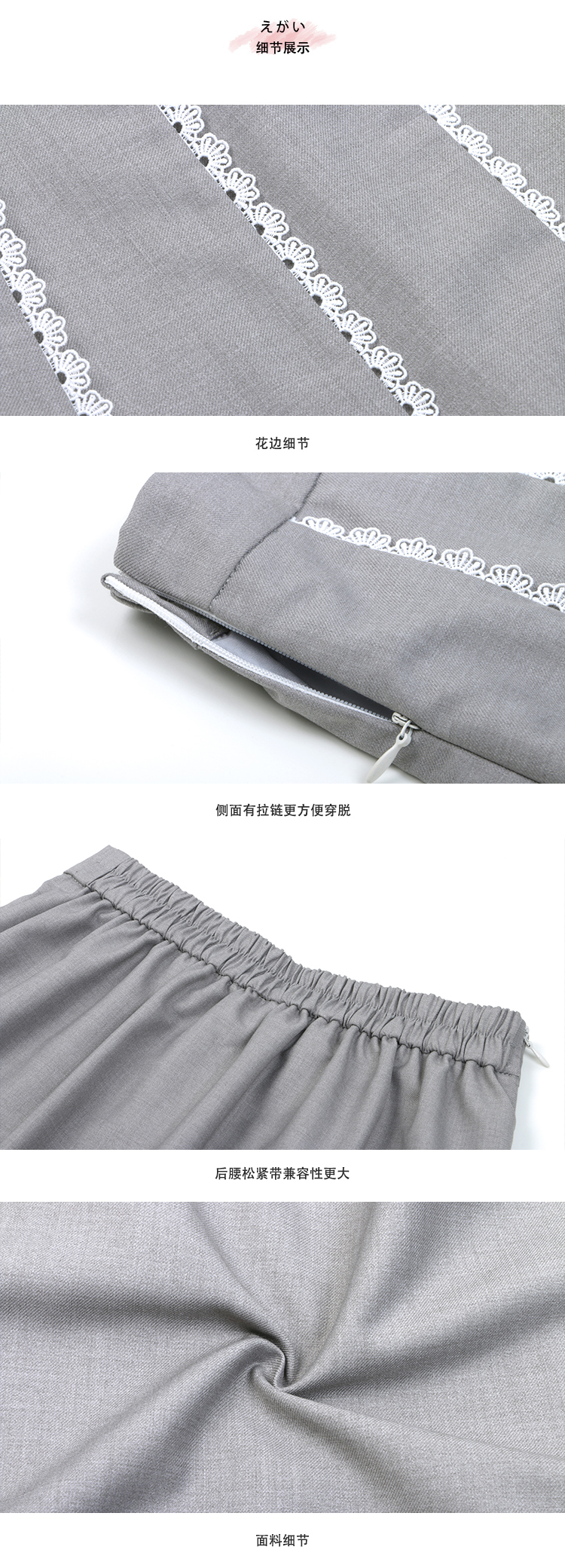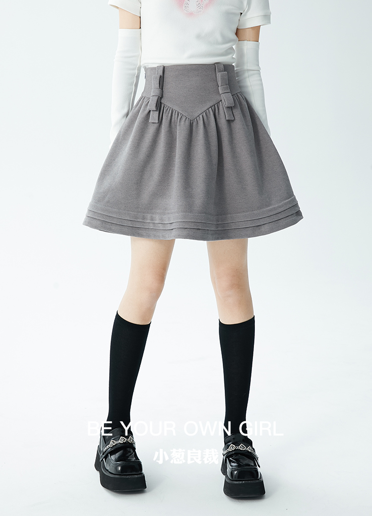 灰色织带百褶半裙