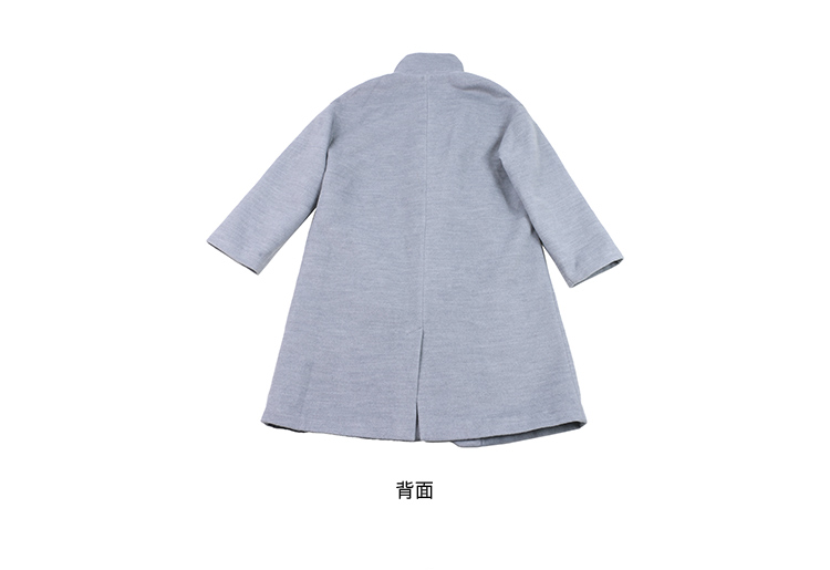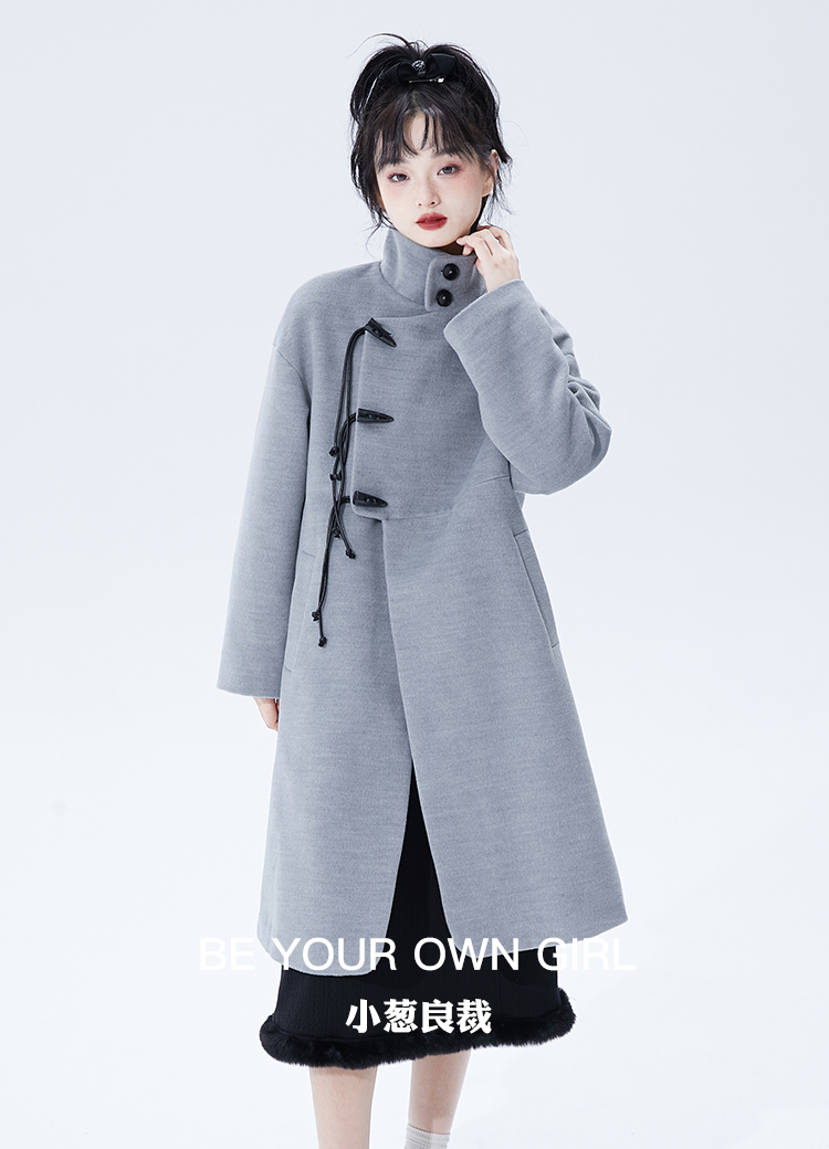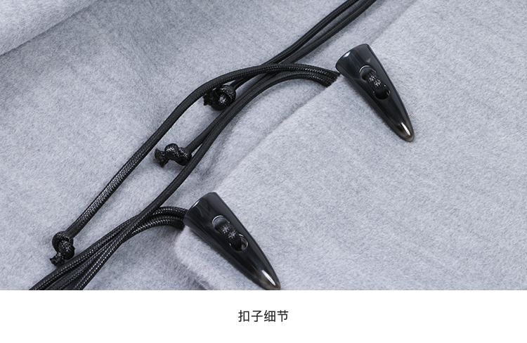 灰色牛角扣毛呢大衣