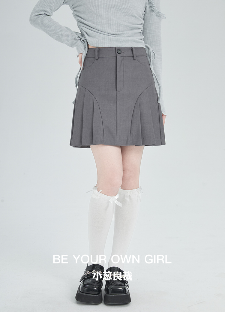 灰色压褶短裙