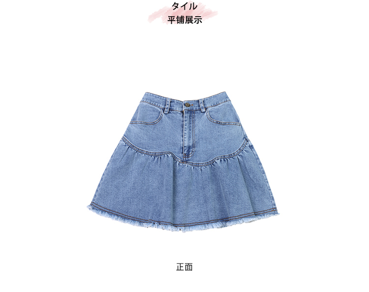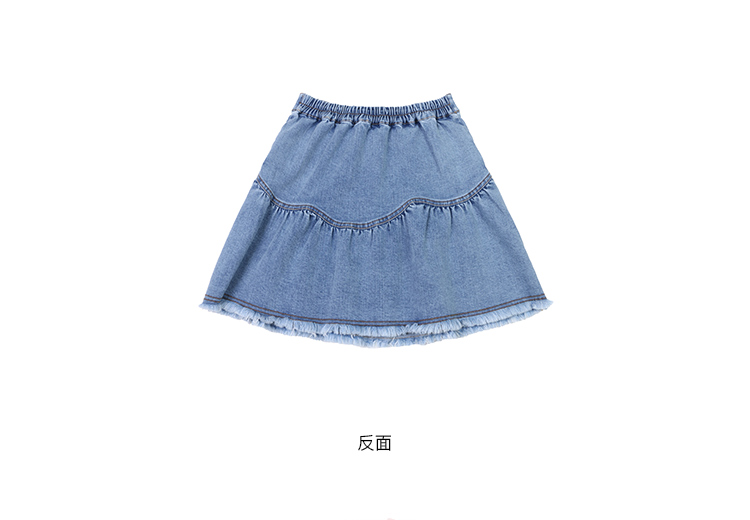 蓝色毛边牛仔半身裙