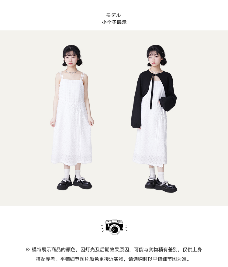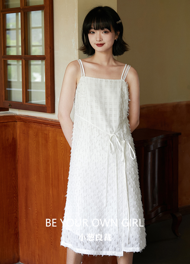 白色格子吊带裙