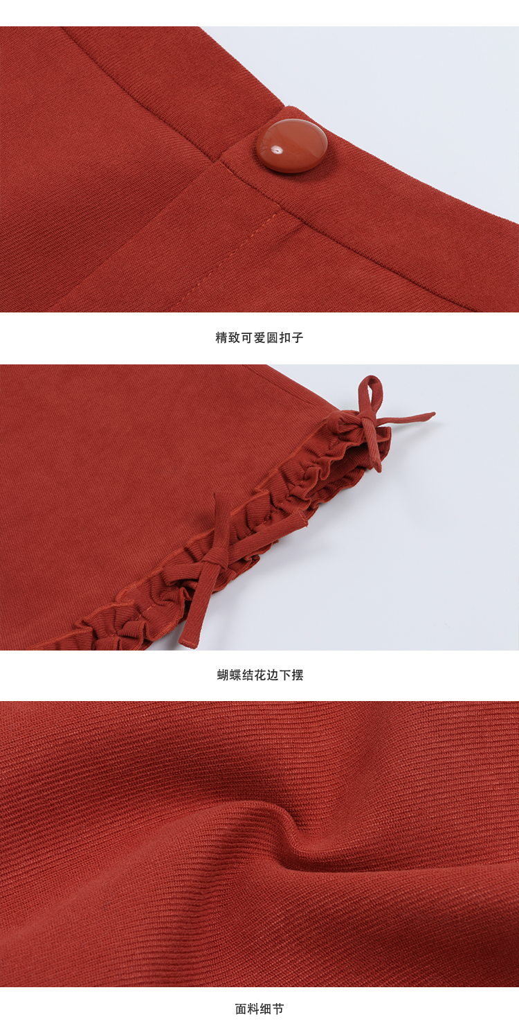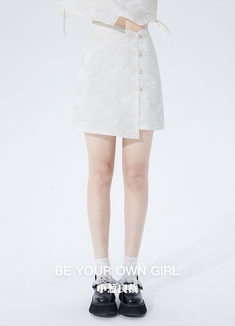 米色盘扣半身裙