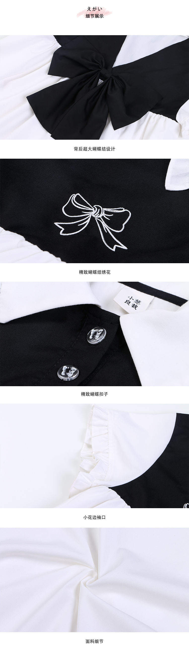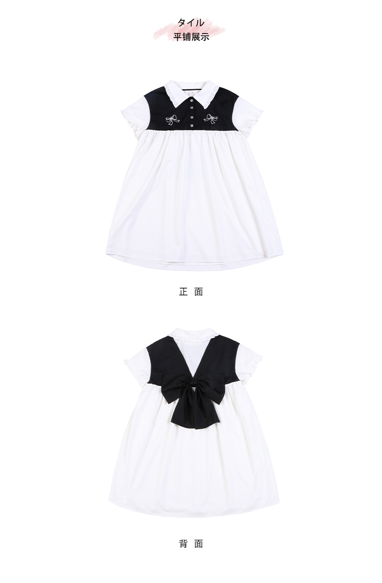 刺绣蝴蝶结黑白连衣裙