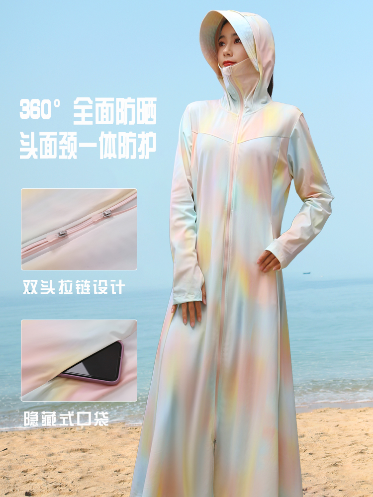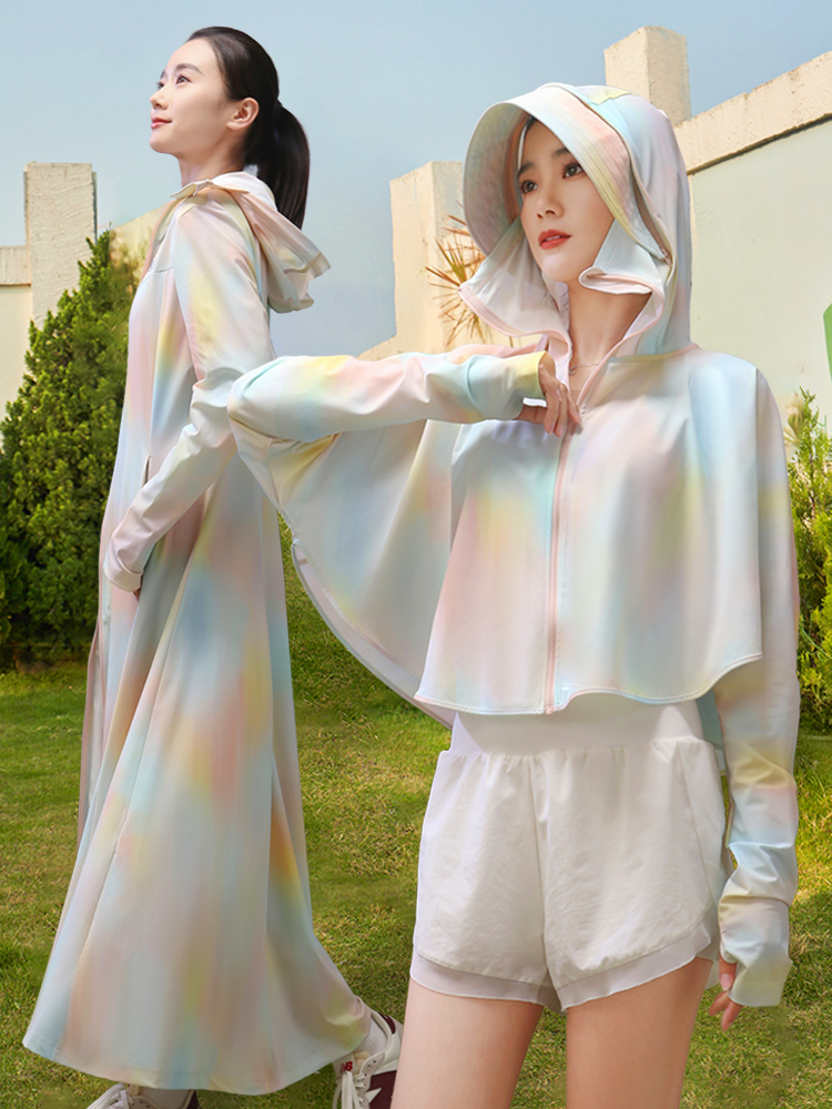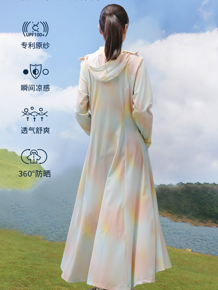 日本STELU抗UV原紗防曬衣女超長款涼感透氣大帽簷冰絲防曬服