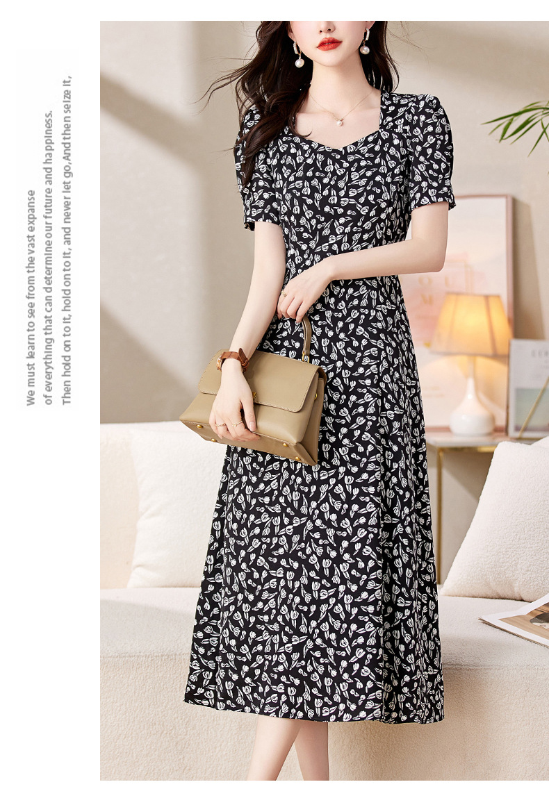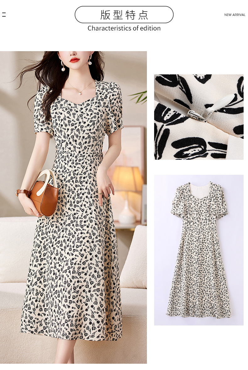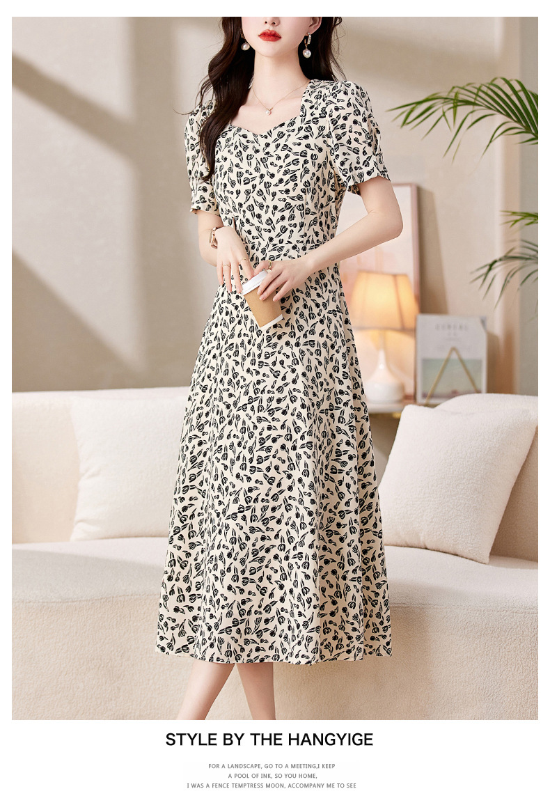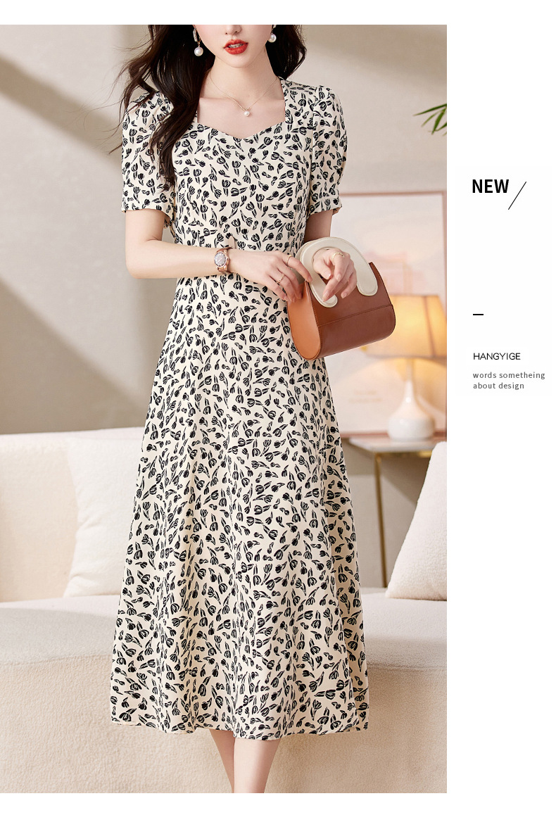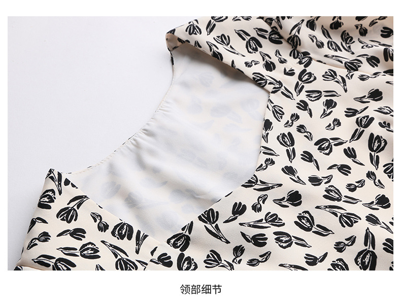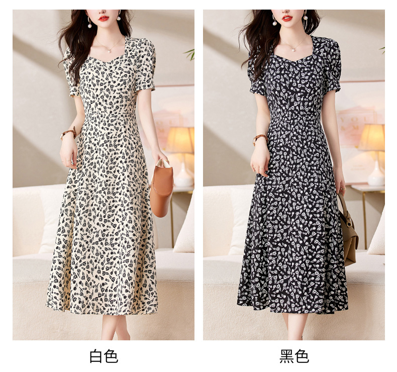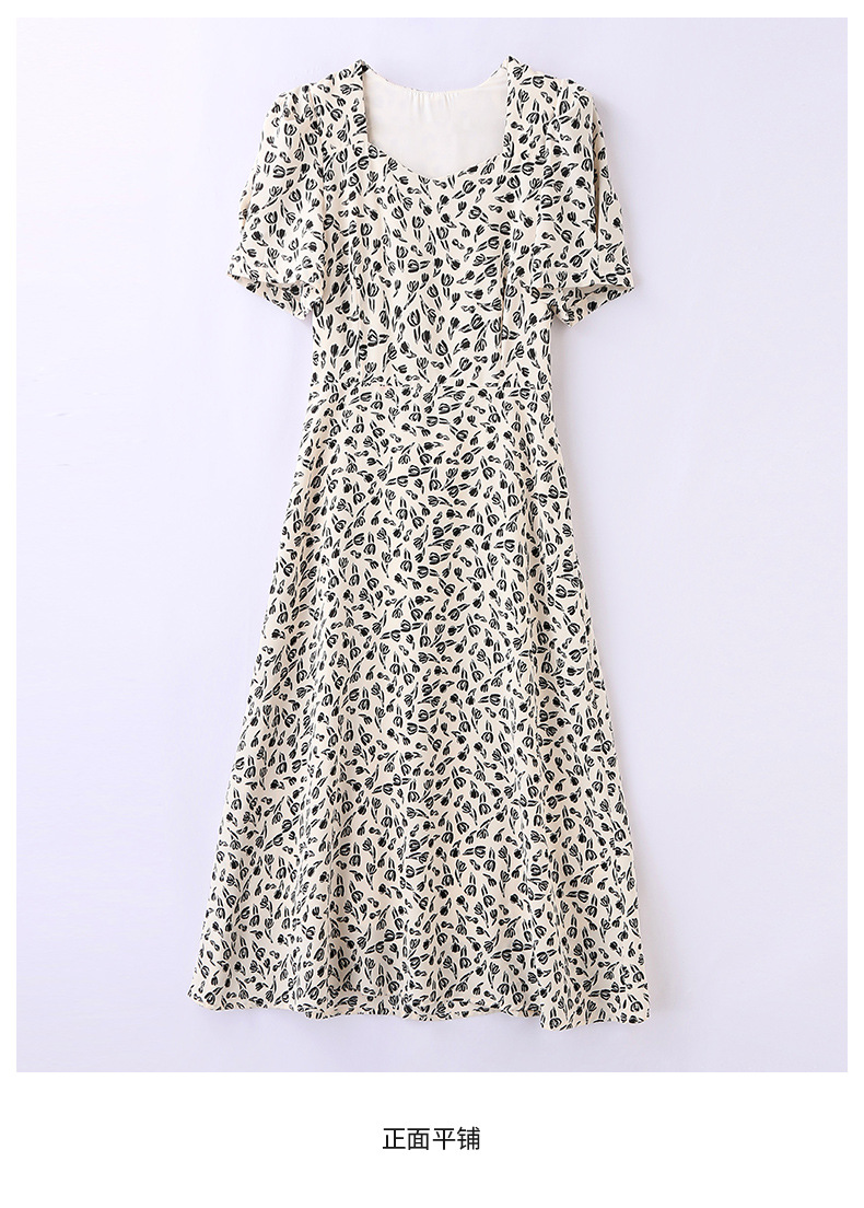 设计感碎花连衣裙女夏2023新款气质修身显瘦茶歇法式方领短袖裙子