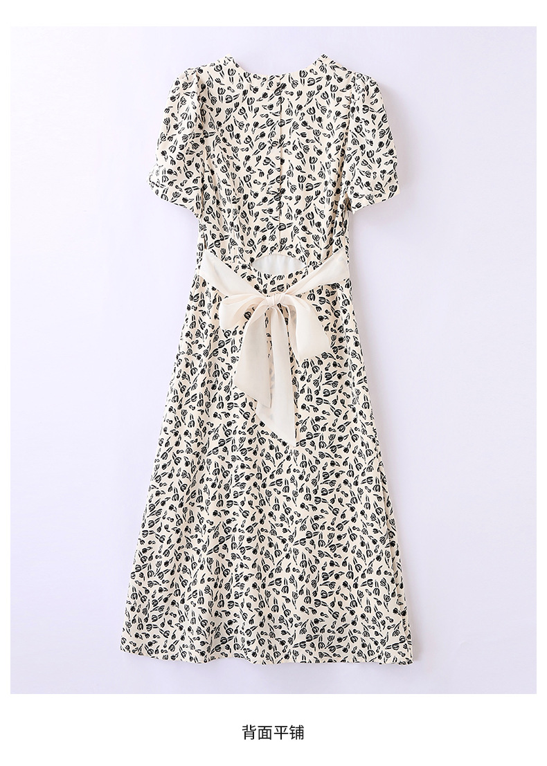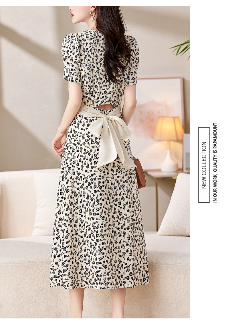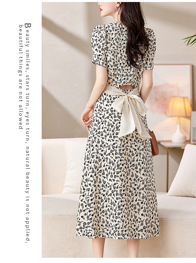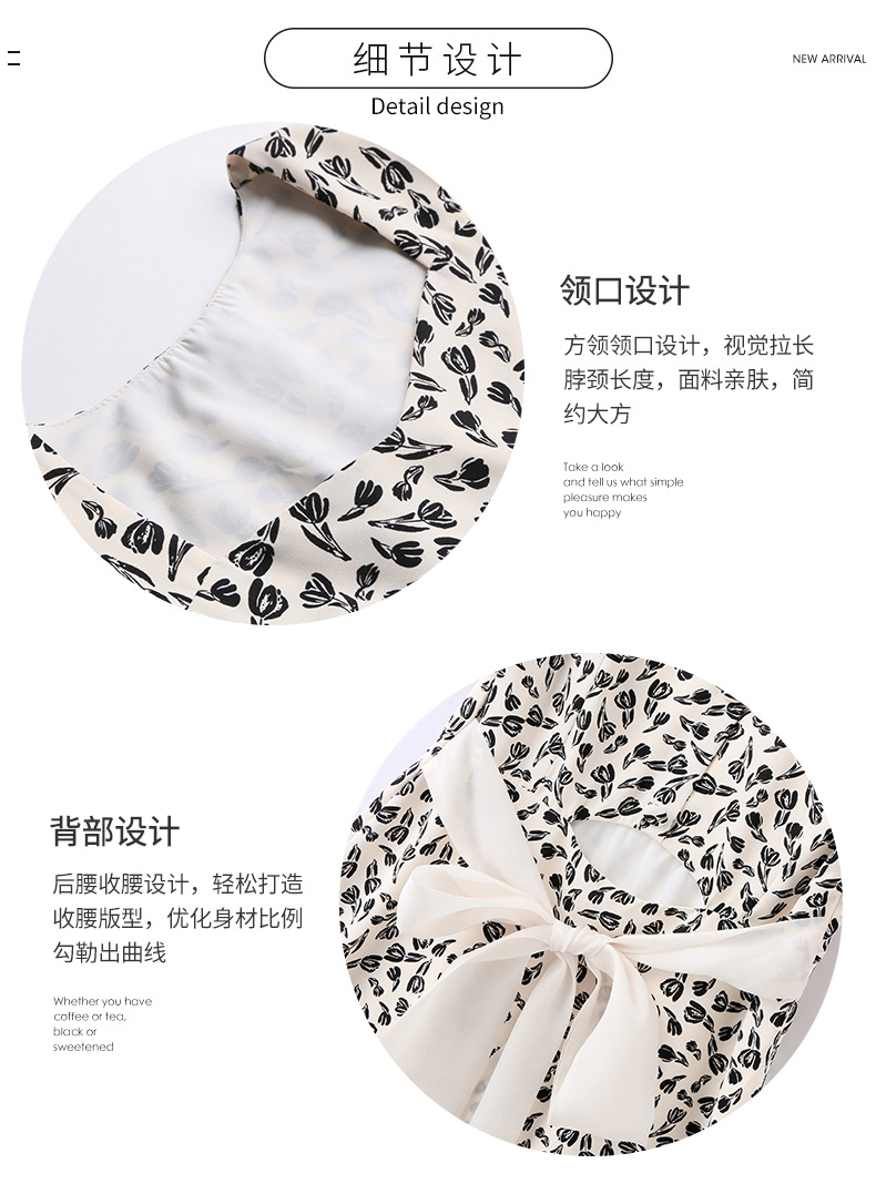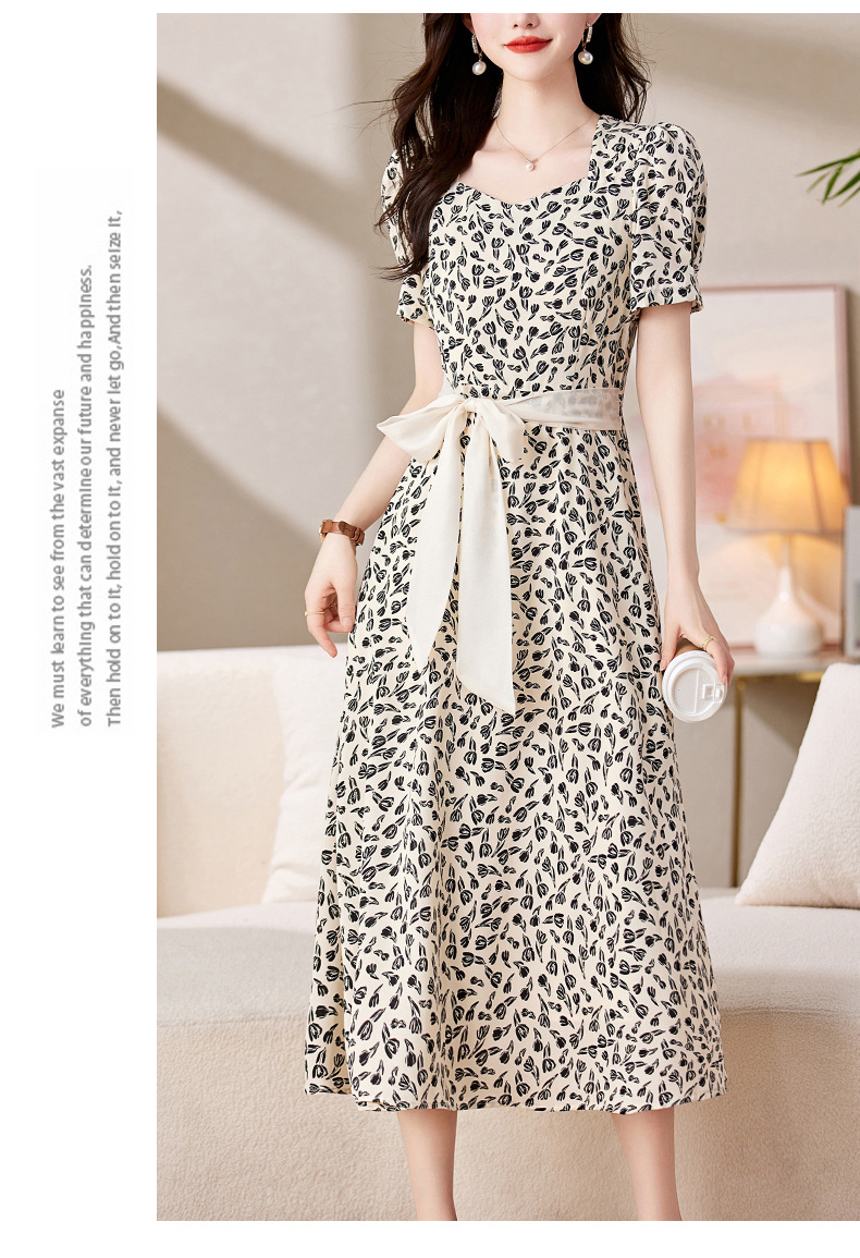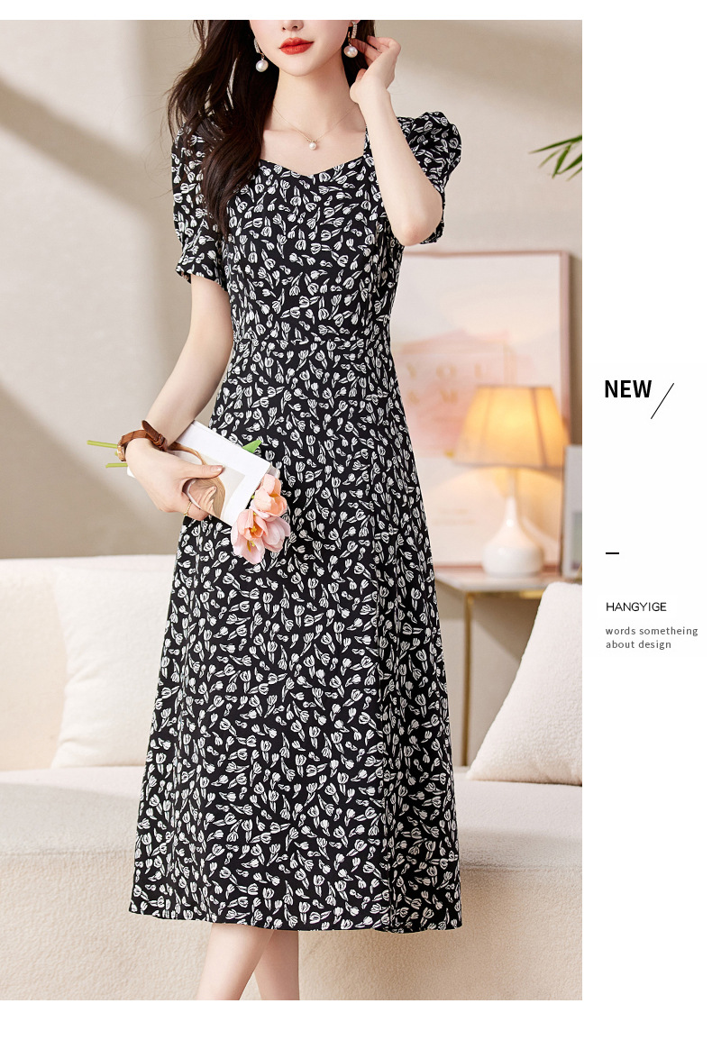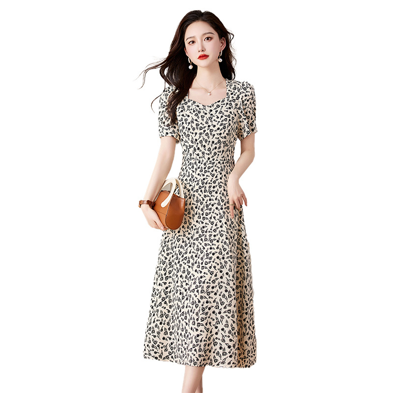 设计感碎花连衣裙女夏2023新款气质修身显瘦茶歇法式方领短袖裙子