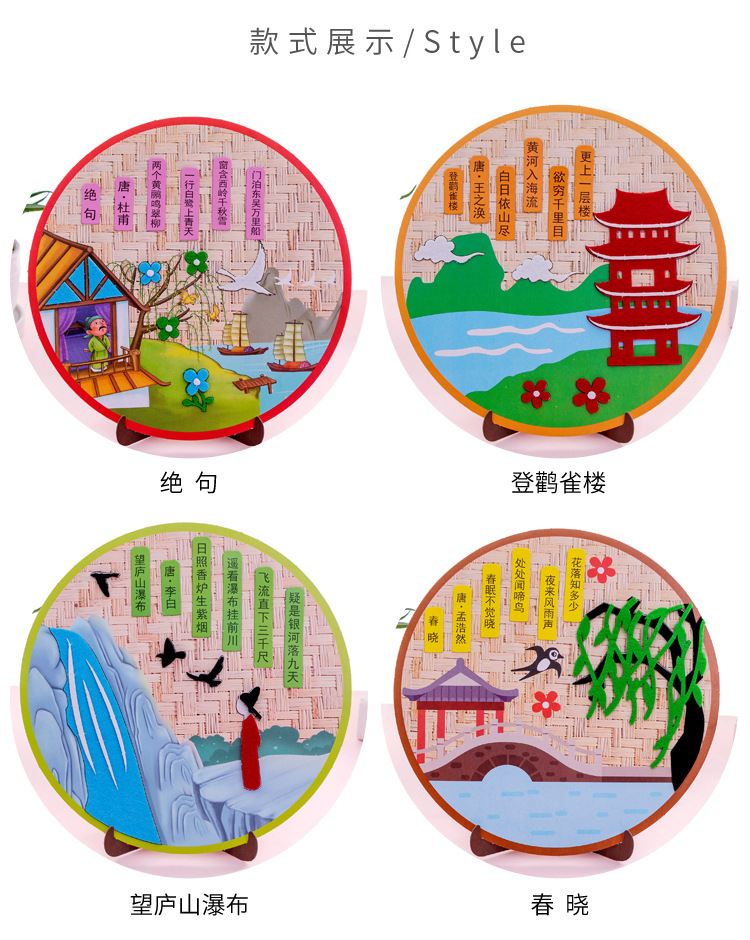创意诗词贴画,让孩子在手工同时爱上中国传统文化您收到的是材料包,需要自己制作哦
