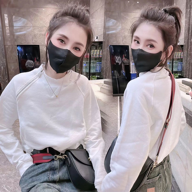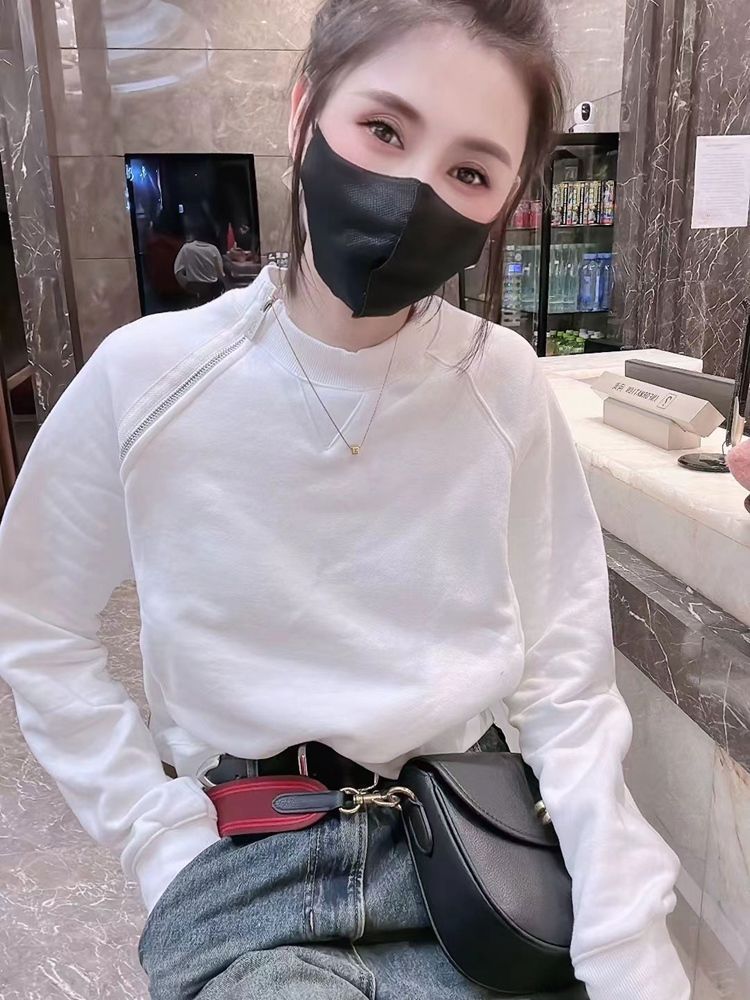 衛衣女2023春秋新款韓版設計感拼接圓領拉鍊寬鬆白色顯瘦上衣休閒