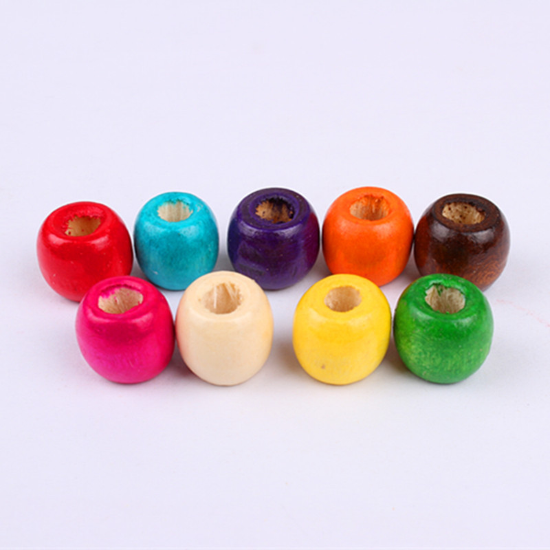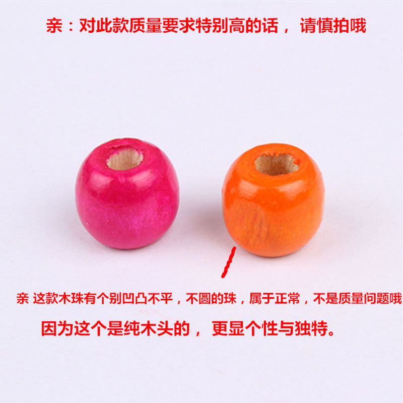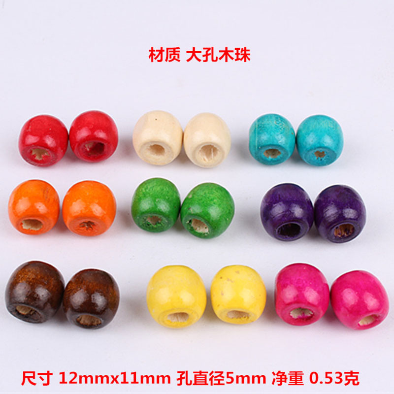 12MM彩色大孔木珠 diy儿童串珠编绳珠子散珠彩珠圆木珠配件材料