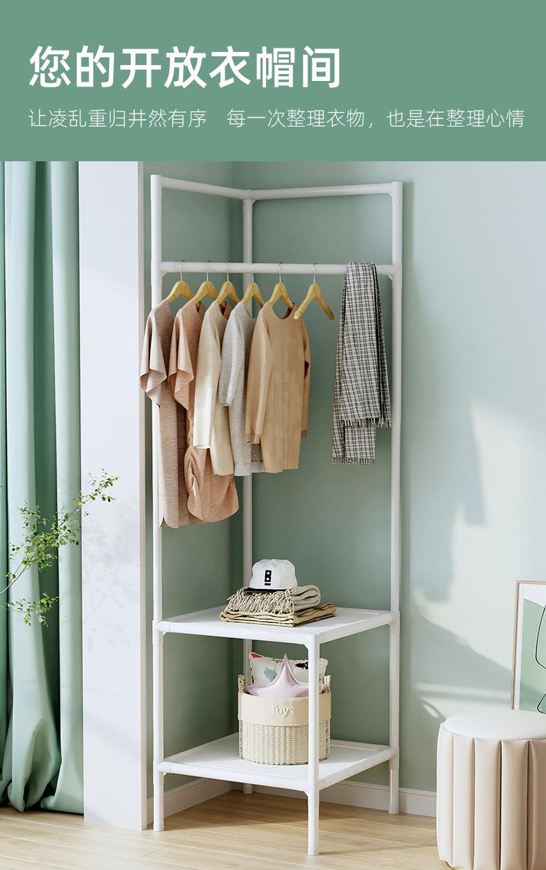 K6WY批发转角衣帽架挂衣架落地卧室墙角拐角房间简易不占地家用三