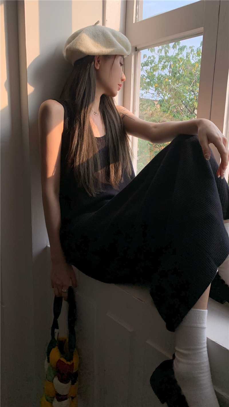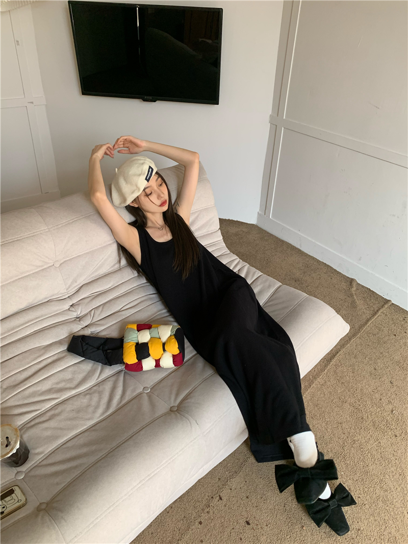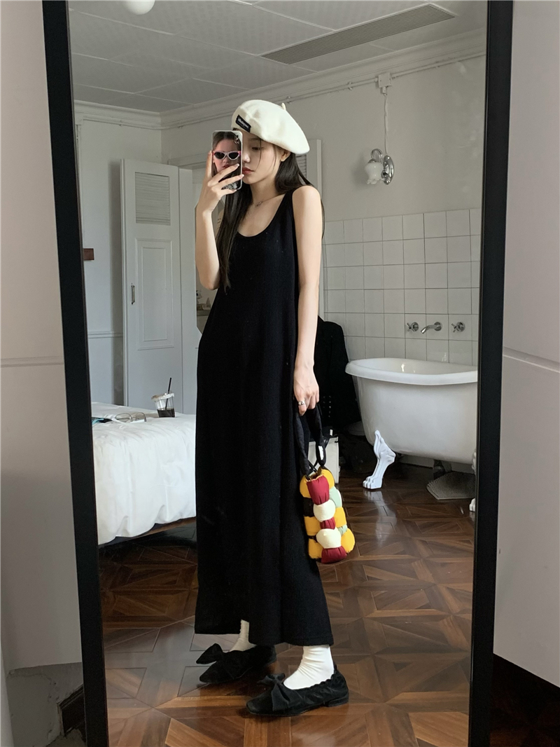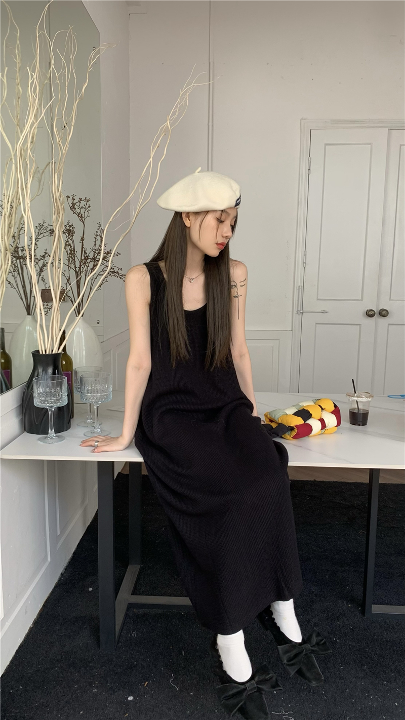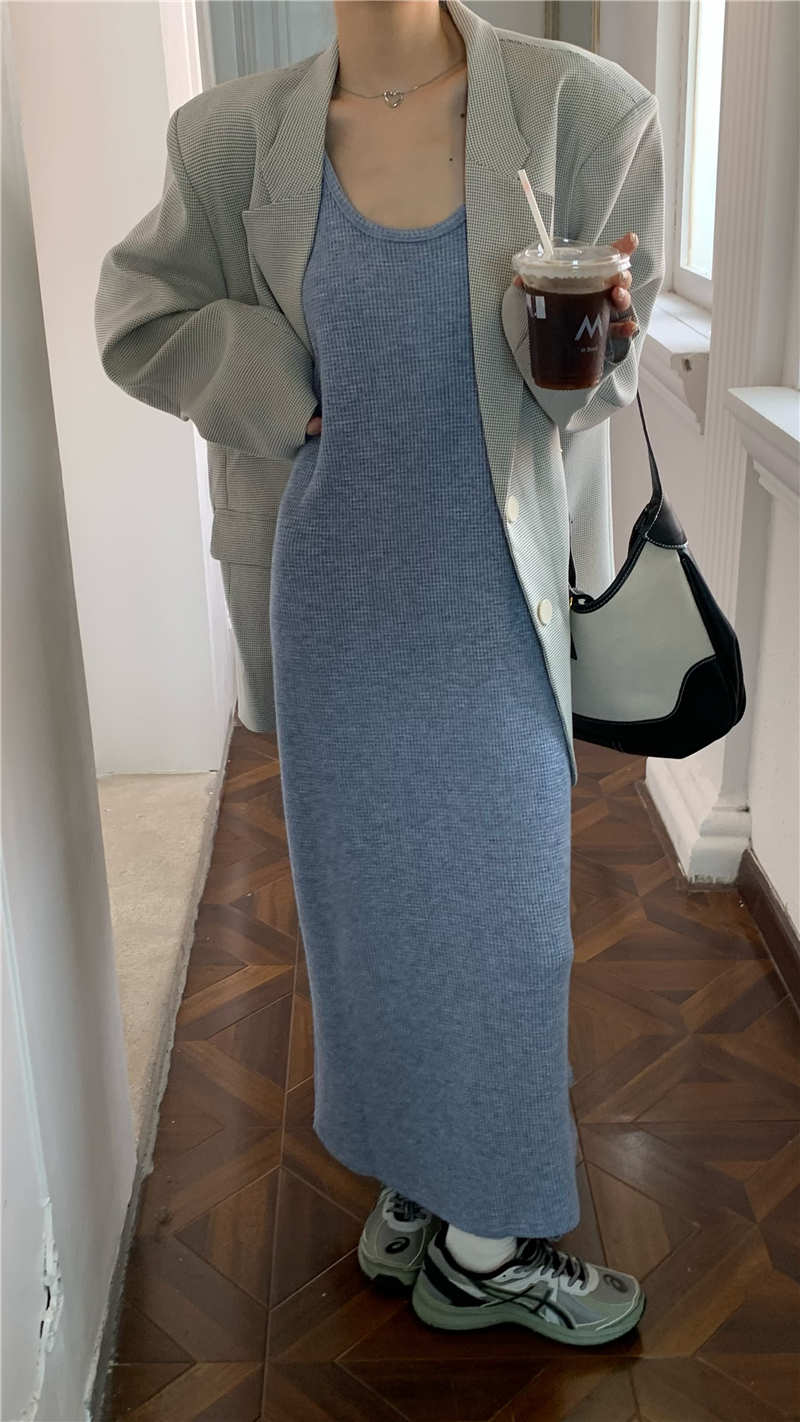 PPHOME夜暮甜曲~華夫格無袖背心洋裝顯瘦吊帶裙寬鬆慵懶風長裙