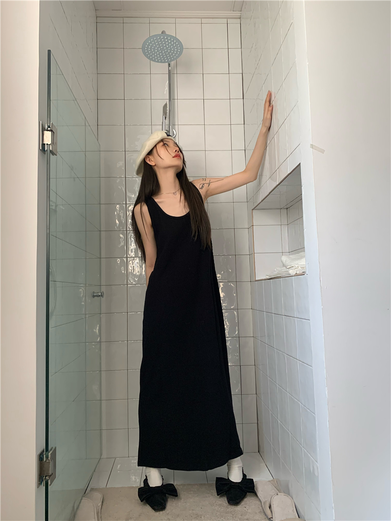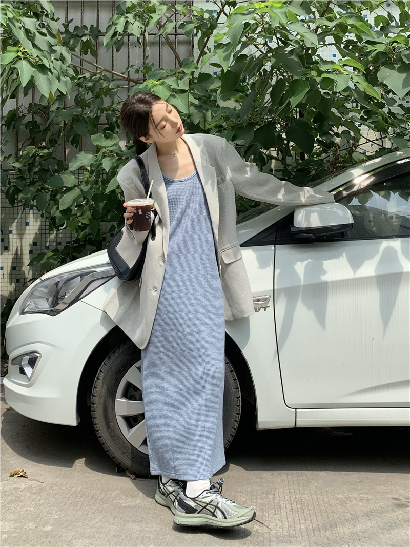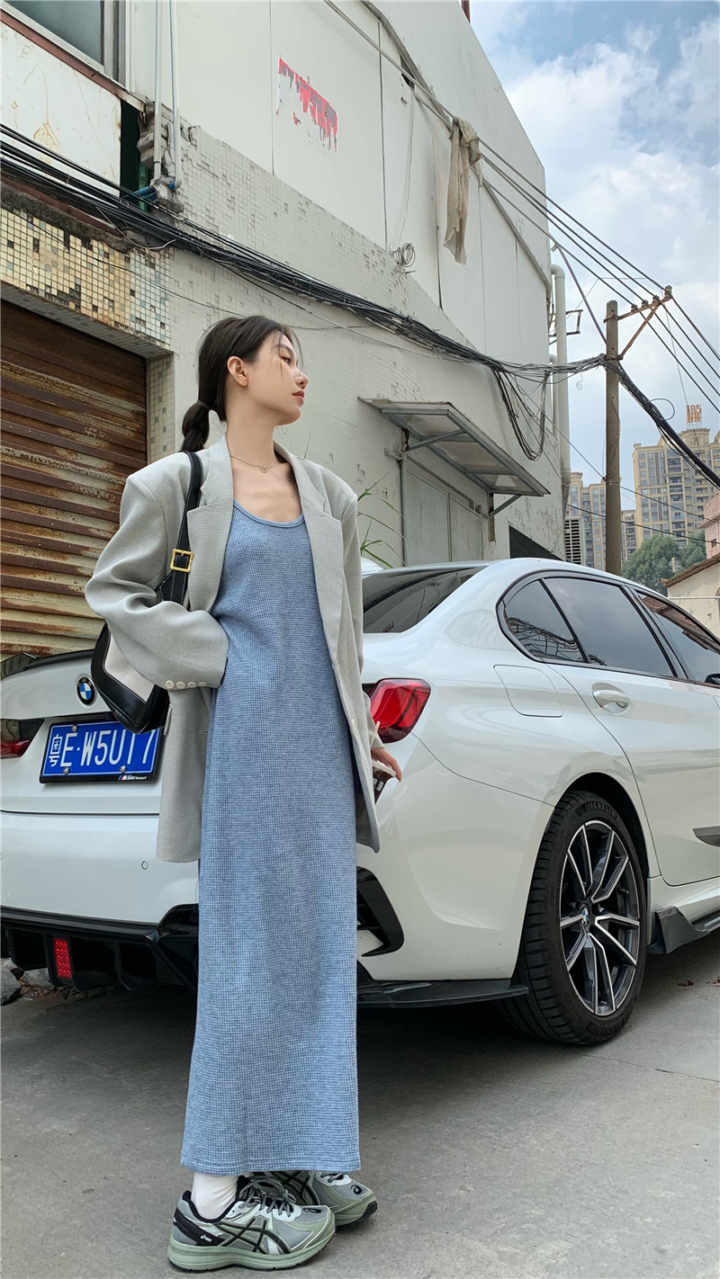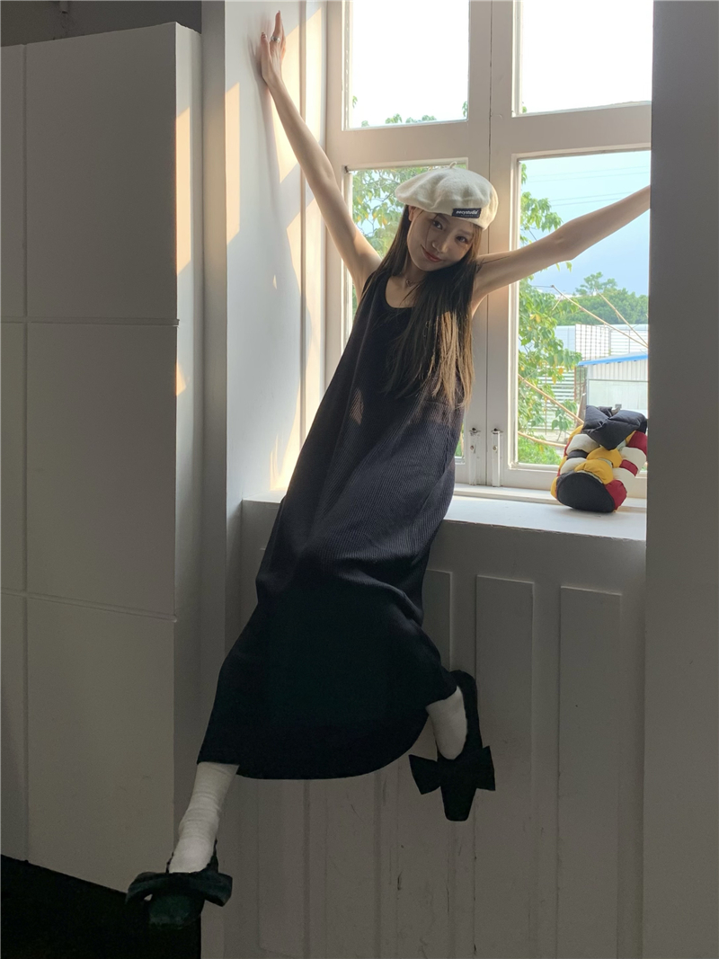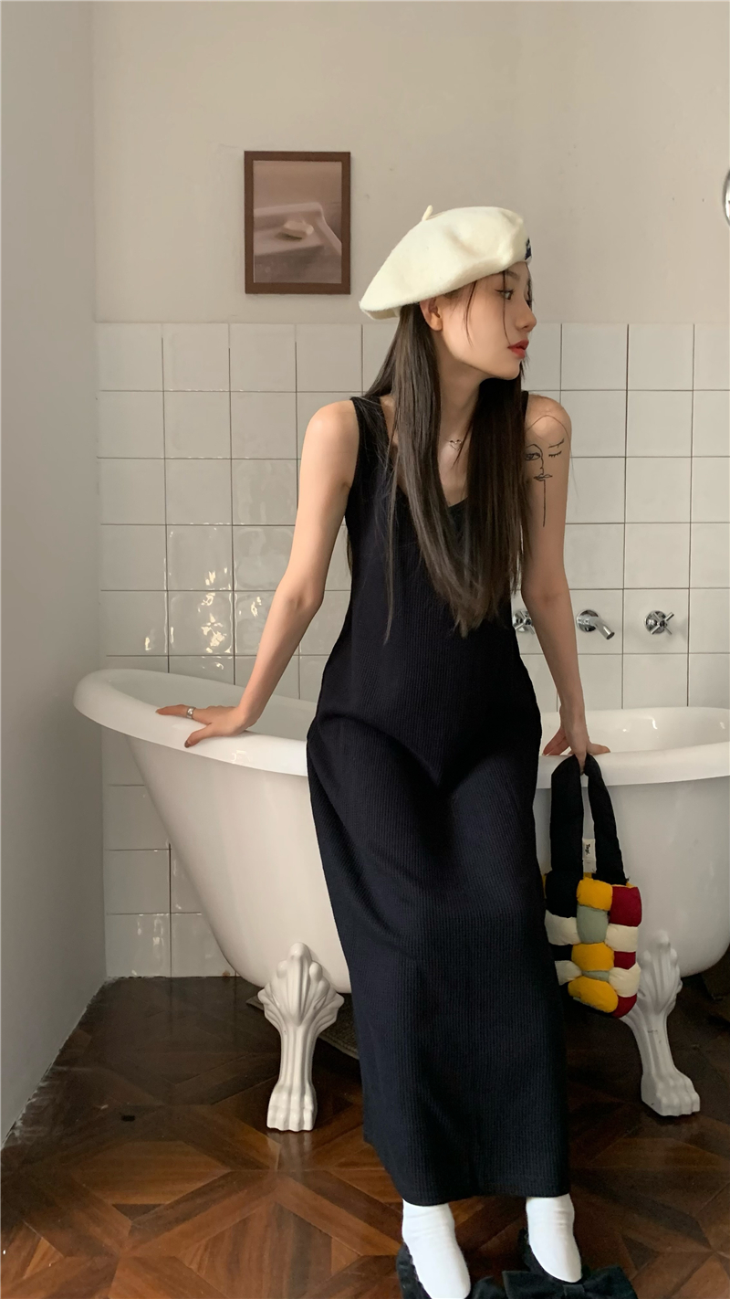PPHOME夜暮甜曲~華夫格無袖背心洋裝顯瘦吊帶裙寬鬆慵懶風長裙