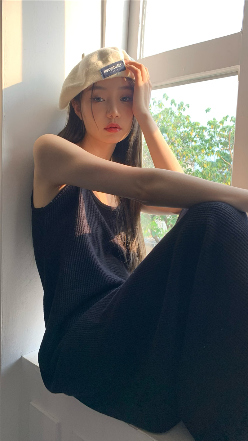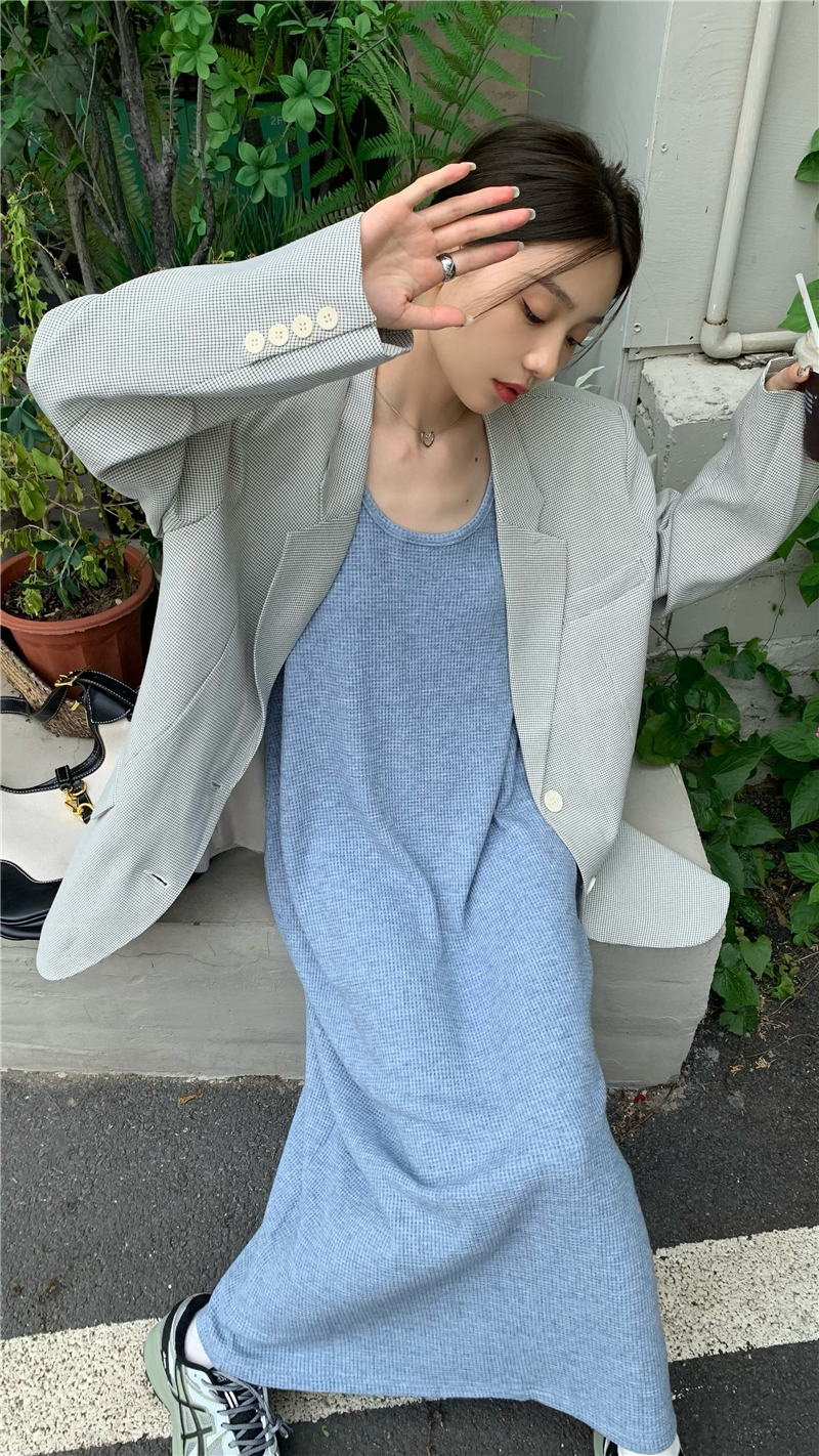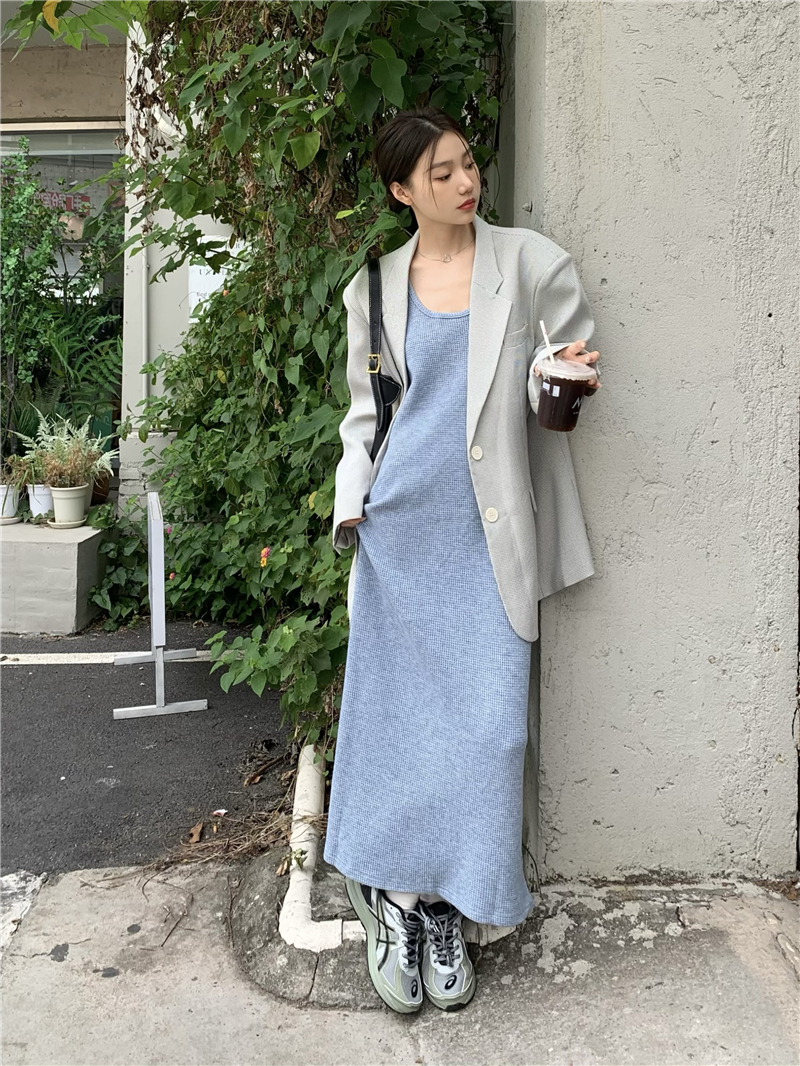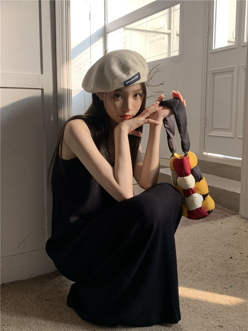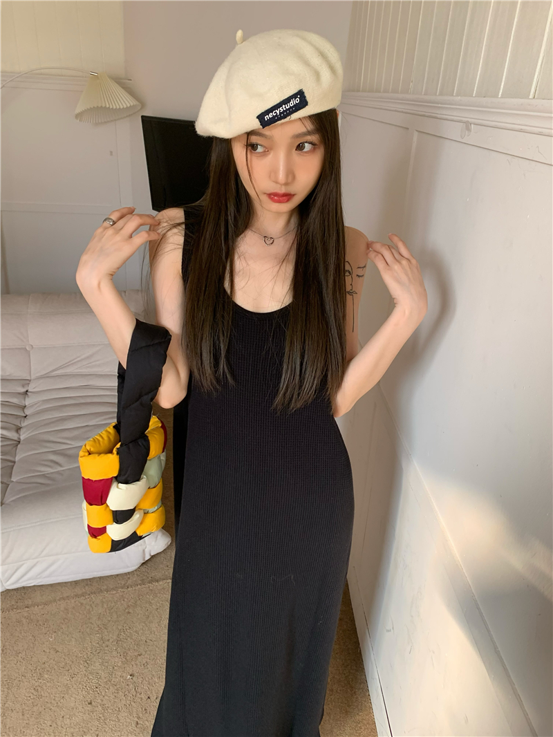 PPHOME夜暮甜曲~華夫格無袖背心洋裝顯瘦吊帶裙寬鬆慵懶風長裙