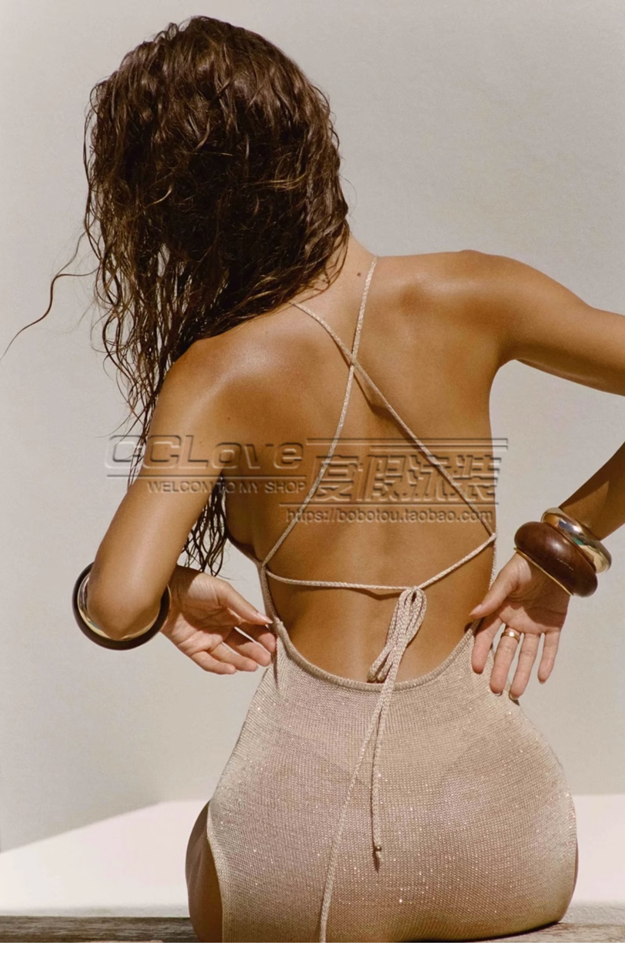 歐美鏤空長版度假比基尼罩衫大露背防曬衣歐美性感泳衣沙灘防曬衣