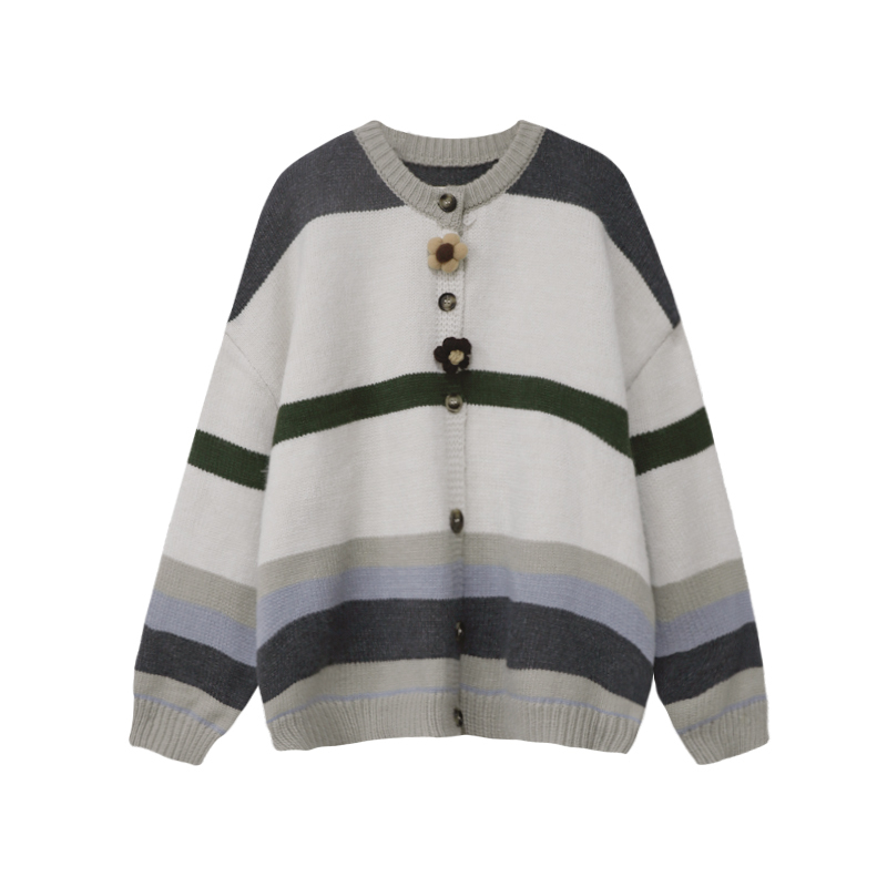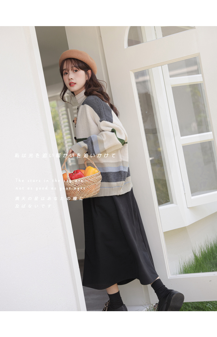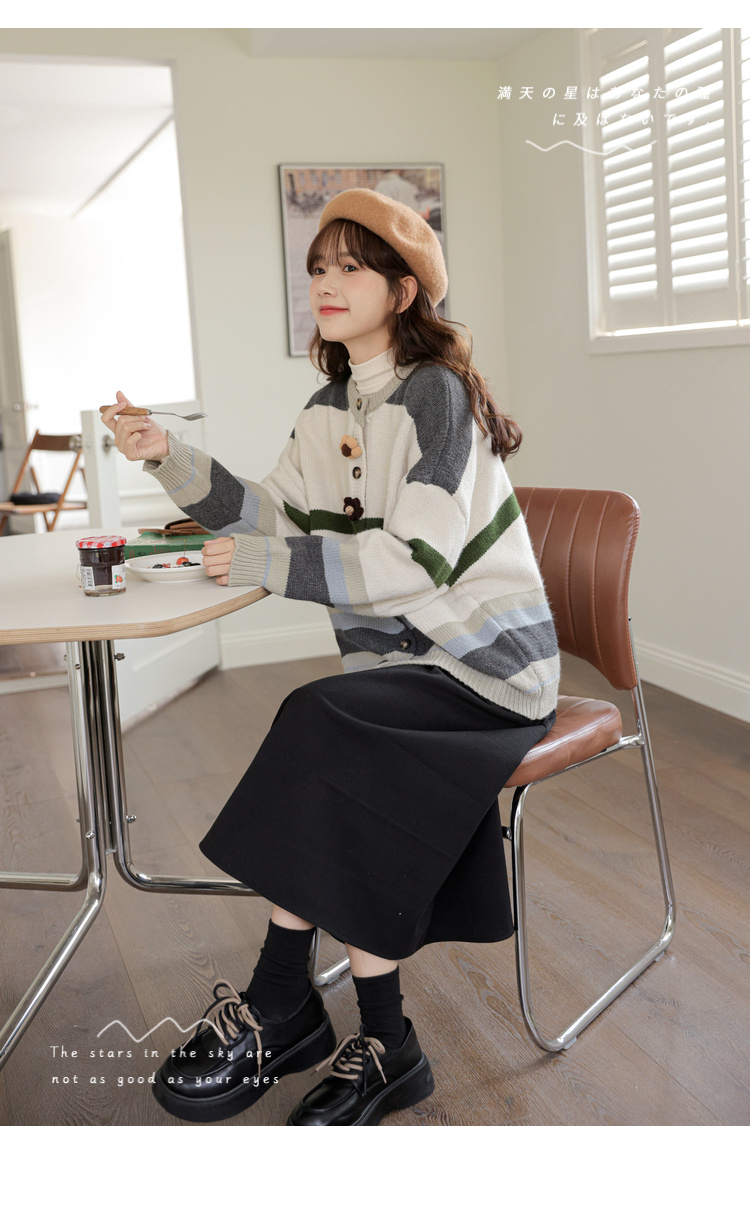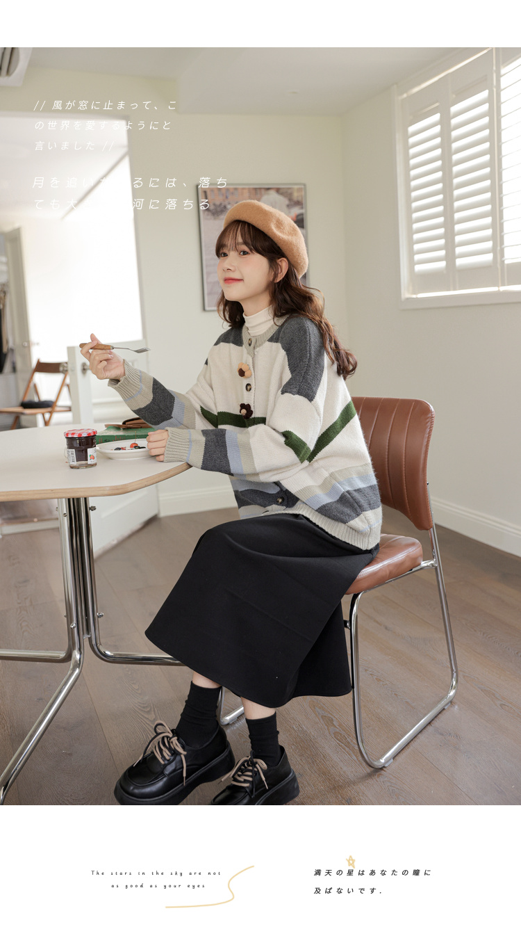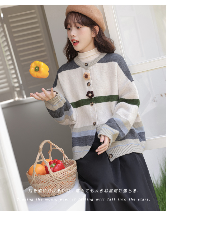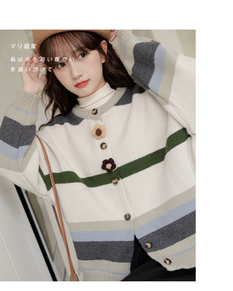 茉語家2023秋季新款日系慵懶復古針織衫高級感條紋長袖毛衣外套女