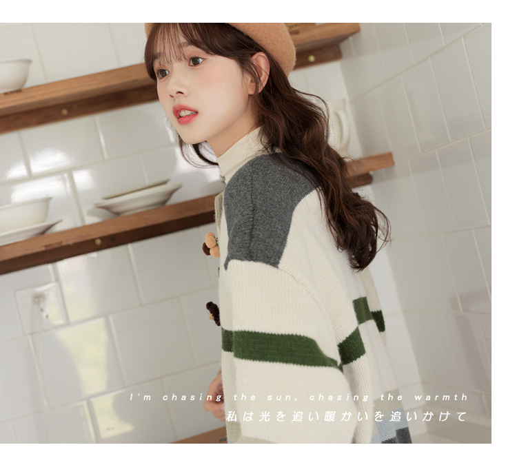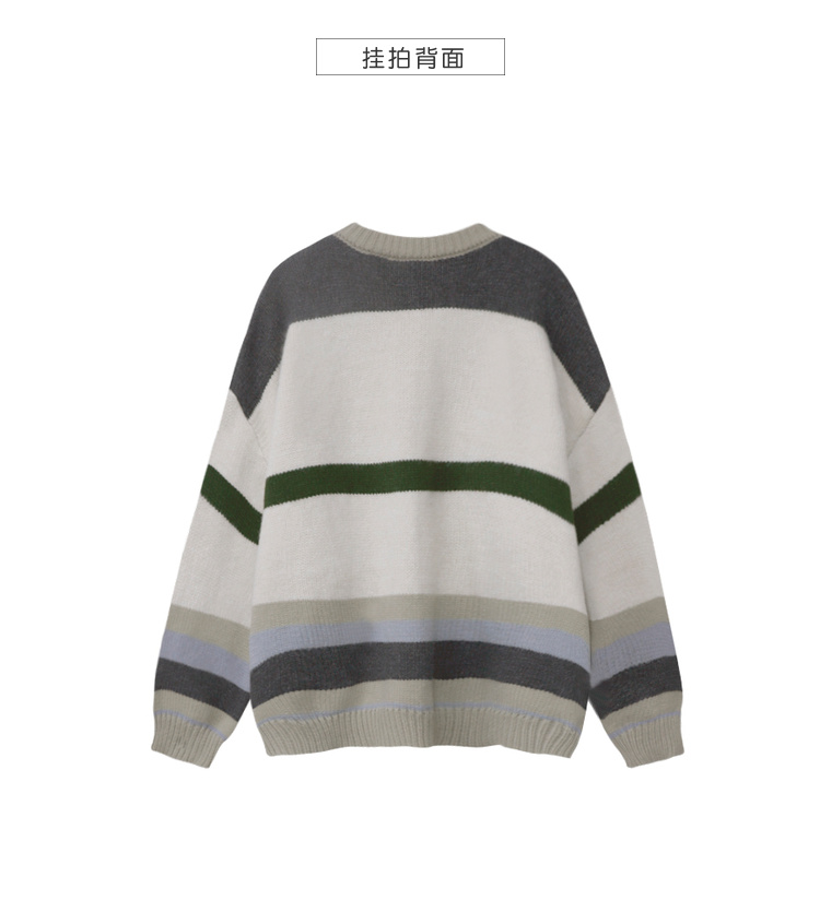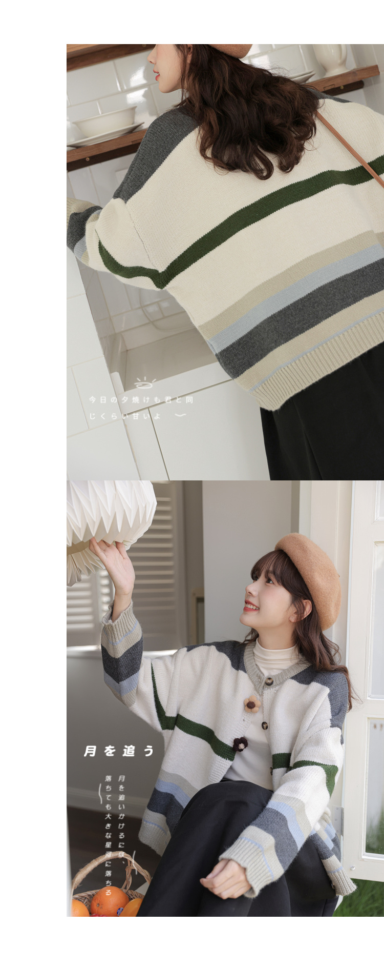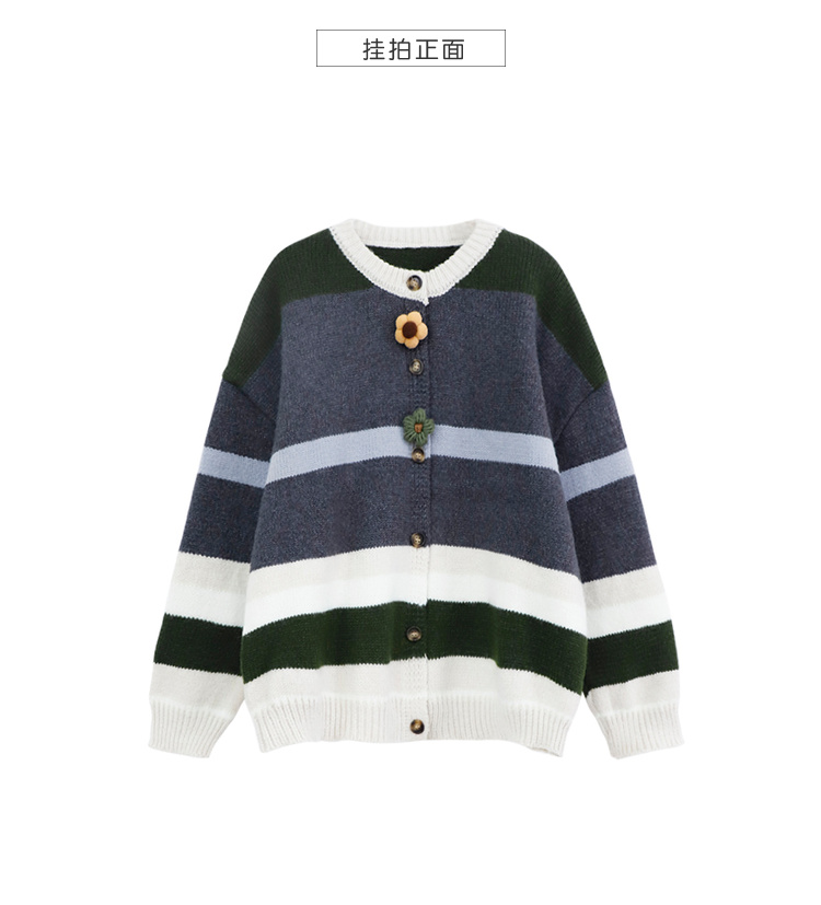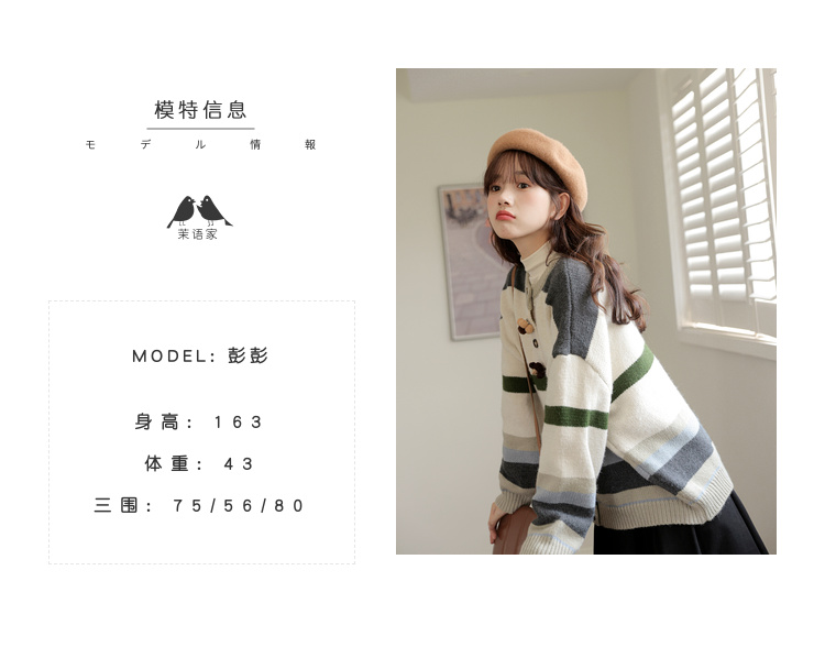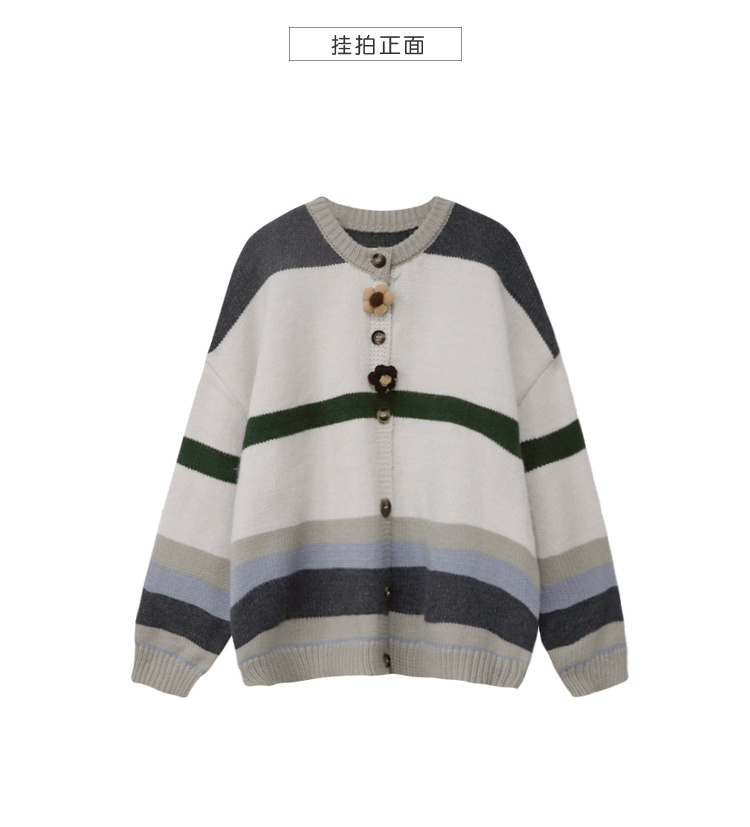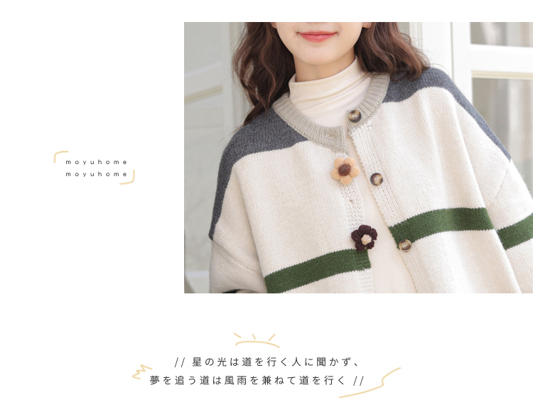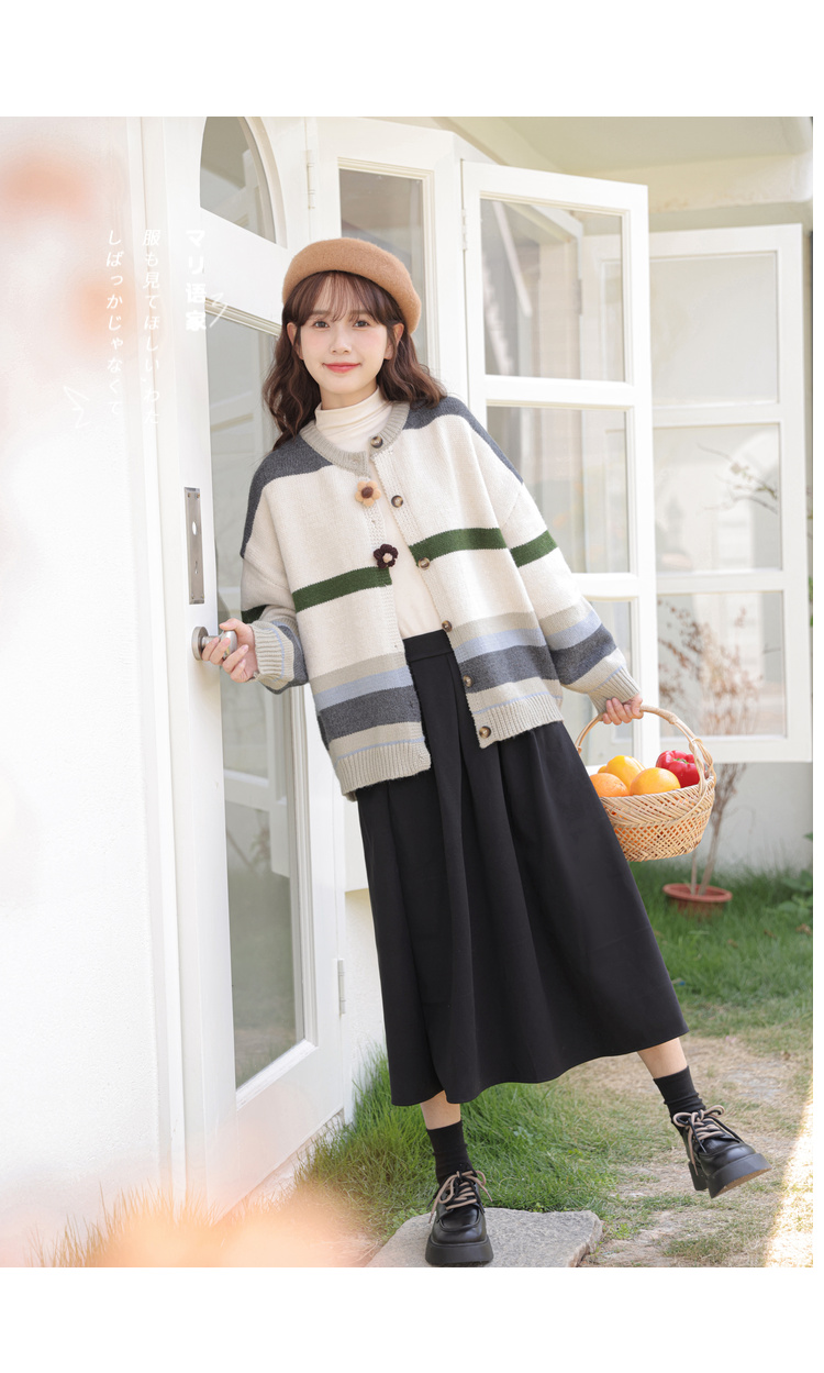 茉語家2023秋季新款日系慵懶復古針織衫高級感條紋長袖毛衣外套女