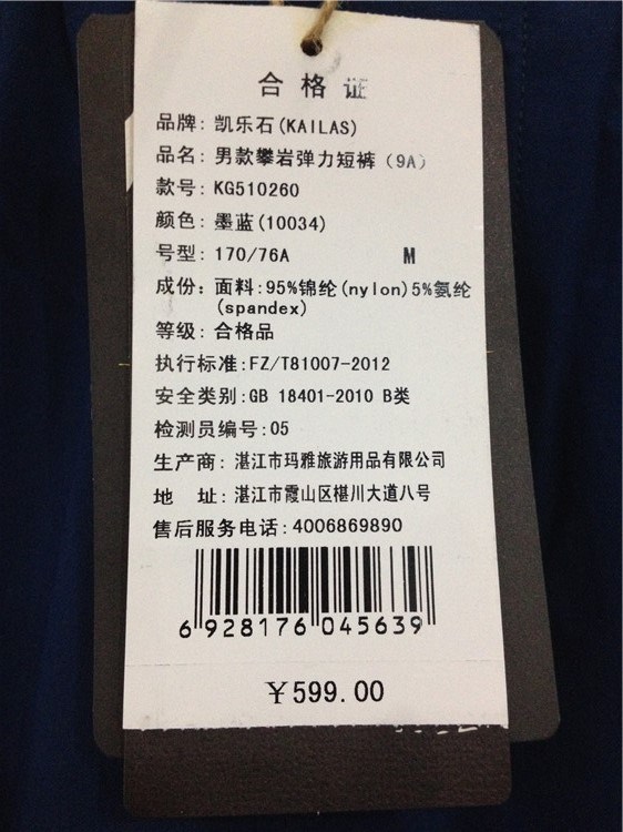 凱樂石戶外男女攀巖彈力耐磨旅行抱石攀爬短褲KG510260