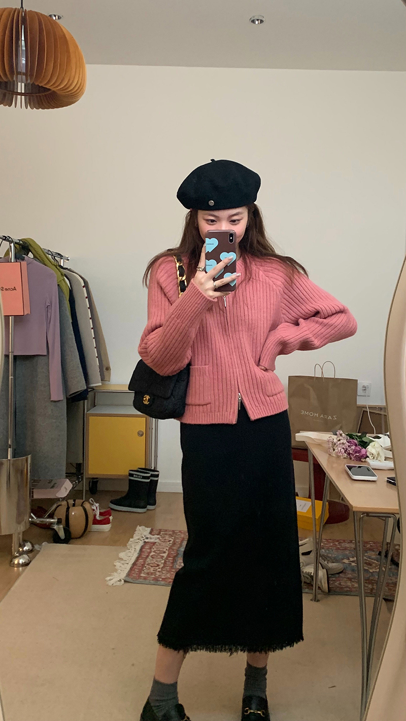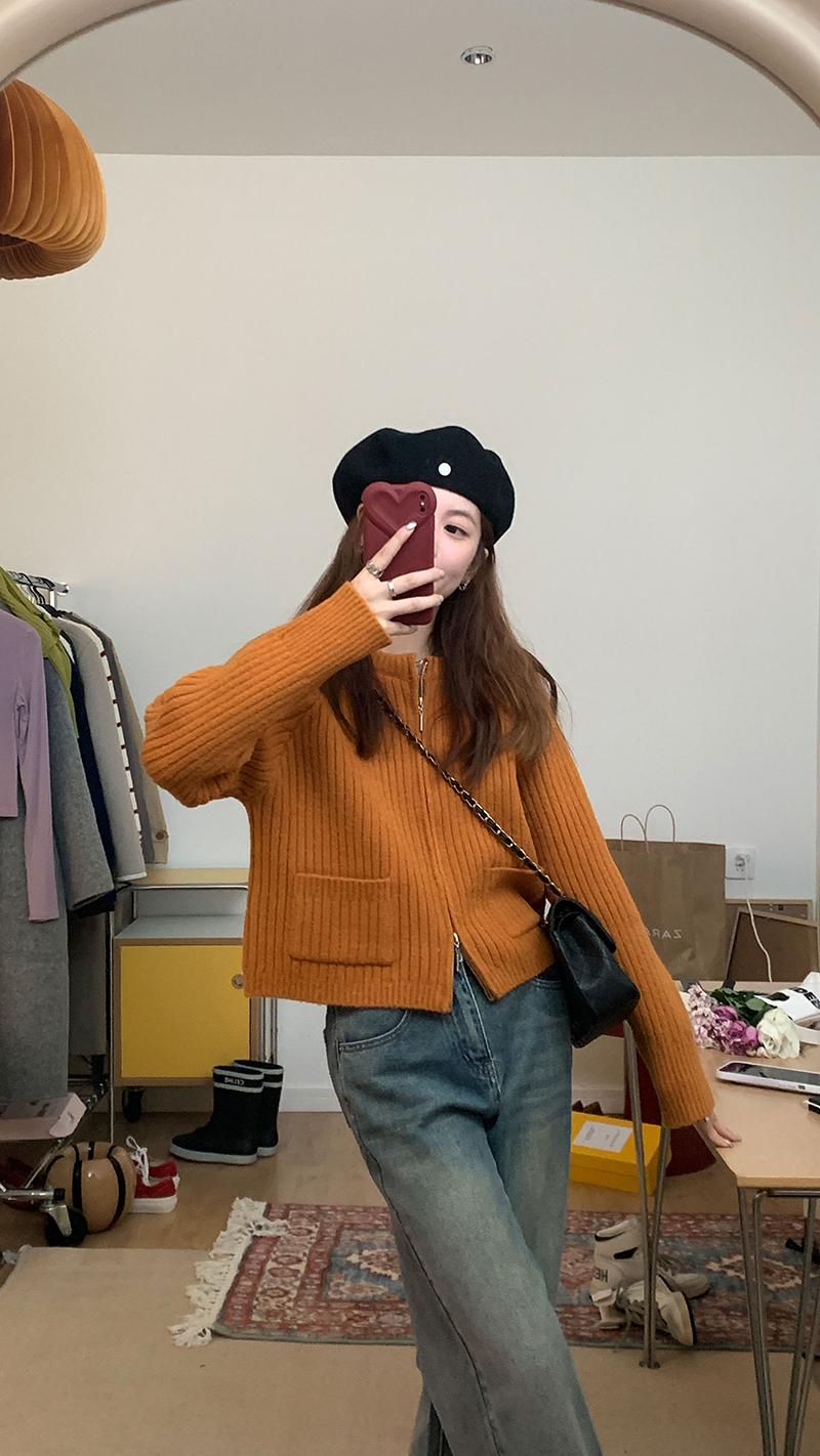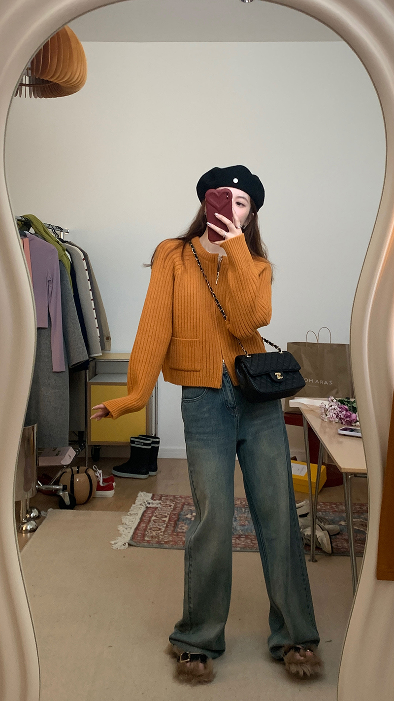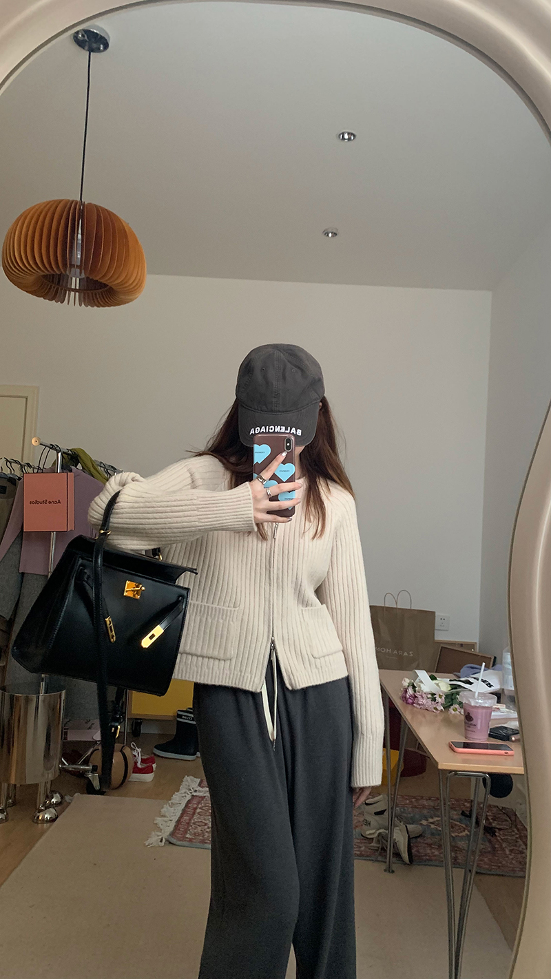 很慵懒感的一款拉链毛衣~很难不心动!