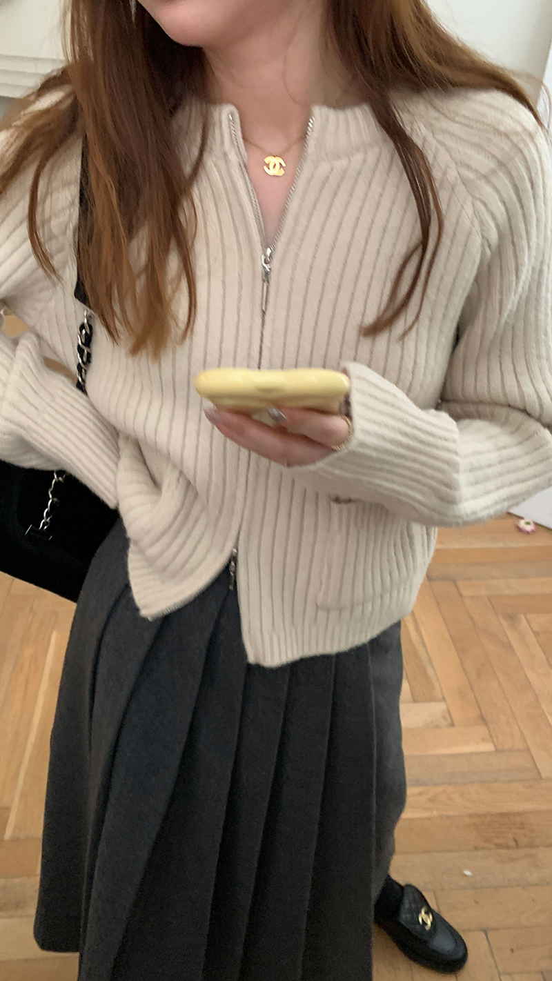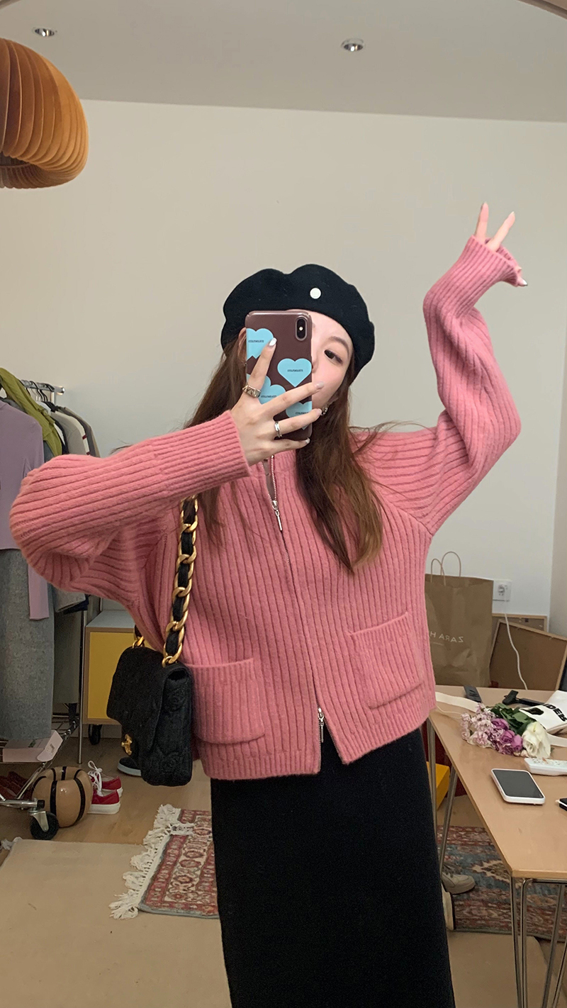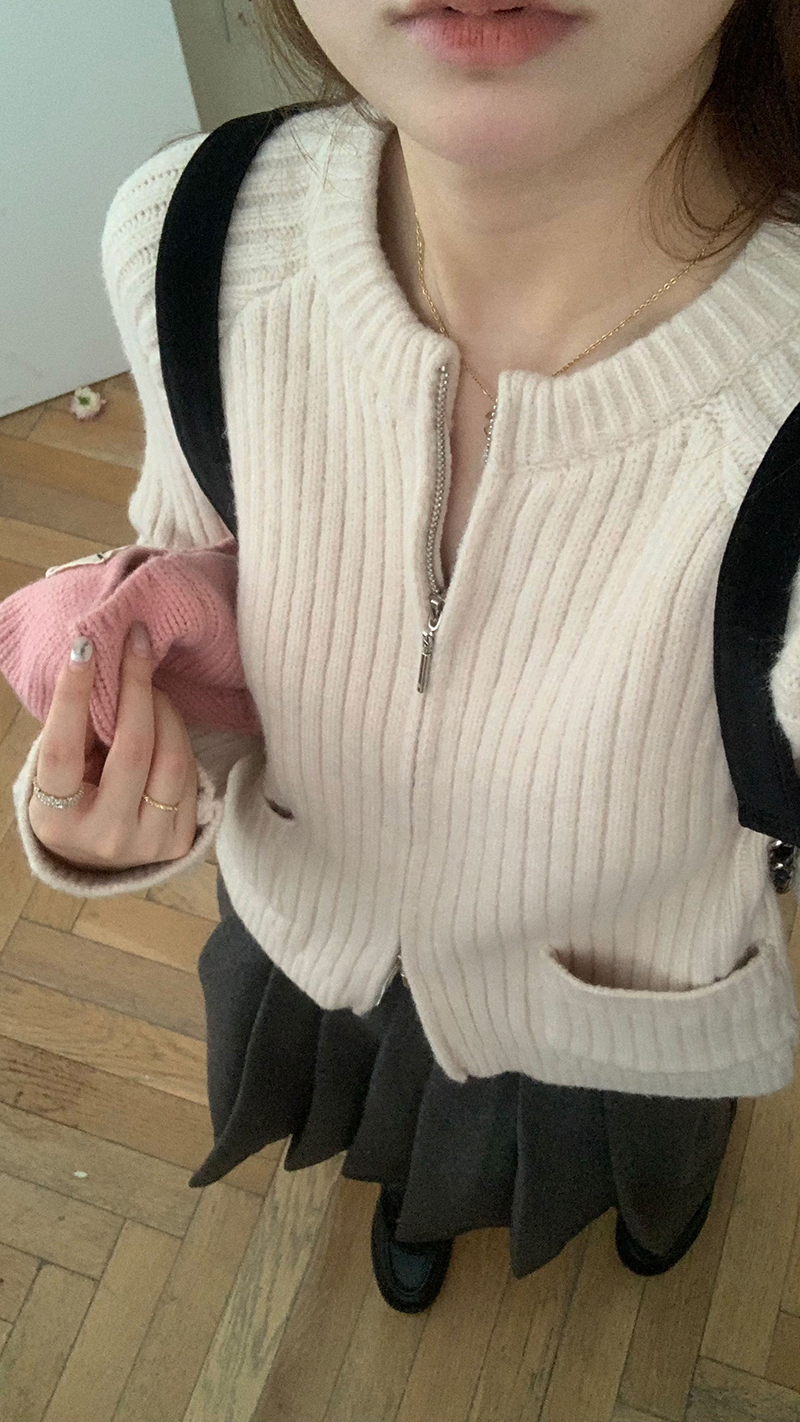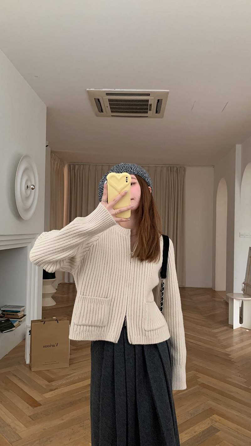 【現貨】im向 韓系雙拉鍊坑條加厚毛衣外套女寬鬆針織衫短款上衣