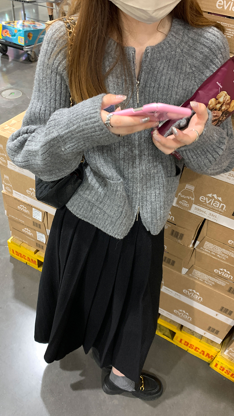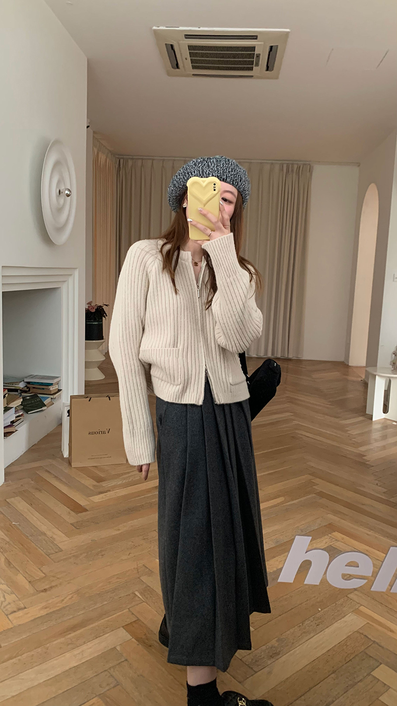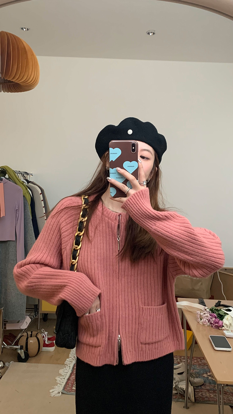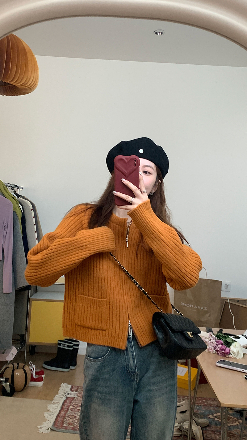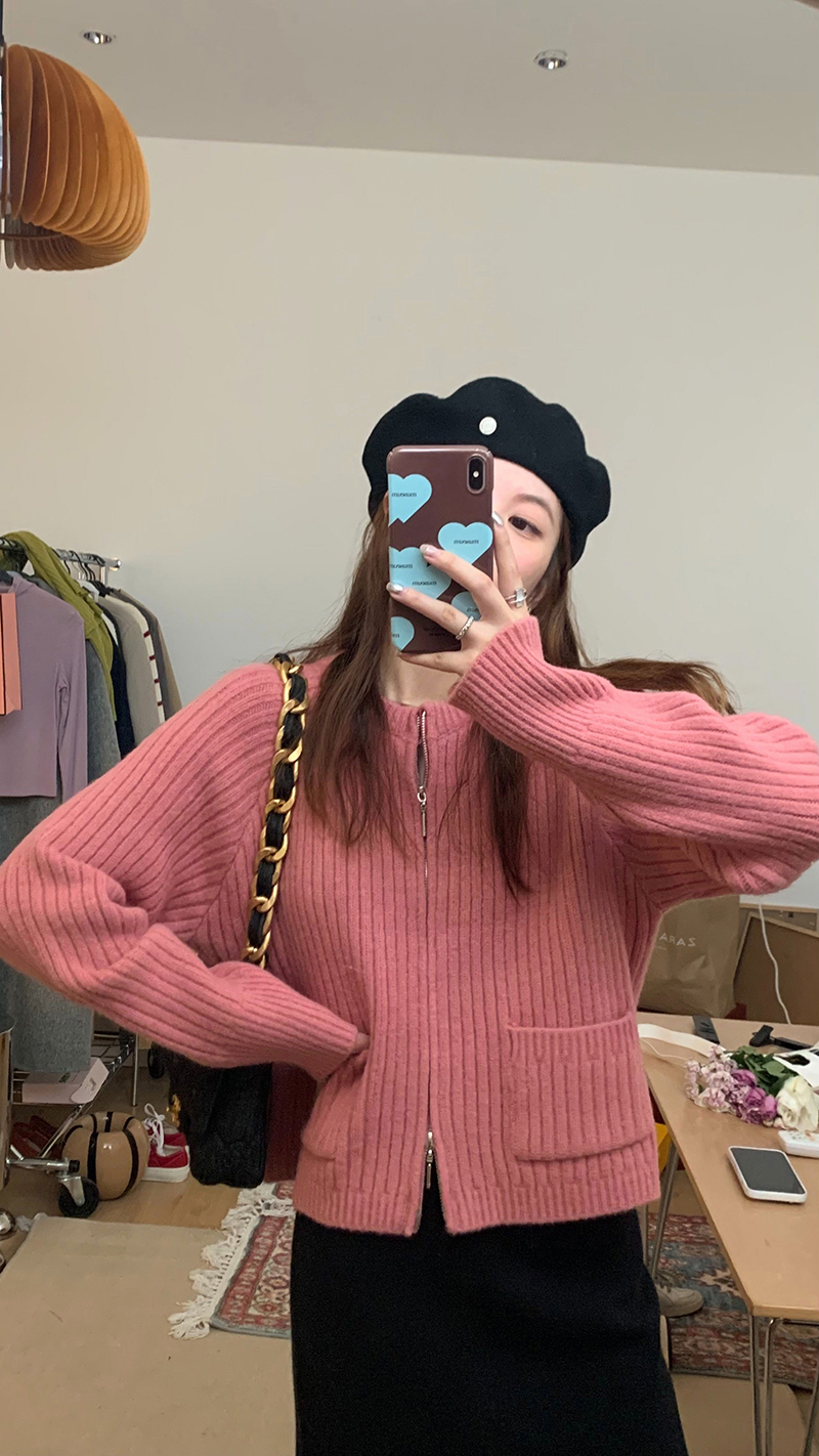 【現貨】im向 韓系雙拉鍊坑條加厚毛衣外套女寬鬆針織衫短款上衣