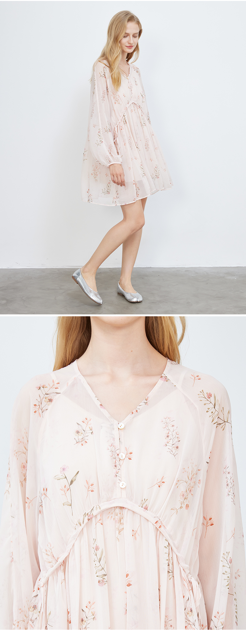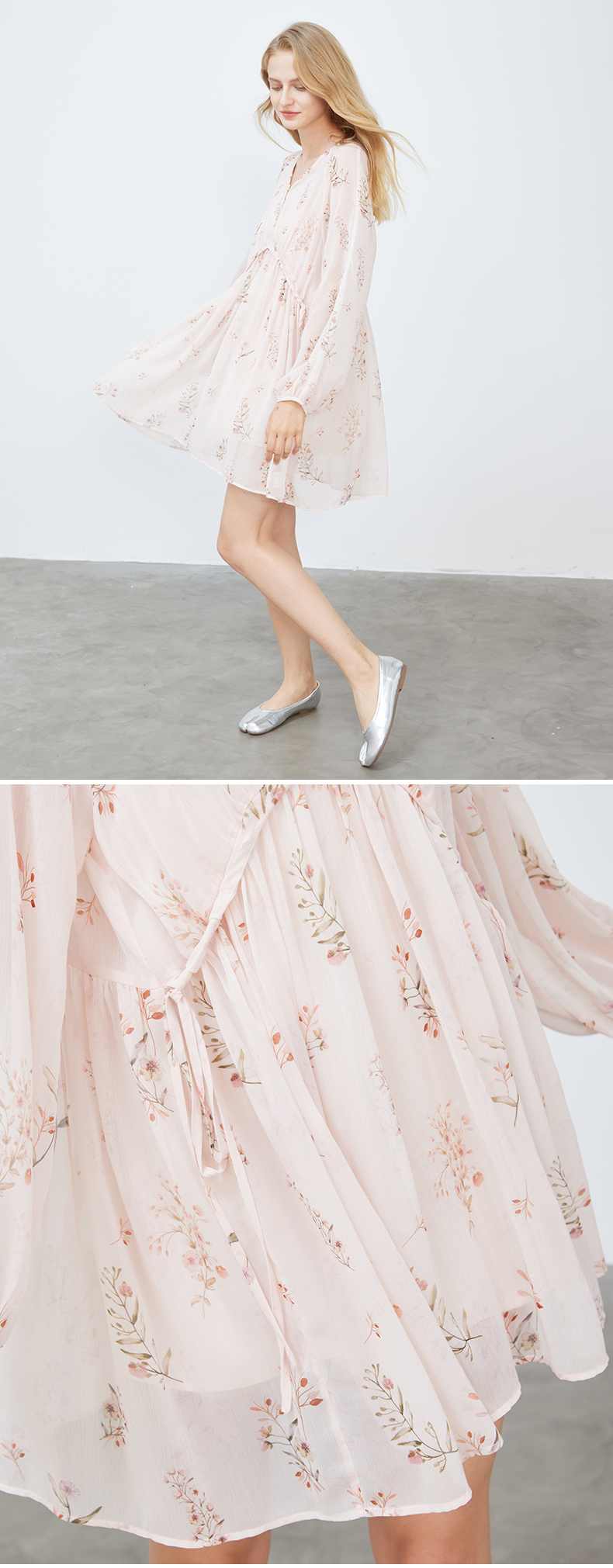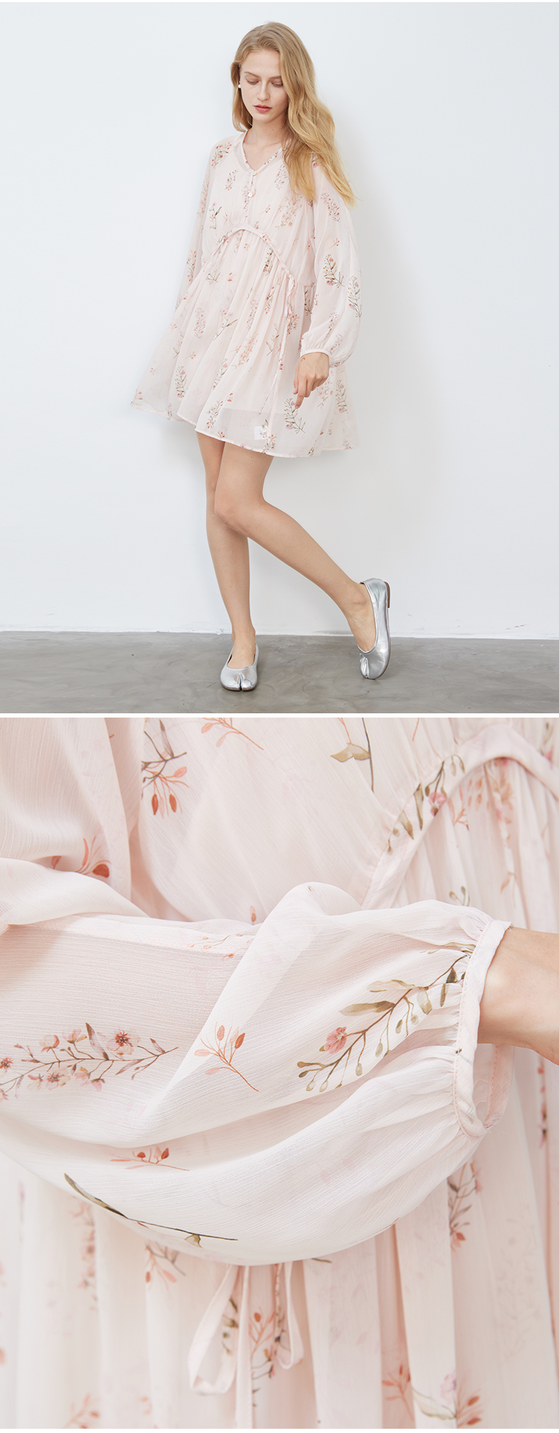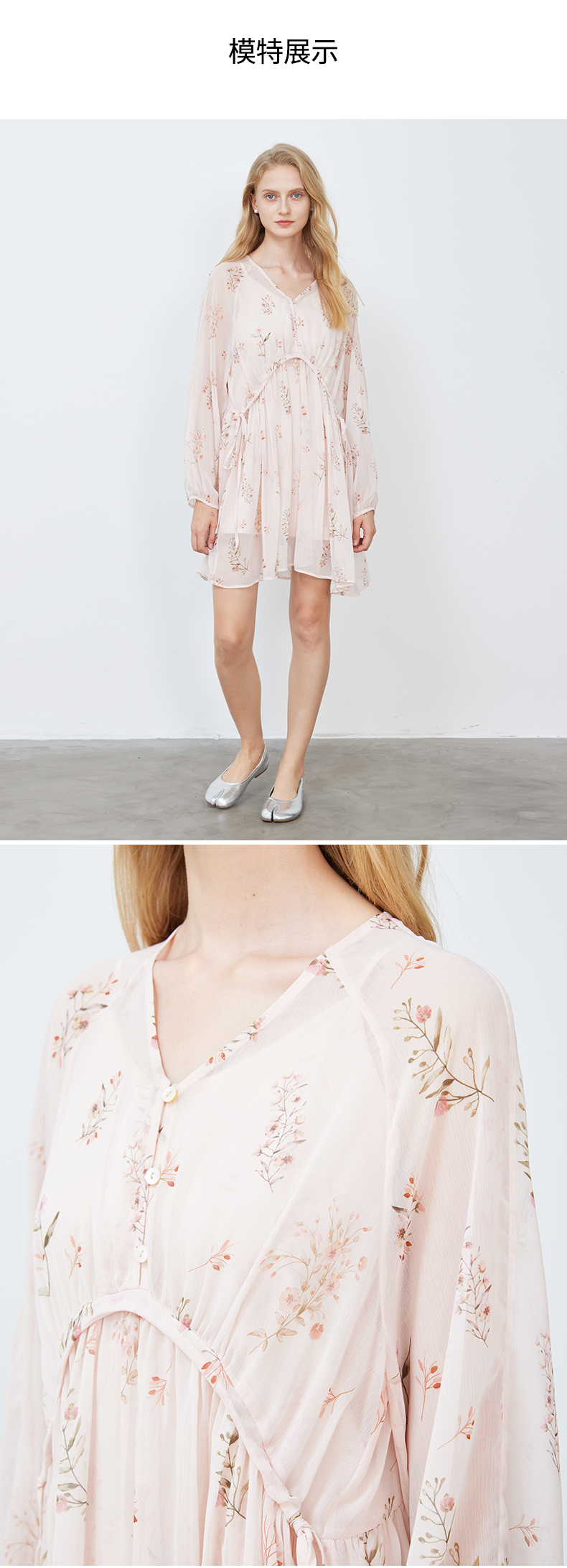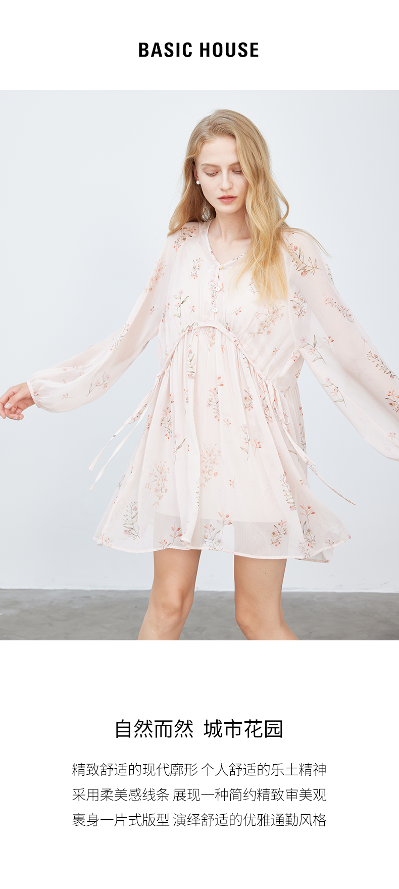 Basic House/百家好溫柔風碎花洋裝女2023早秋新款仙氣雪紡裙