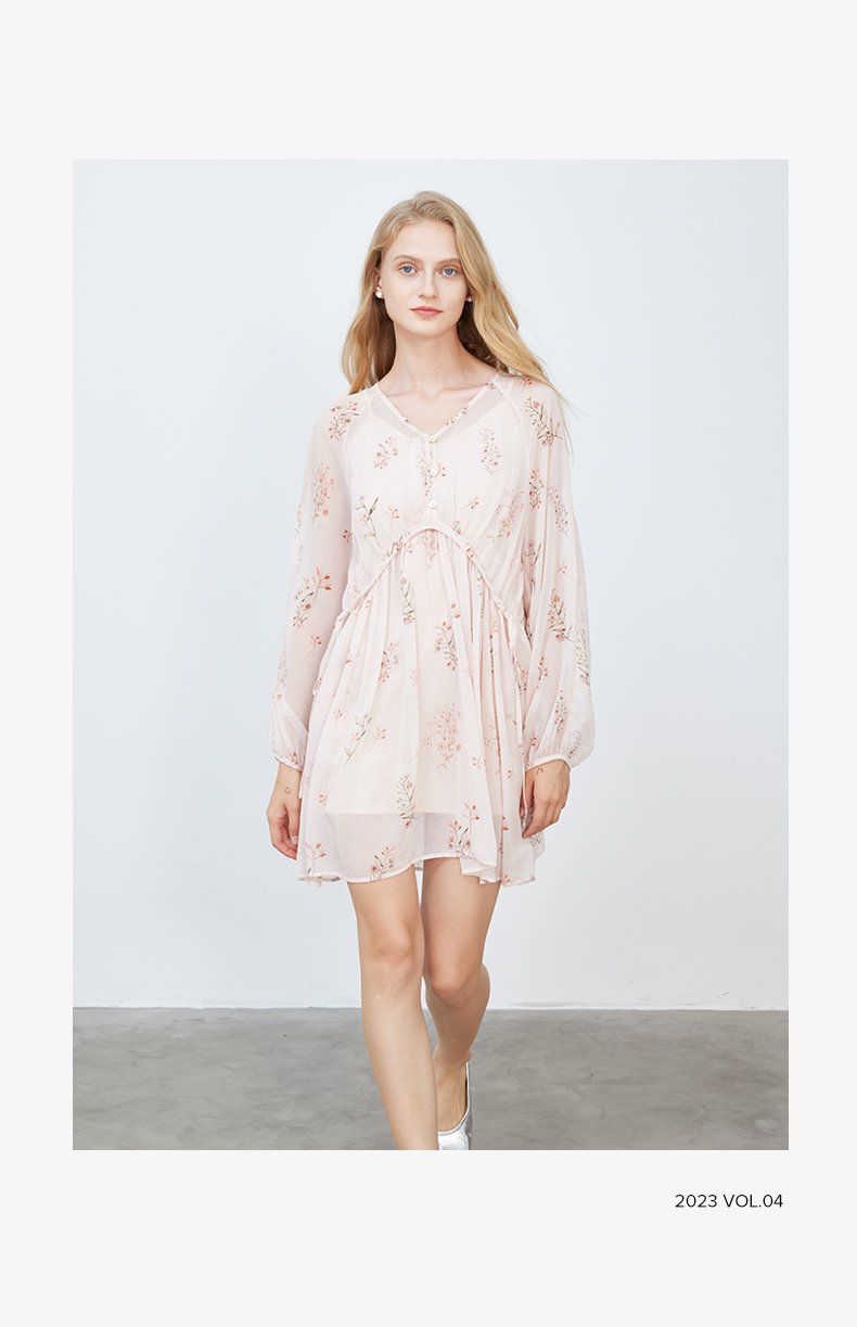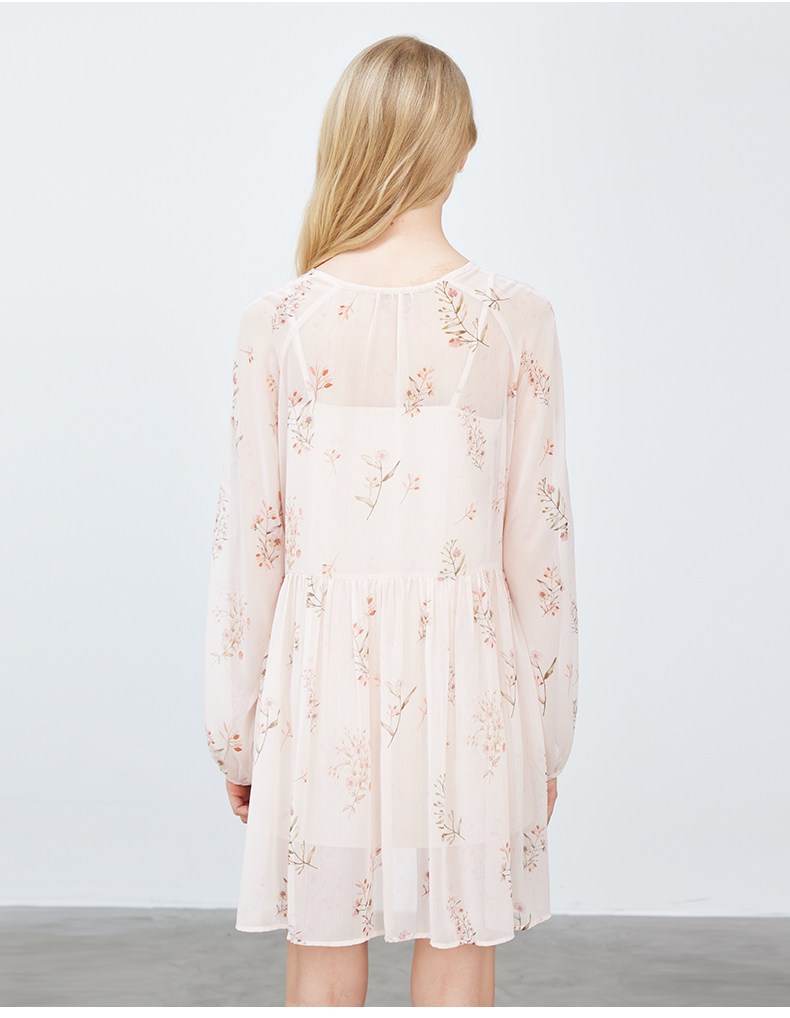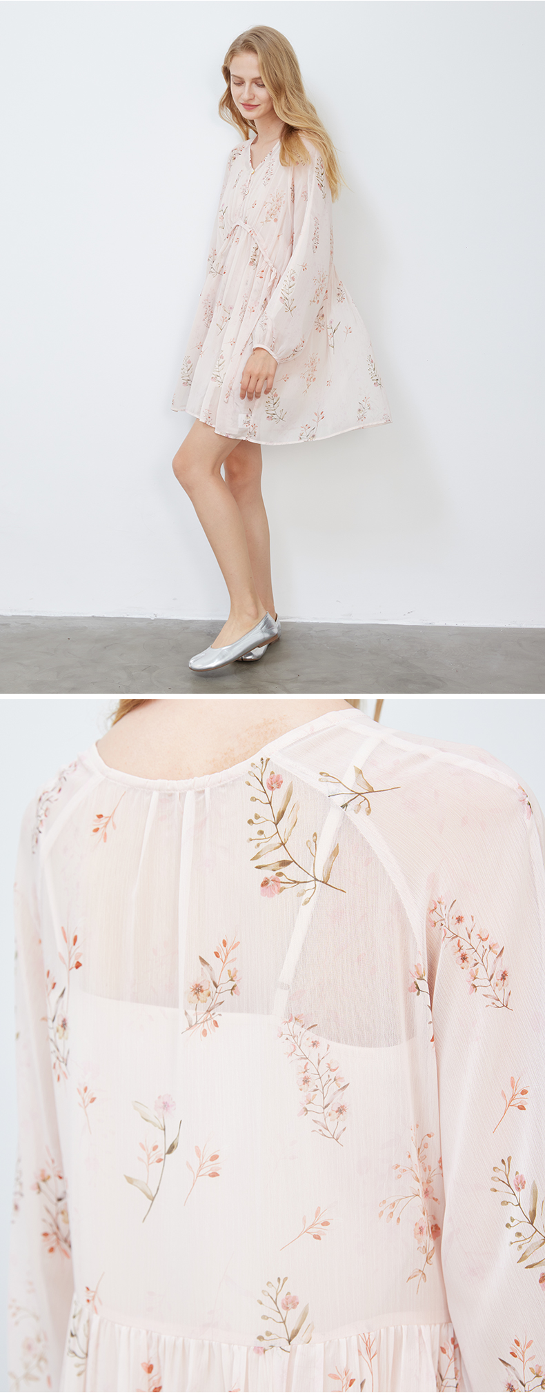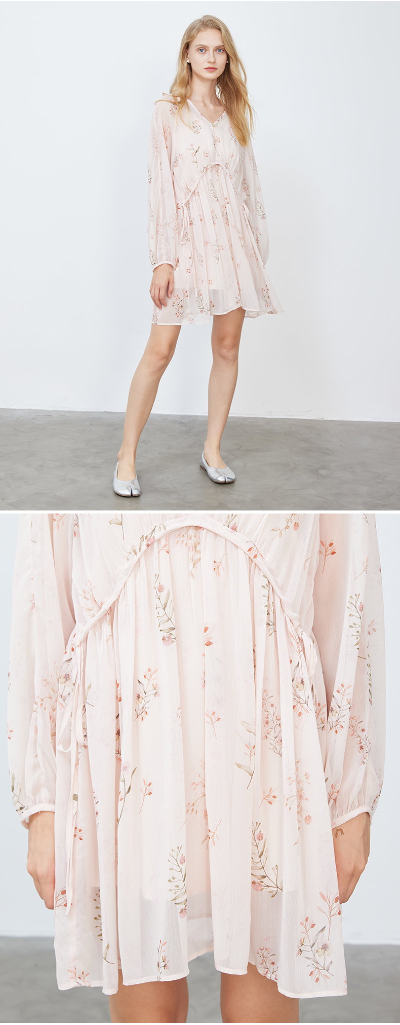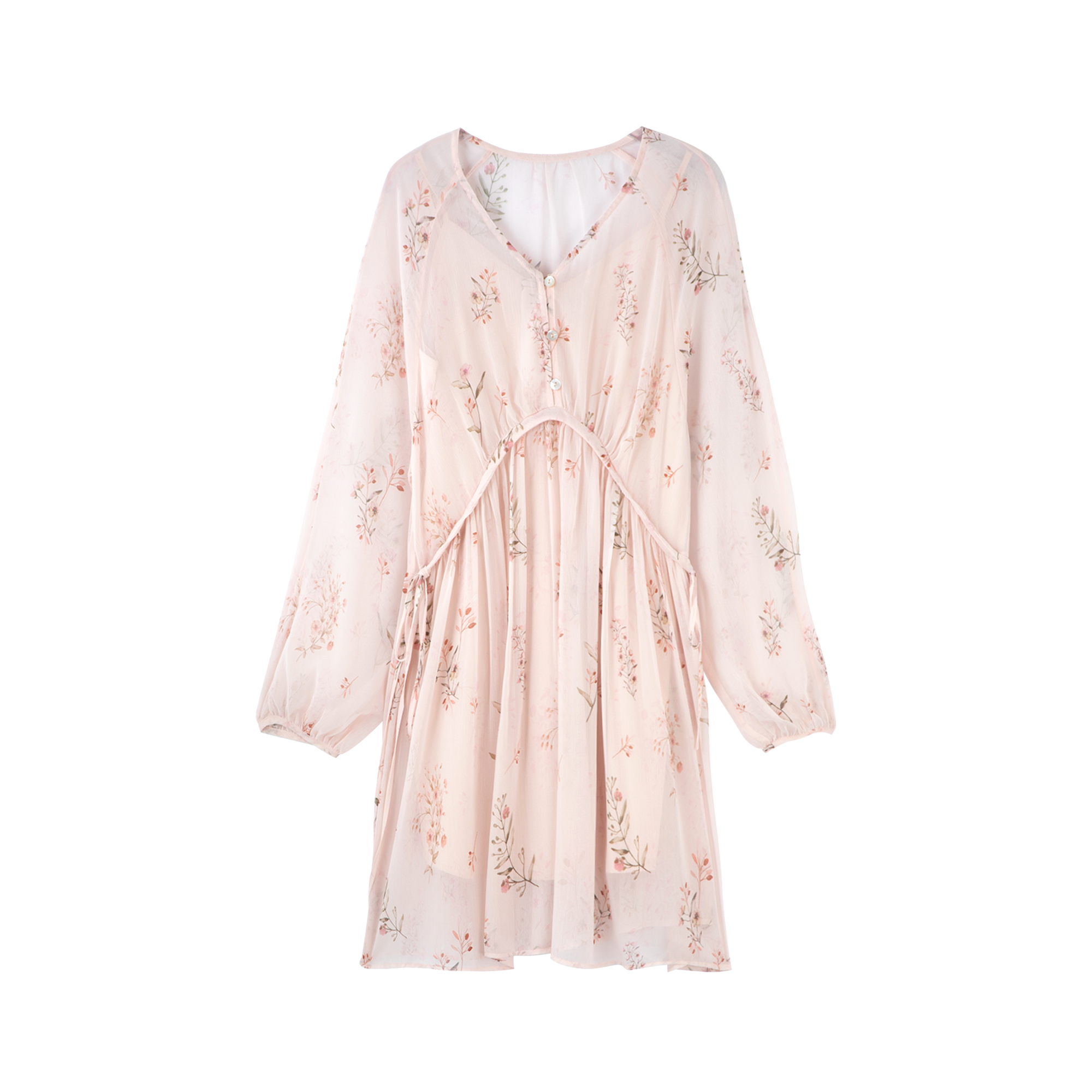 Basic House/百家好溫柔風碎花洋裝女2023早秋新款仙氣雪紡裙