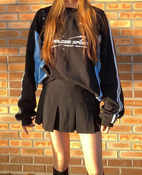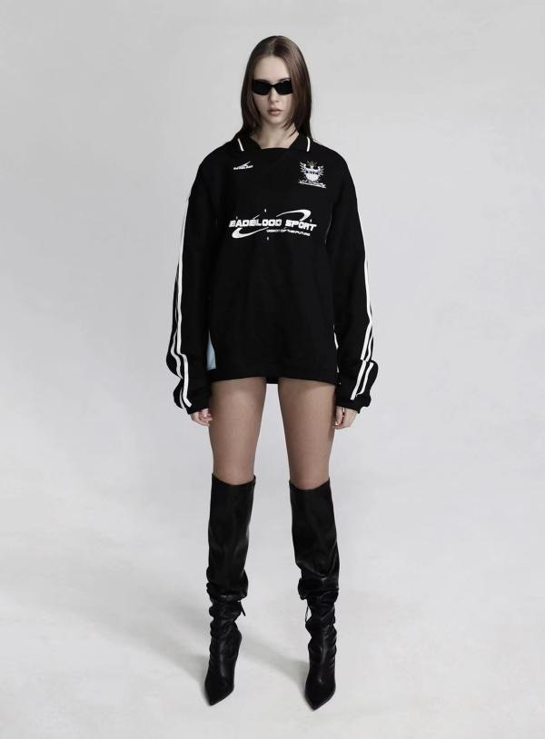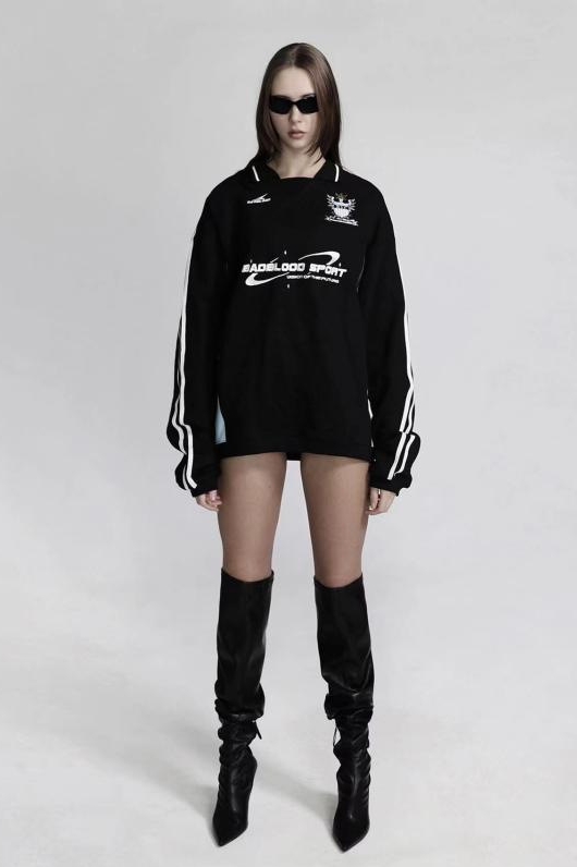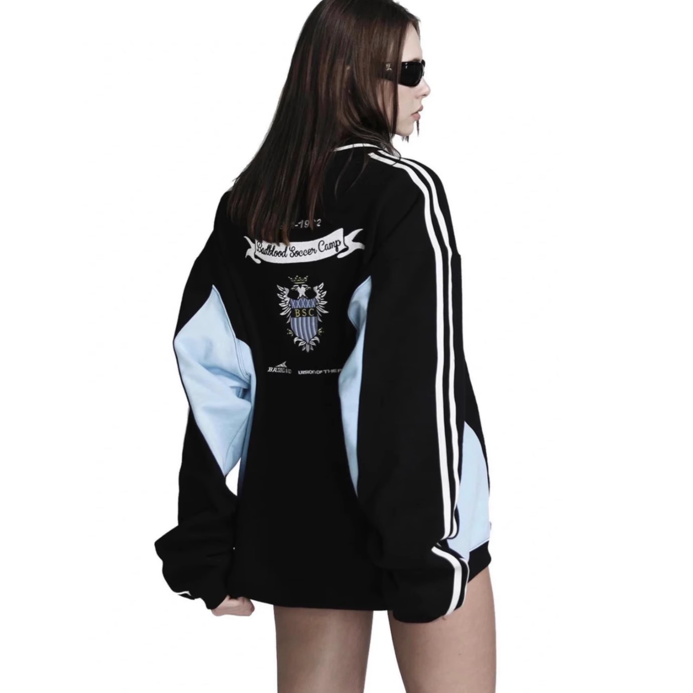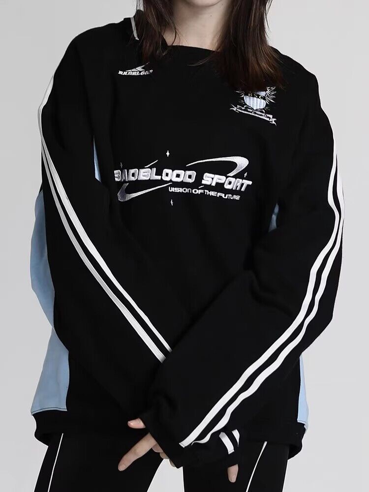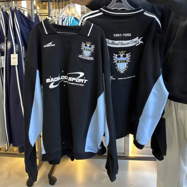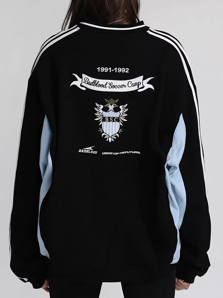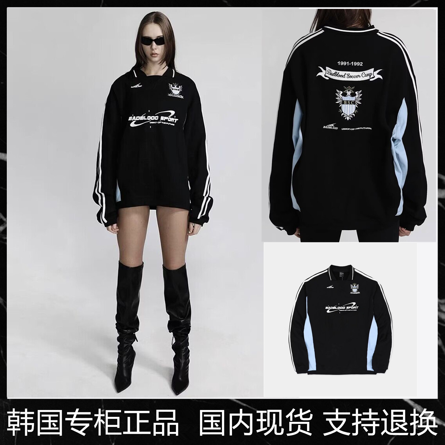 韓國潮牌badblood衛衣女翻領寬鬆上衣字母刺繡撞色運動美式女外套