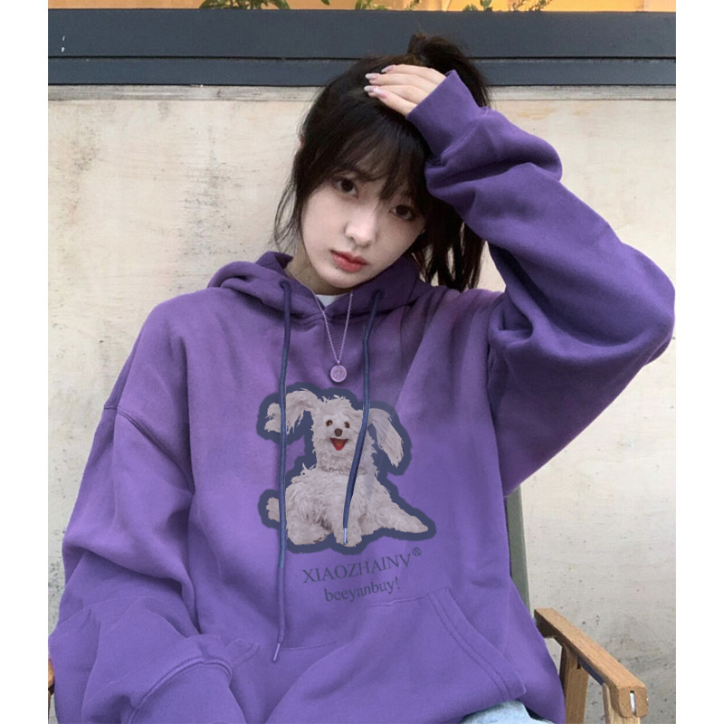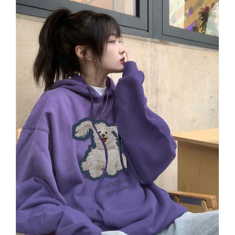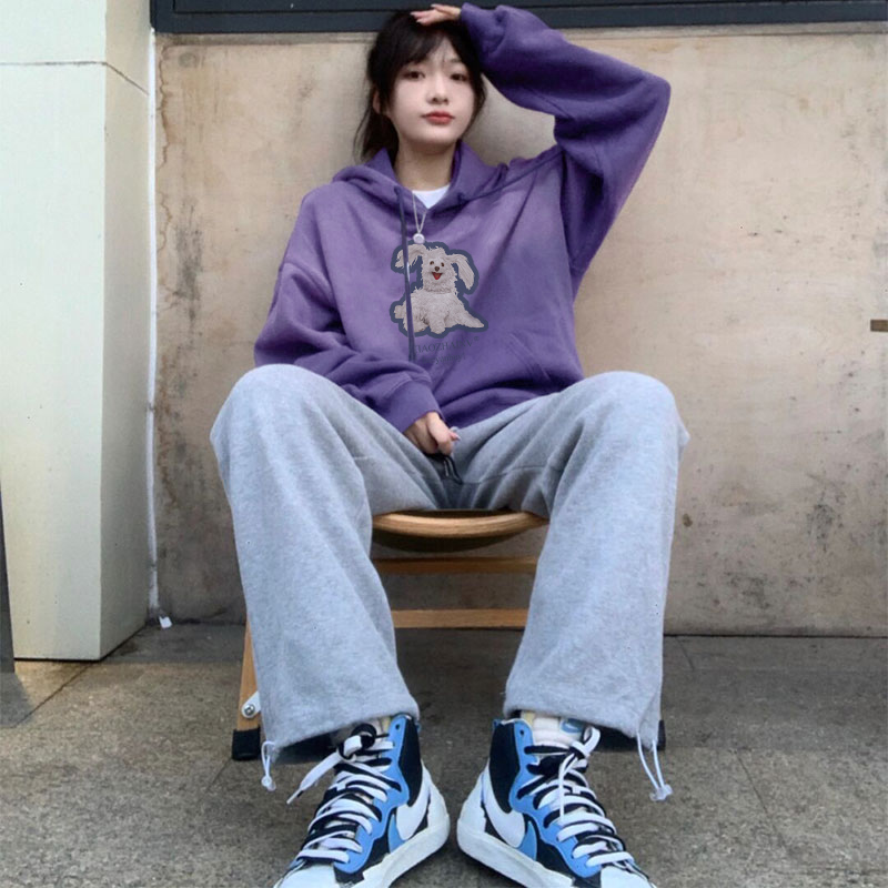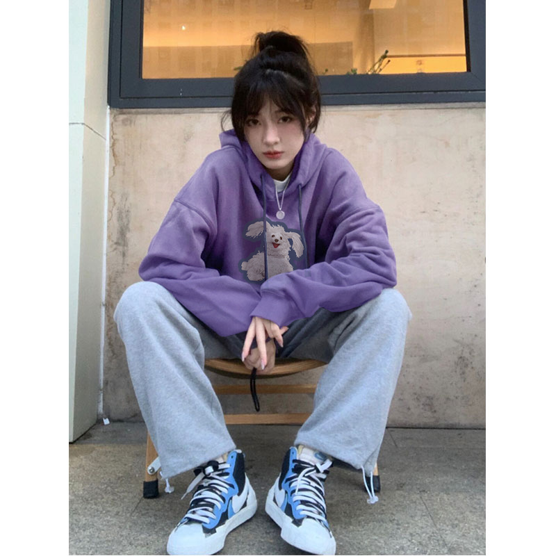 古著vintage奶紫色衛衣加絨連帽上衣春秋美式減齡外套設計感衣服