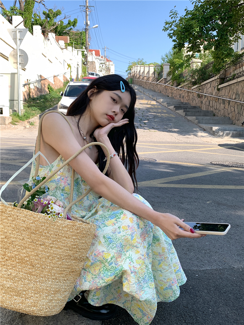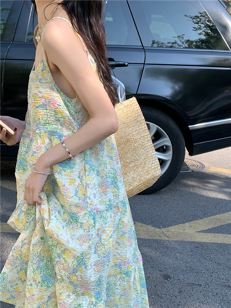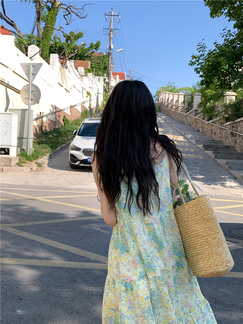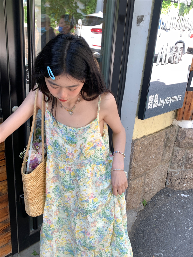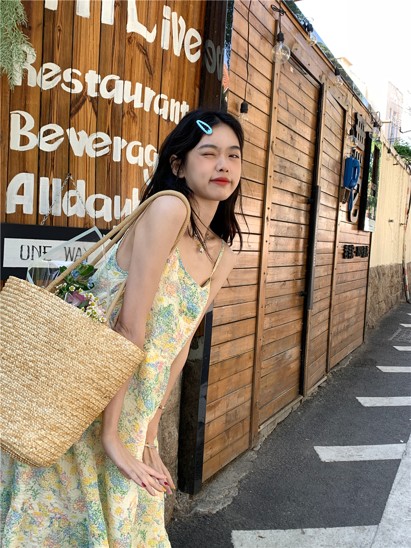 PPHOME純甜公主~法式碎花無袖吊帶裙洋裝女甜美小清新中長裙子