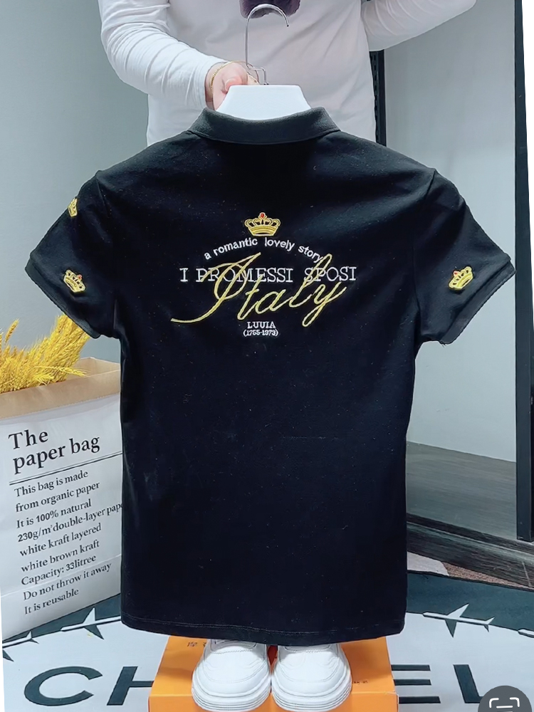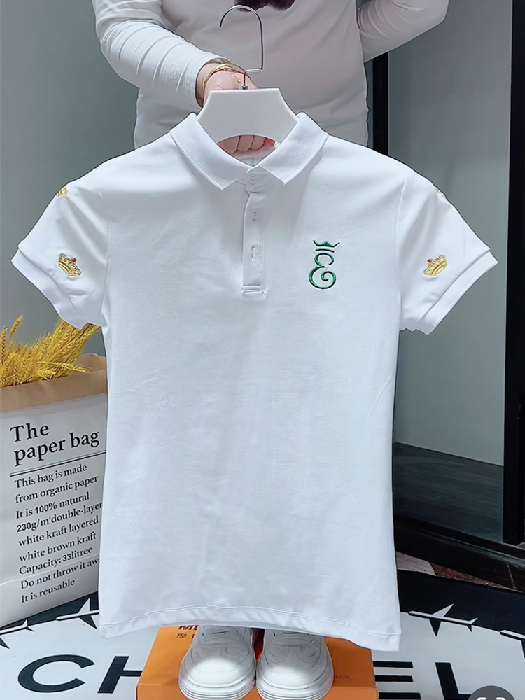 夏季POLO衫男短袖刺繡皇冠字母潮牌男士翻領T恤韓版社會小夥半袖