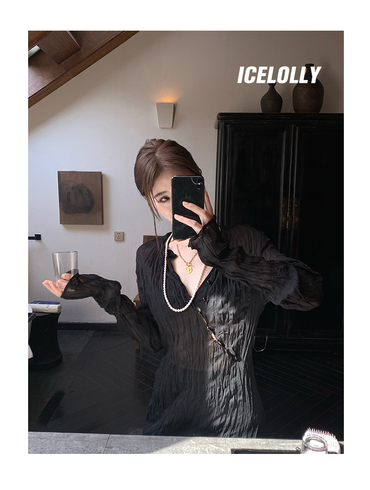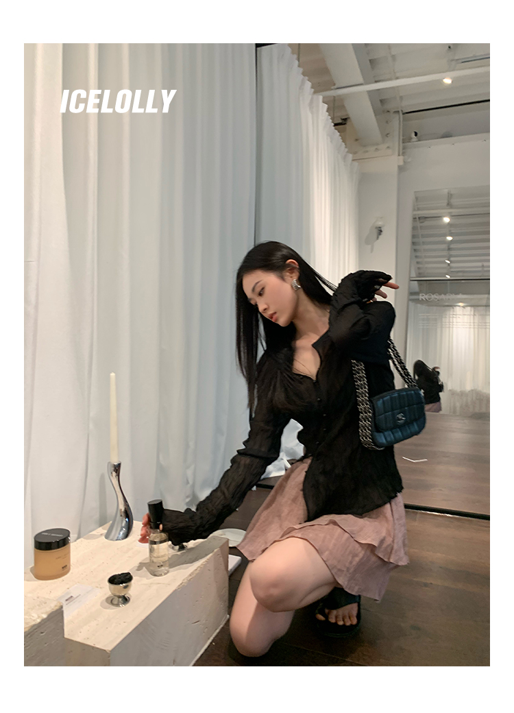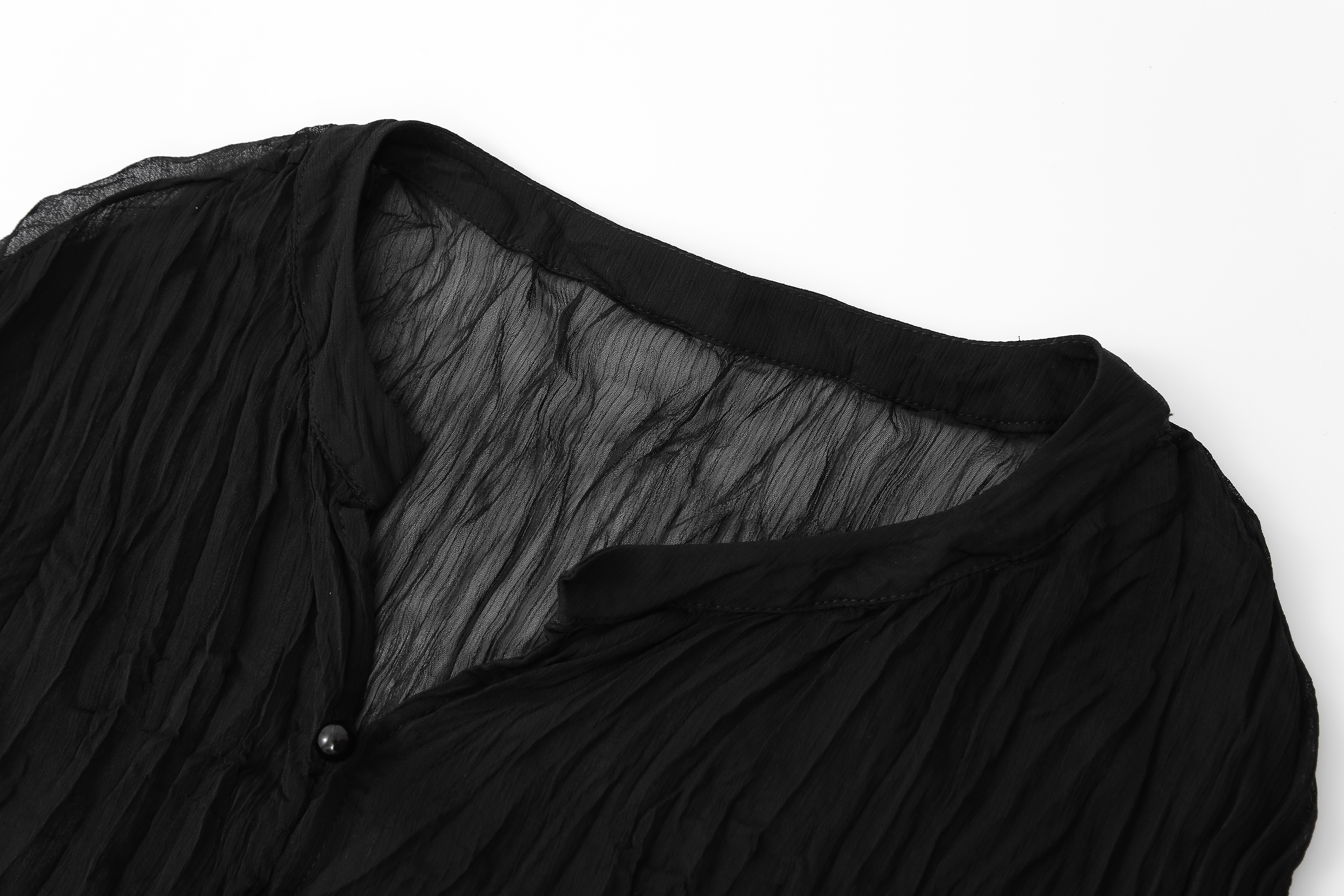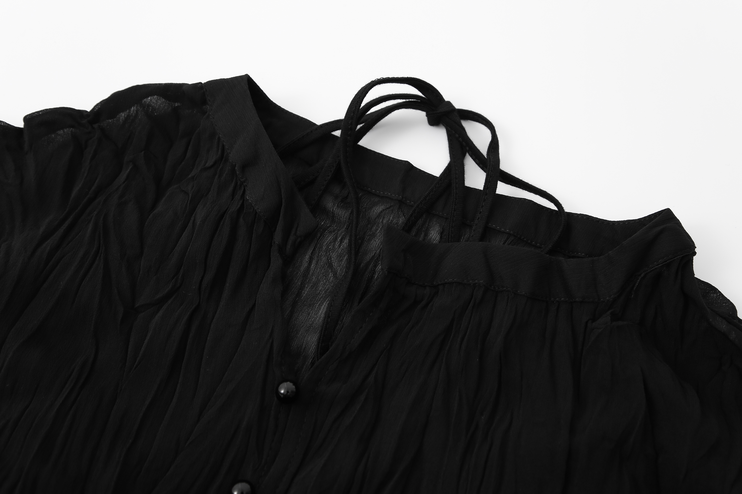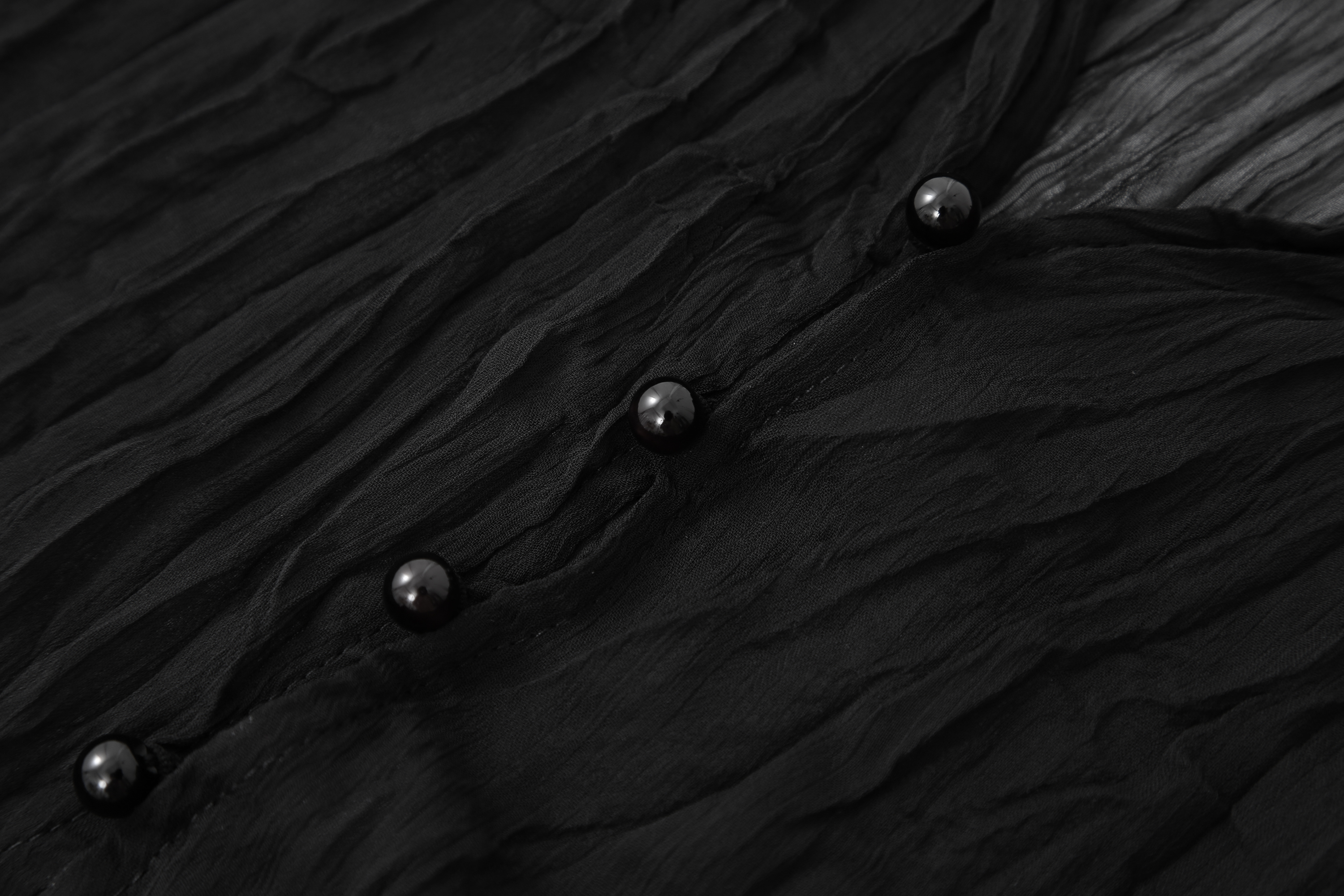 【99元福利款】ICELOLLY黑色雪紡襯衫女夏款2023新款小衫法式上衣