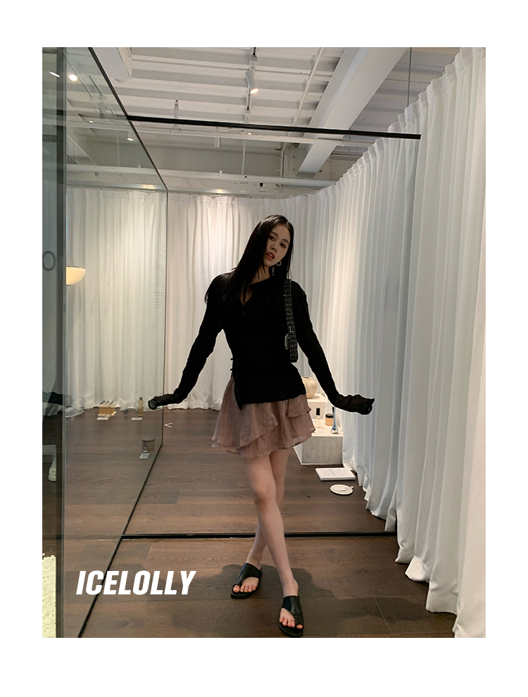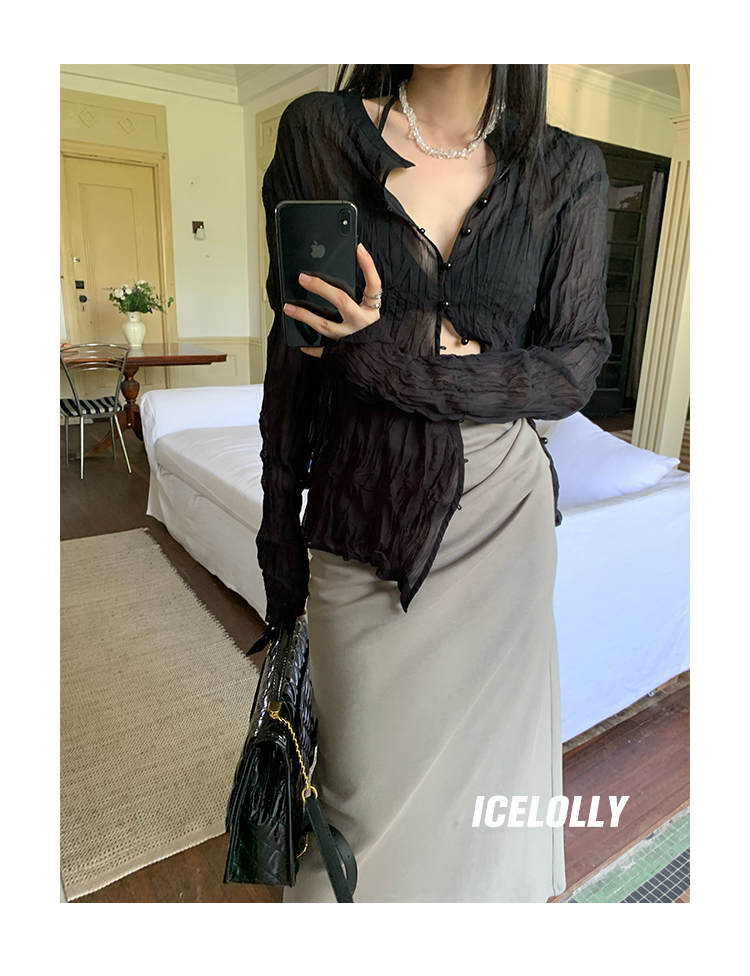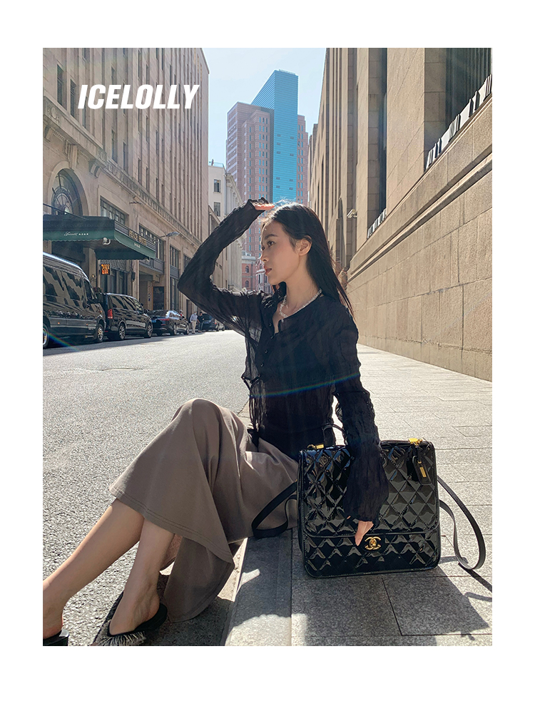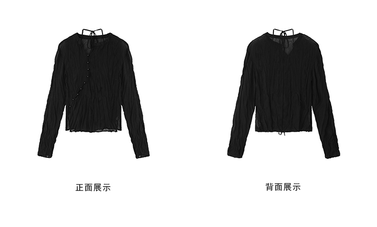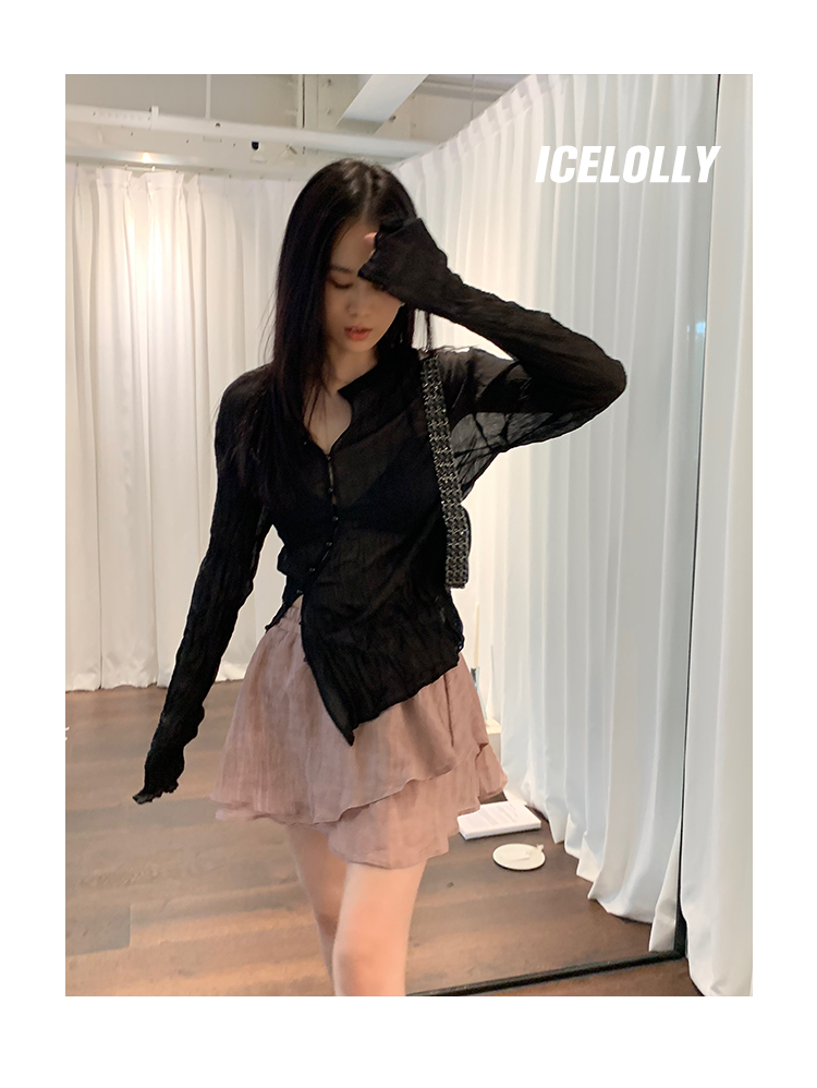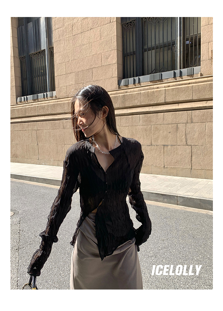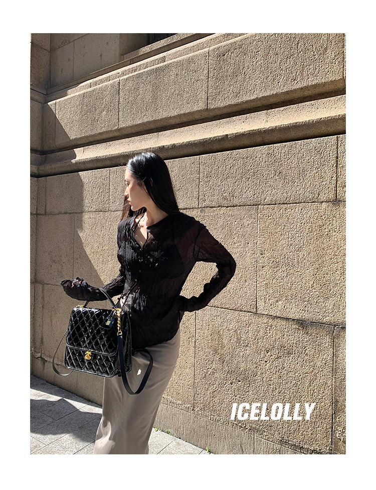 【99元福利款】ICELOLLY黑色雪紡襯衫女夏款2023新款小衫法式上衣