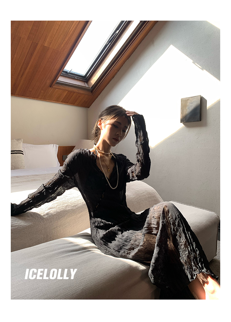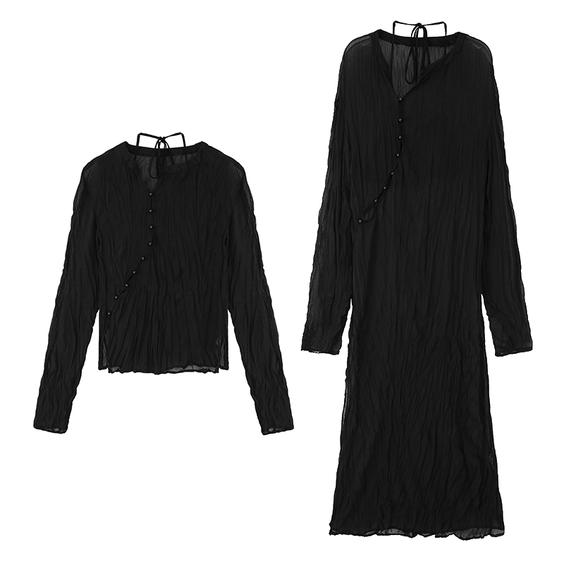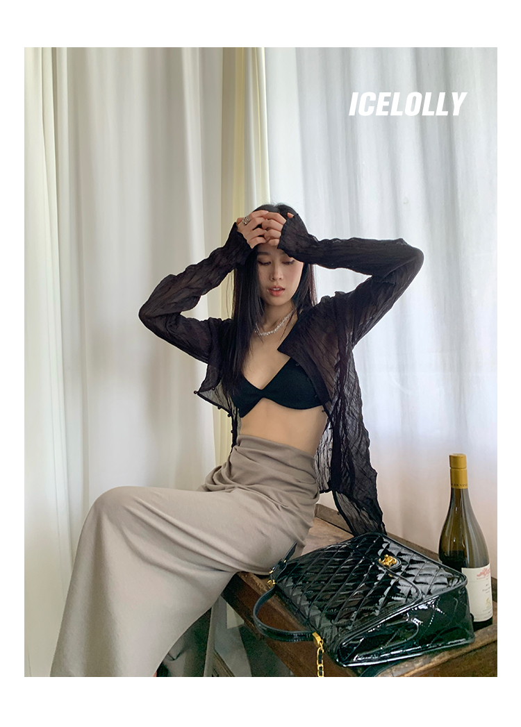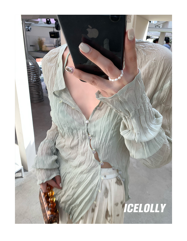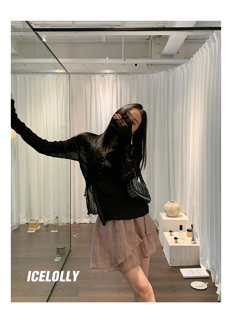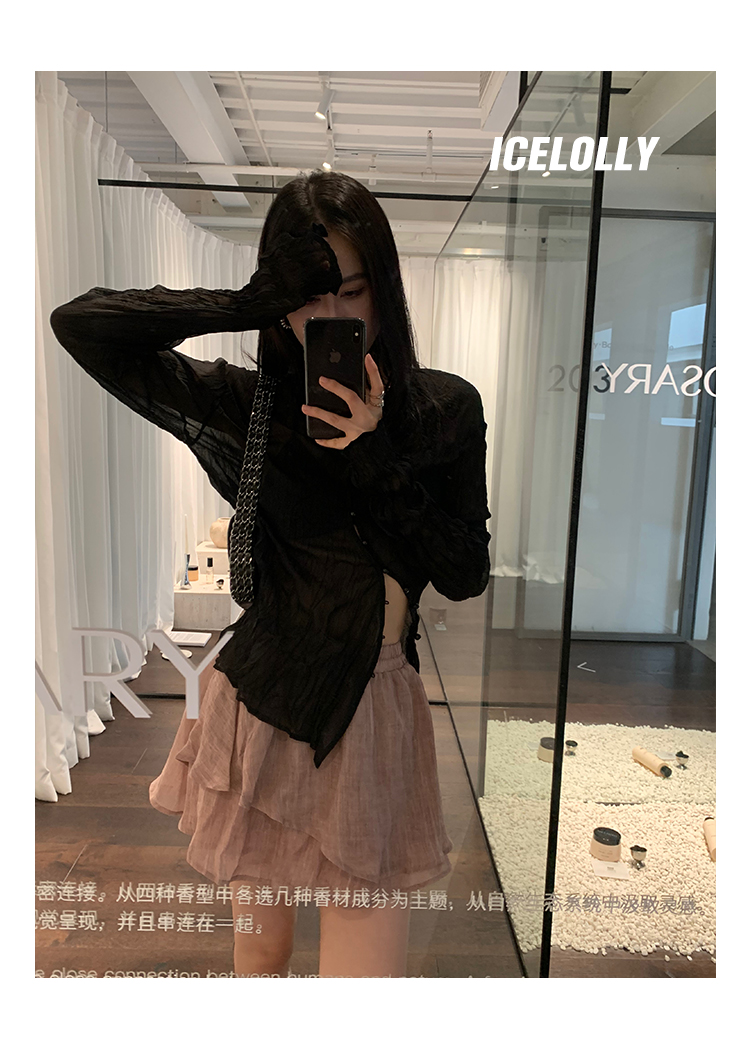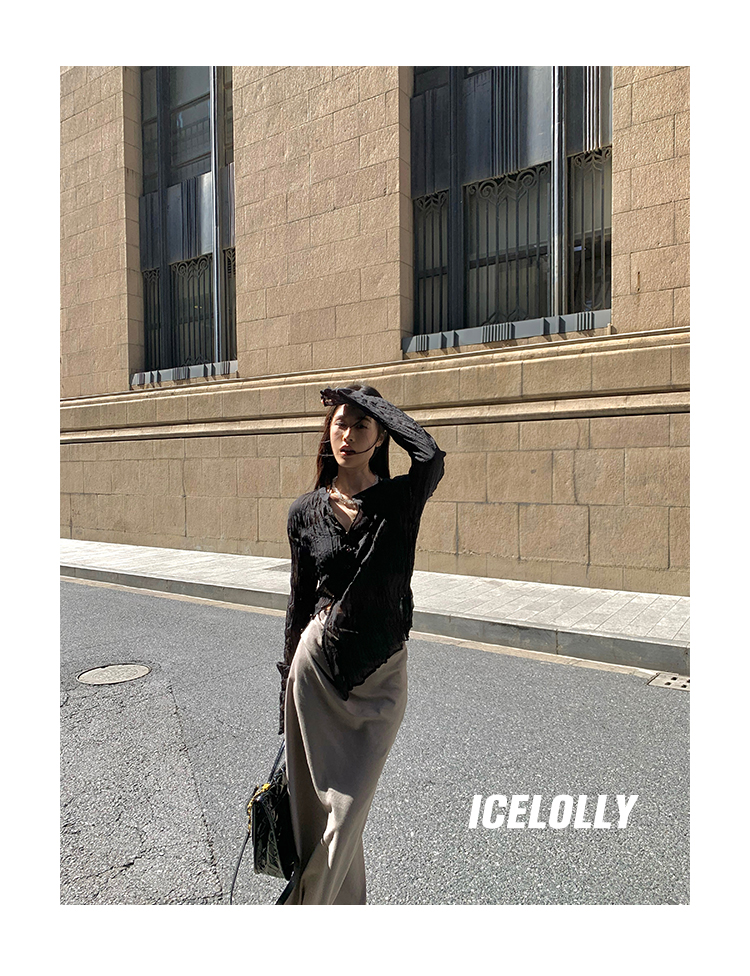 【99元福利款】ICELOLLY黑色雪紡襯衫女夏款2023新款小衫法式上衣