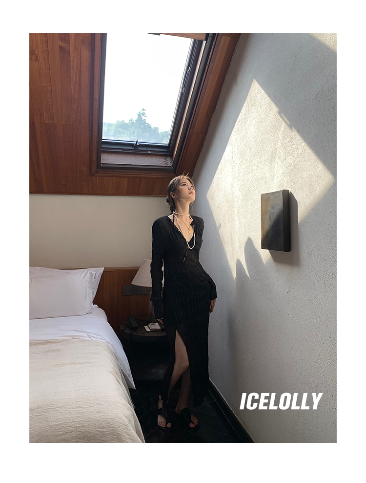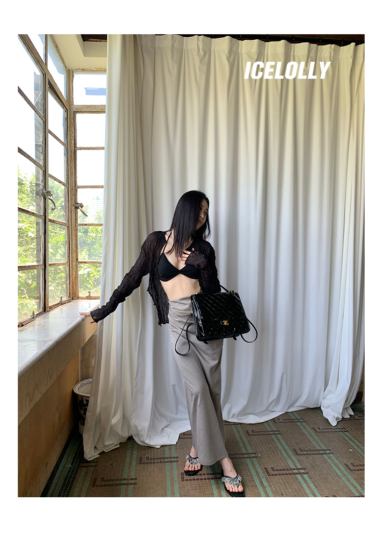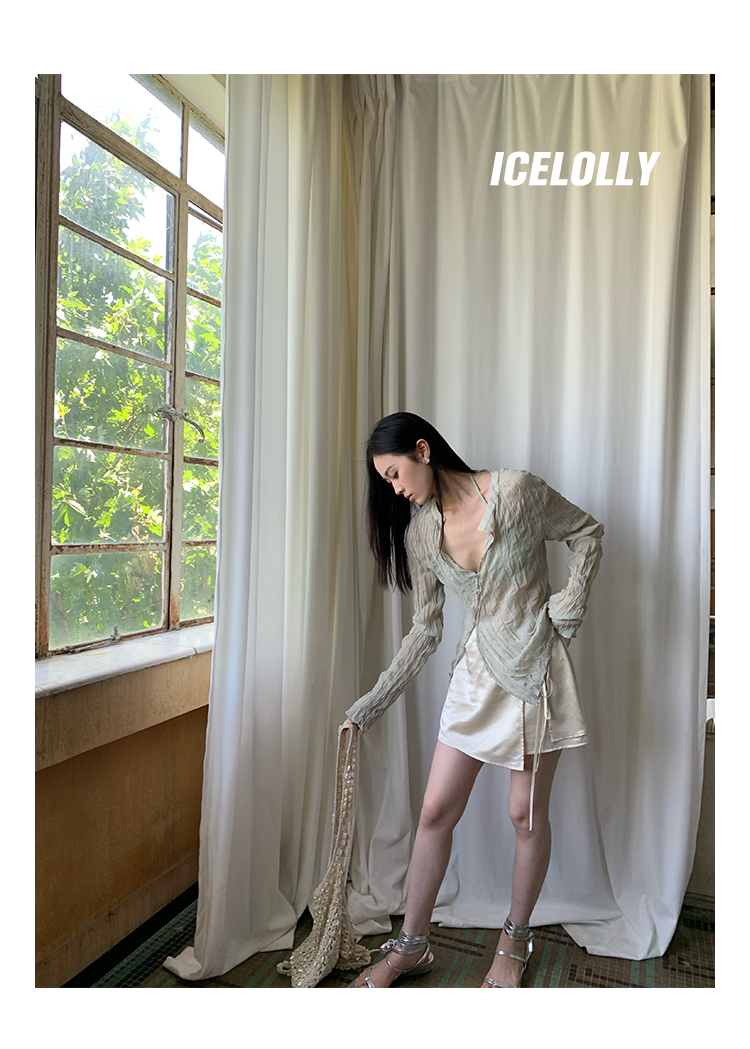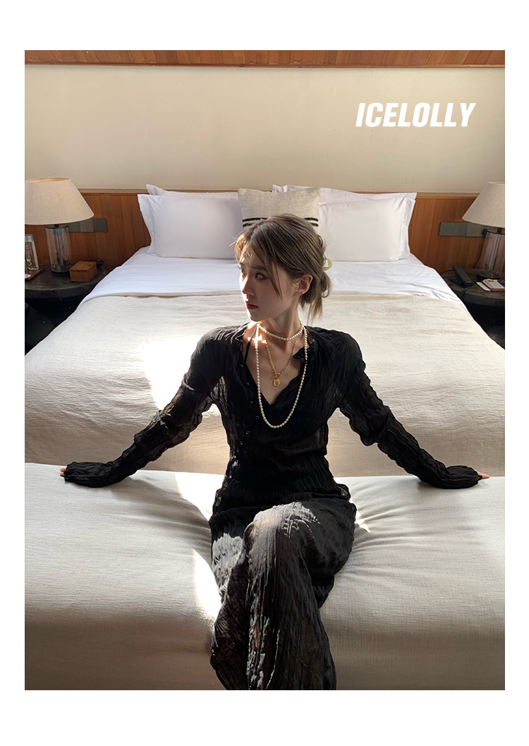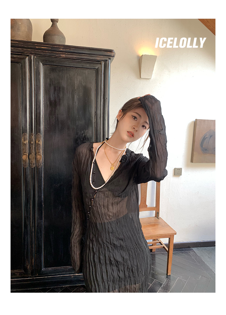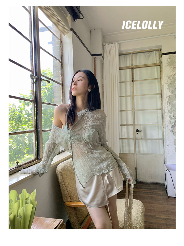 【99元福利款】ICELOLLY黑色雪紡襯衫女夏款2023新款小衫法式上衣